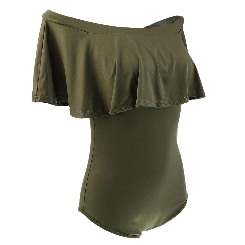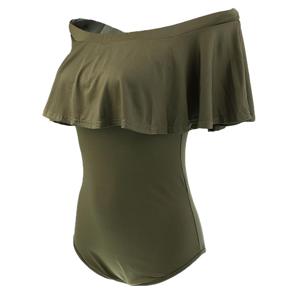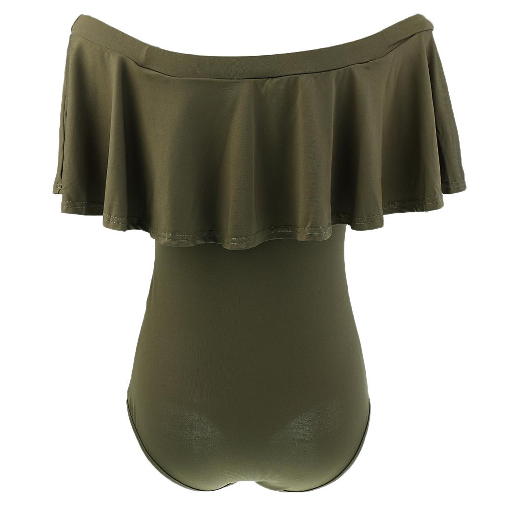 Women's Solid Ruffle Off-The-Shoulder One Piece Swimsuit.