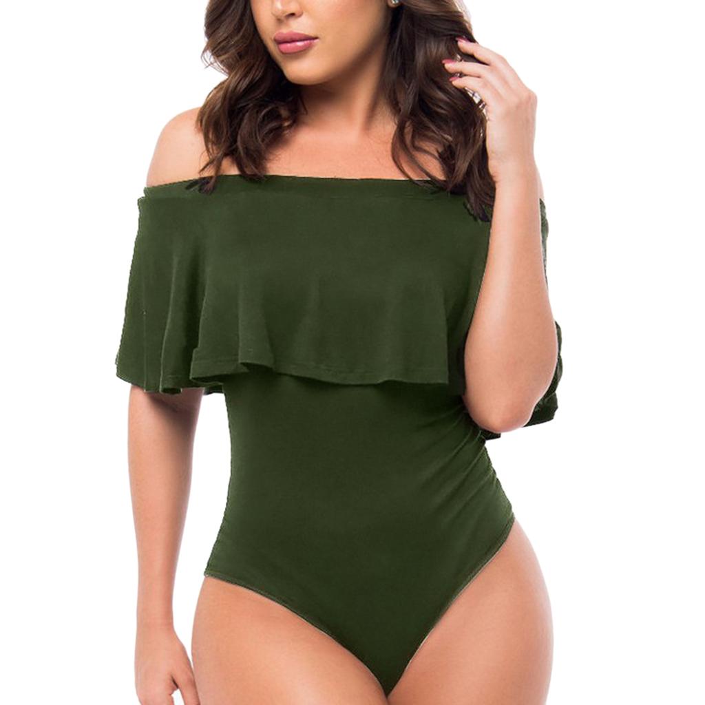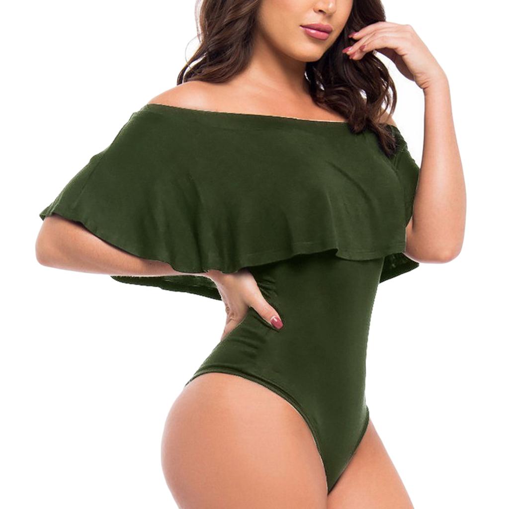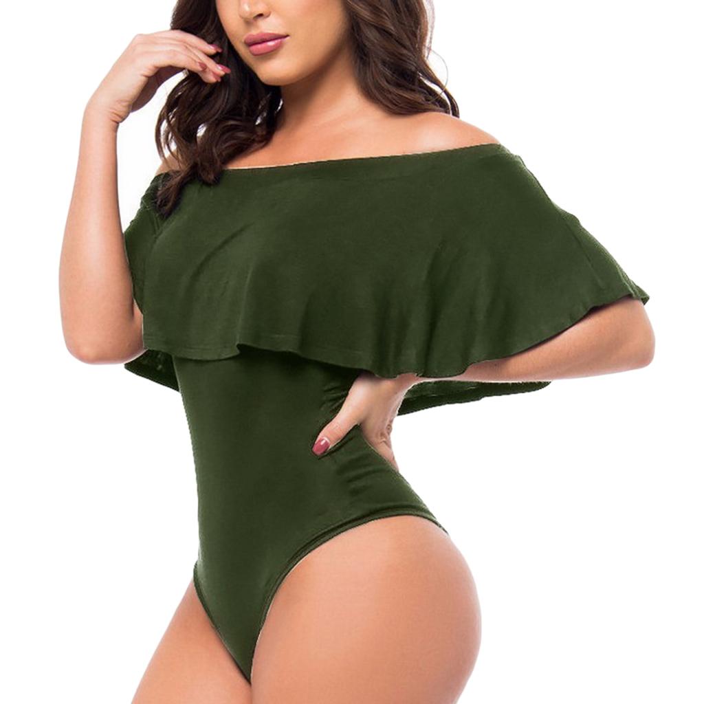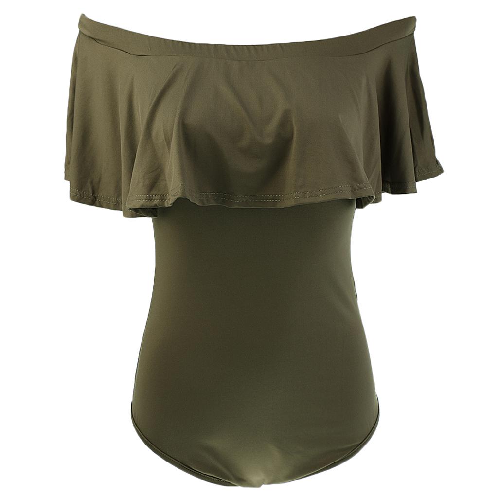 Women's Solid Ruffle Off-The-Shoulder One Piece Swimsuit.