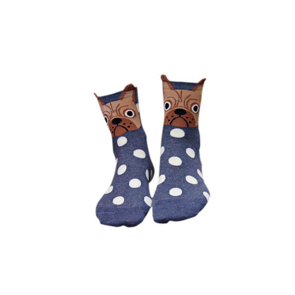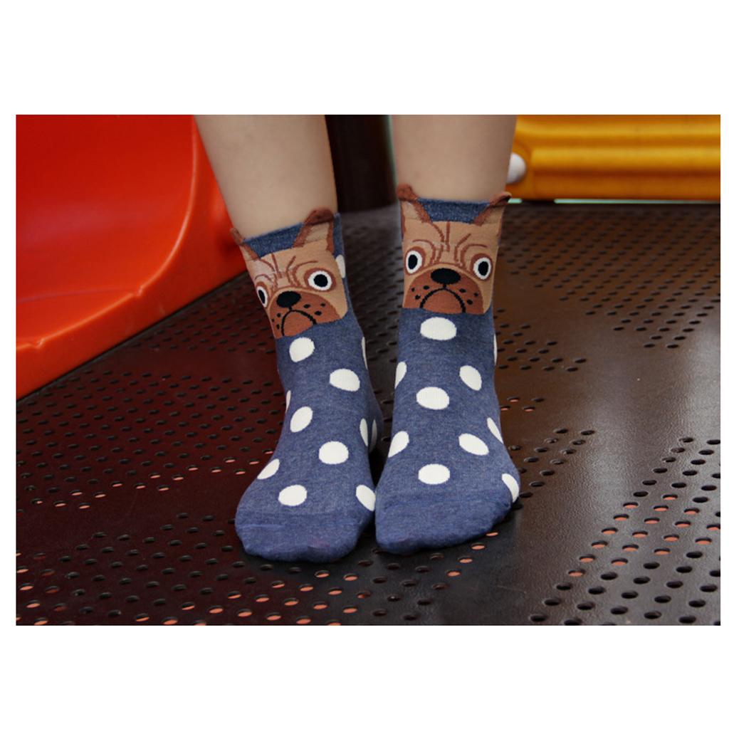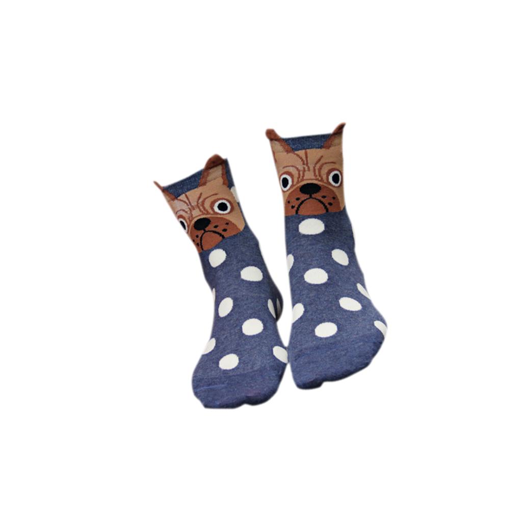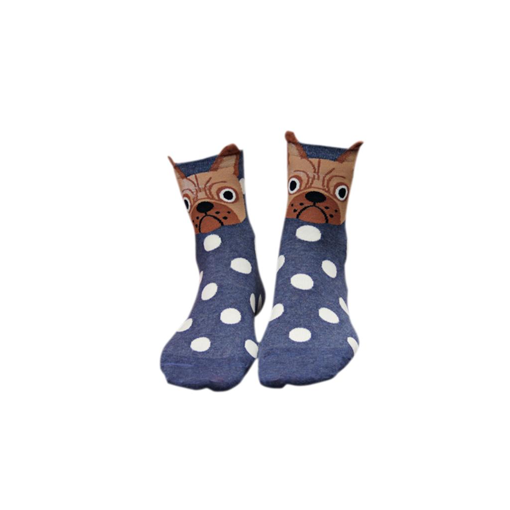 Women Girls Mid-Calf Socks Cartoon Soft 3D Dots Dog Print Cotton Socks Blue