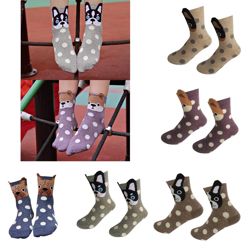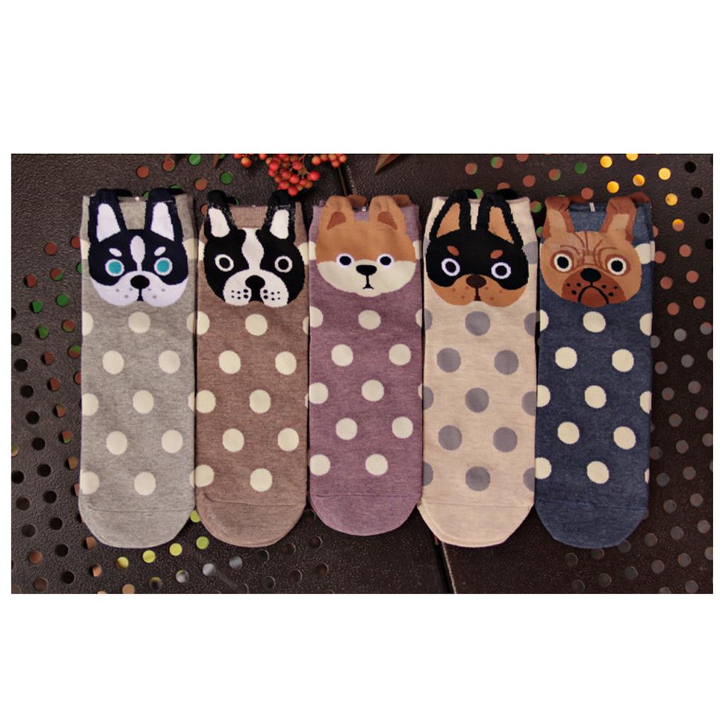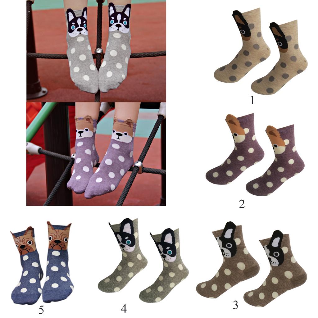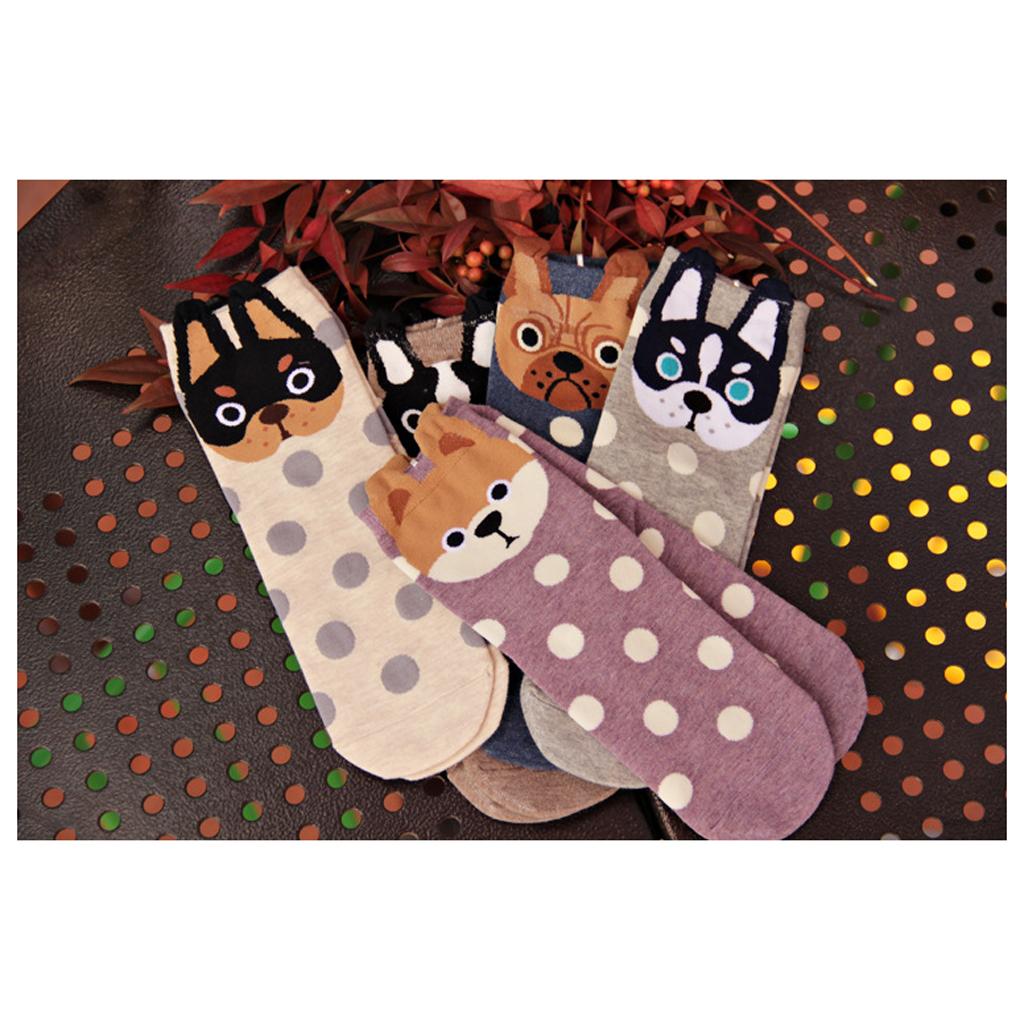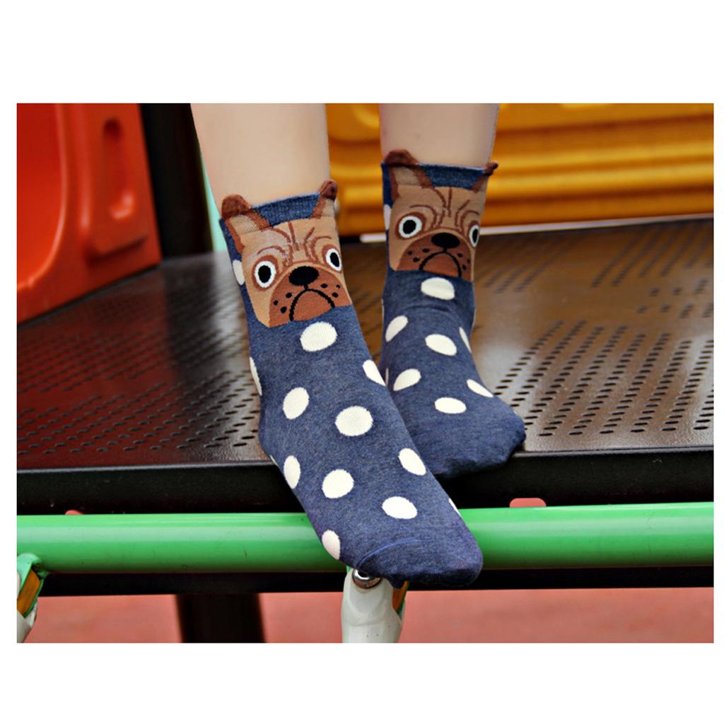Women Girls Mid-Calf Socks Cartoon Soft 3D Dots Dog Print Cotton Socks Blue