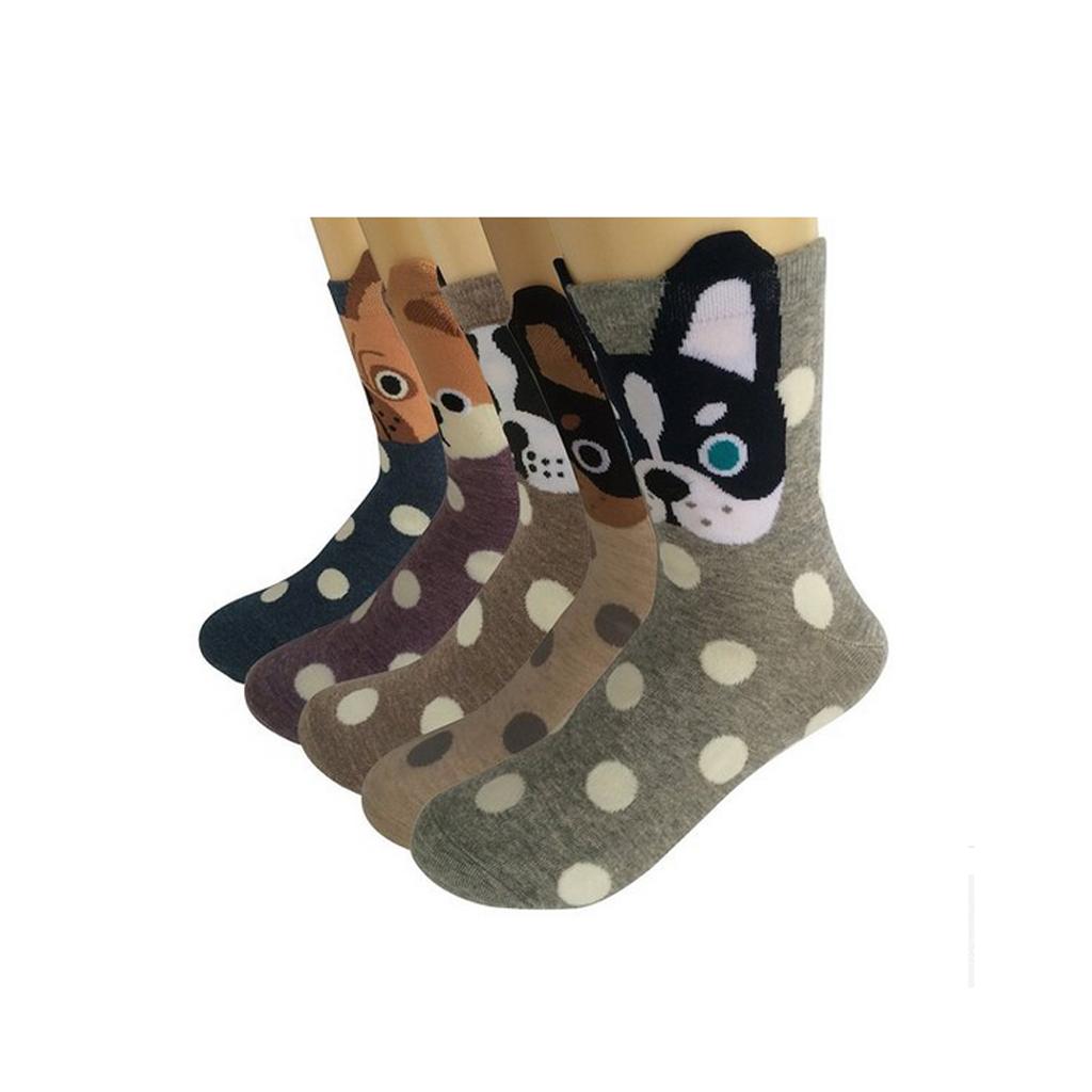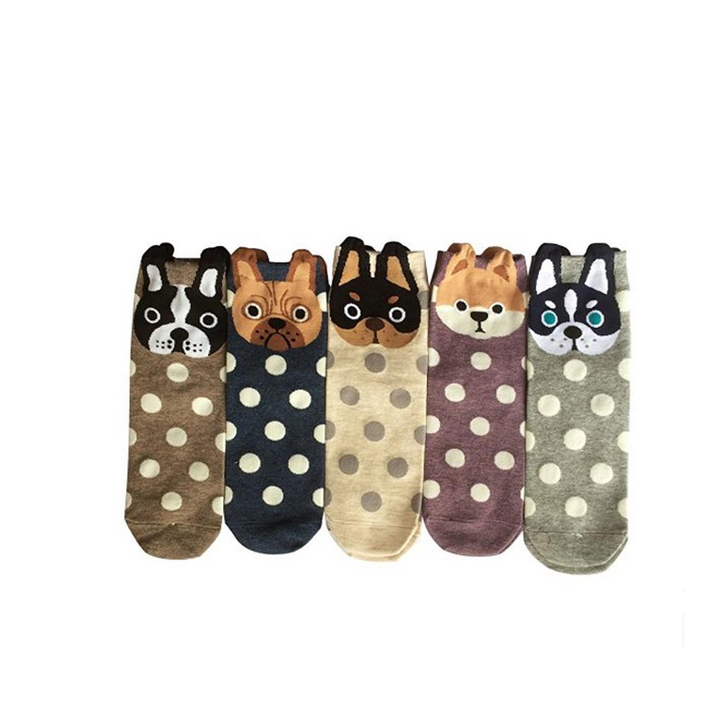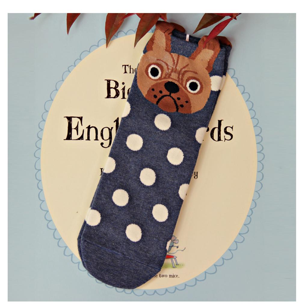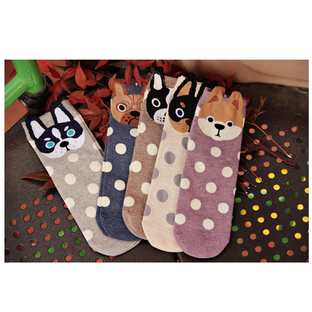 Women Girls Mid-Calf Socks Cartoon Soft 3D Dots Dog Print Cotton Socks Blue