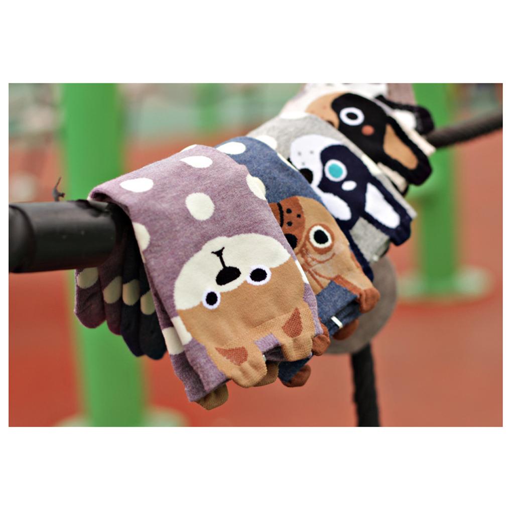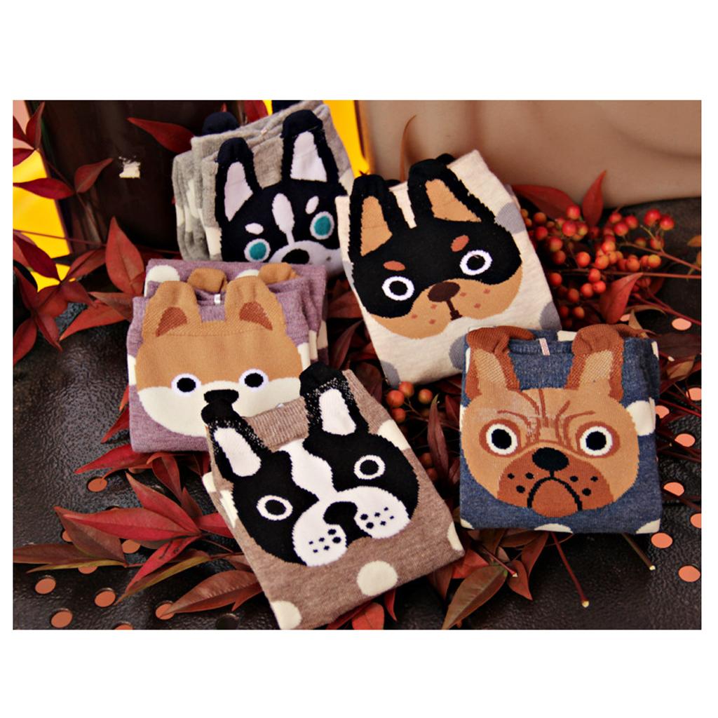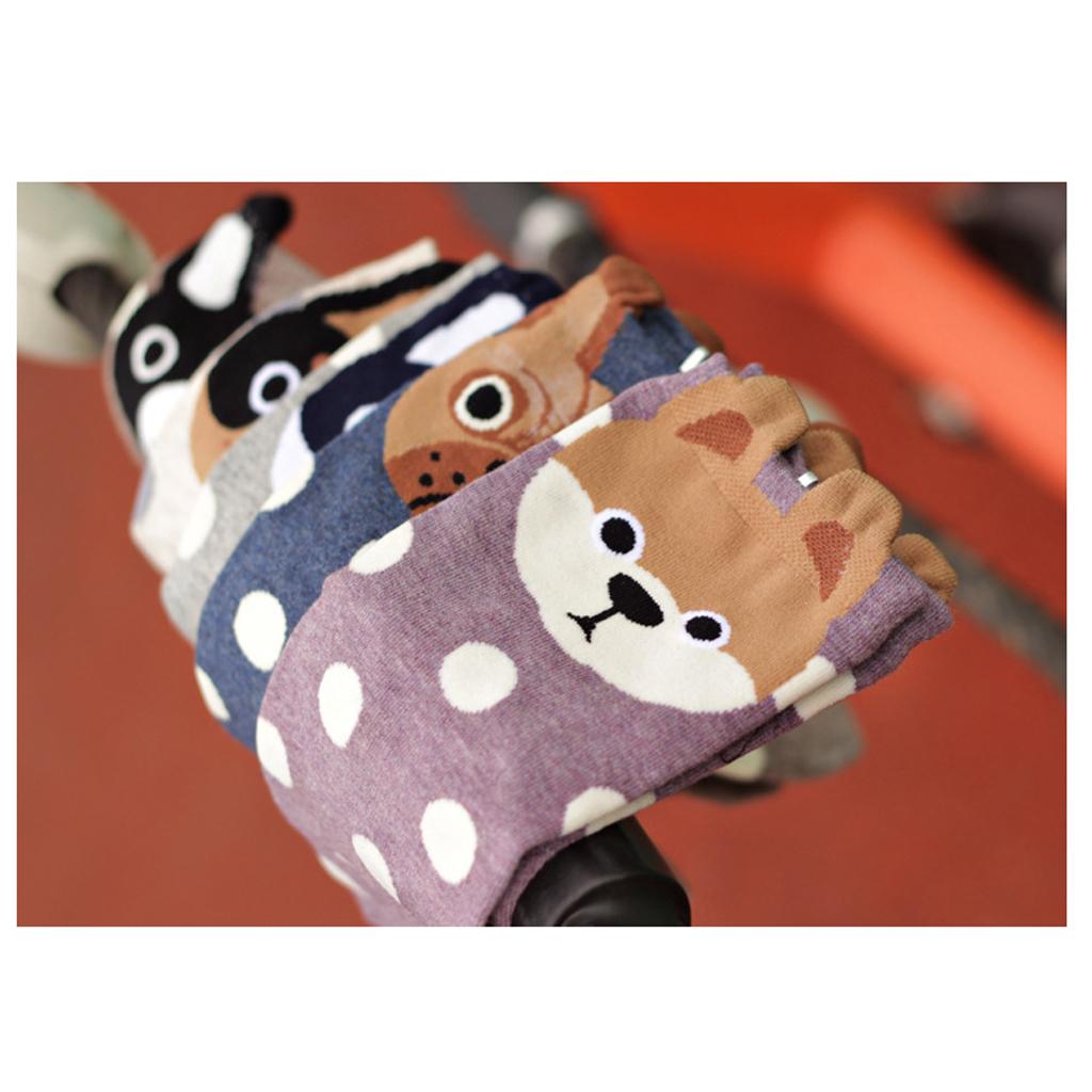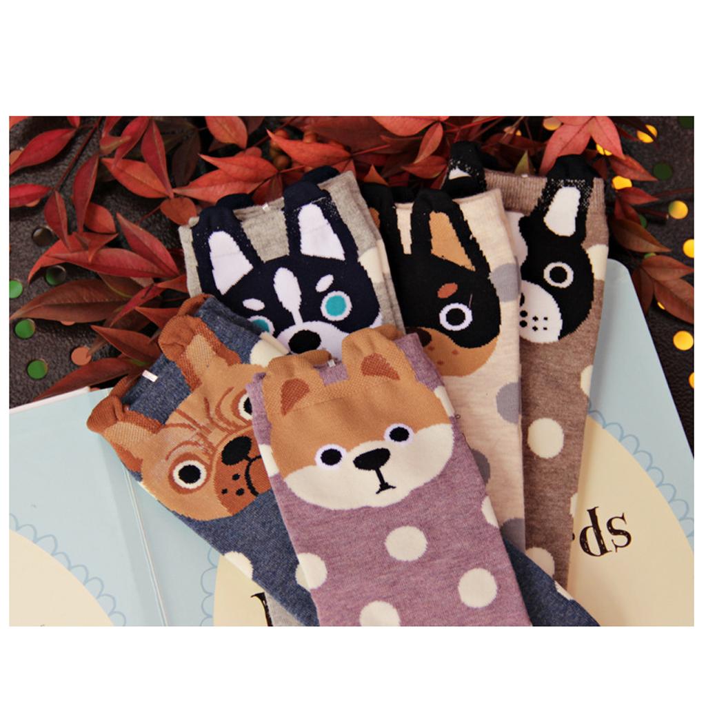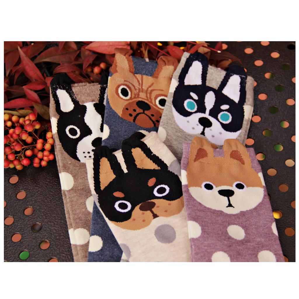 Women Girls Mid-Calf Socks Cartoon Soft 3D Dots Dog Print Cotton Socks Blue