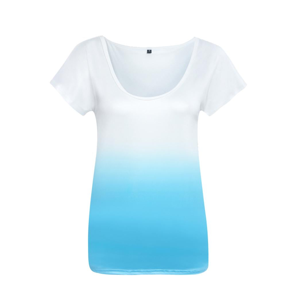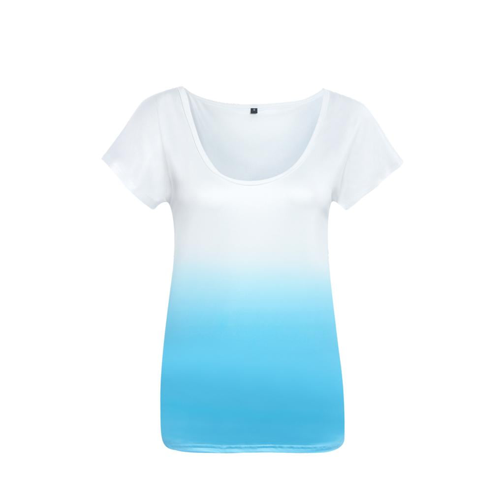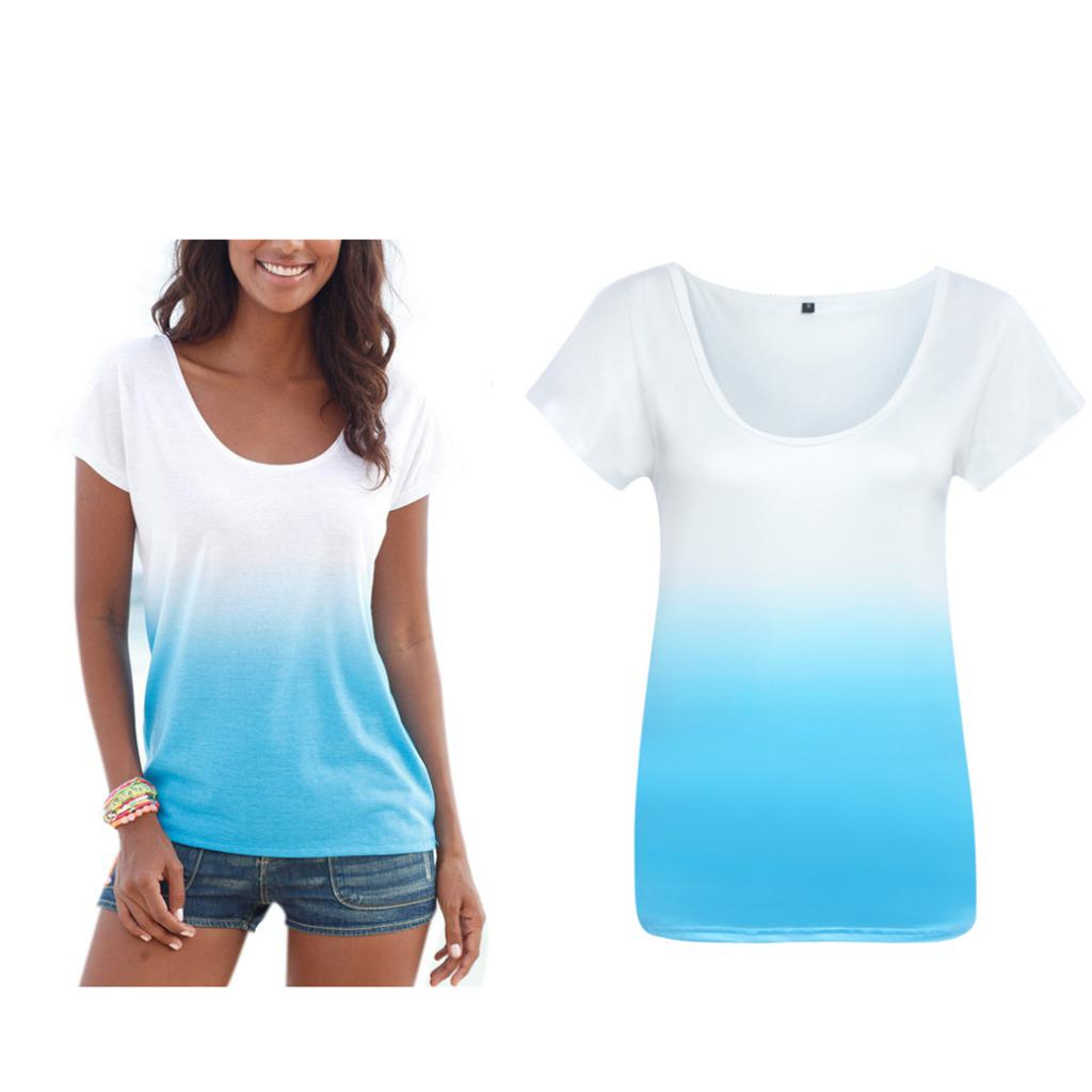 Women Ladies Round Neck Short Sleeve Simple Summer Casual Dye T-shirt Tee S