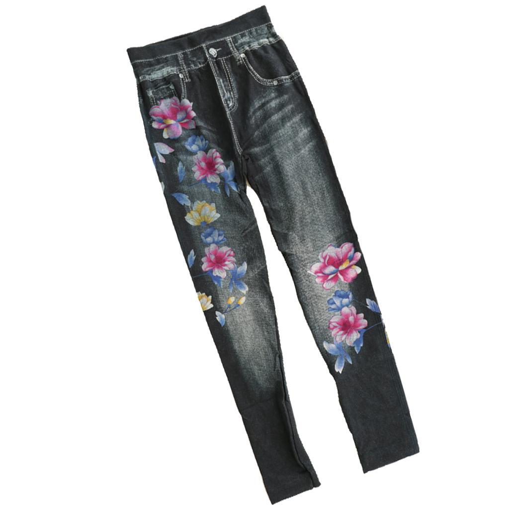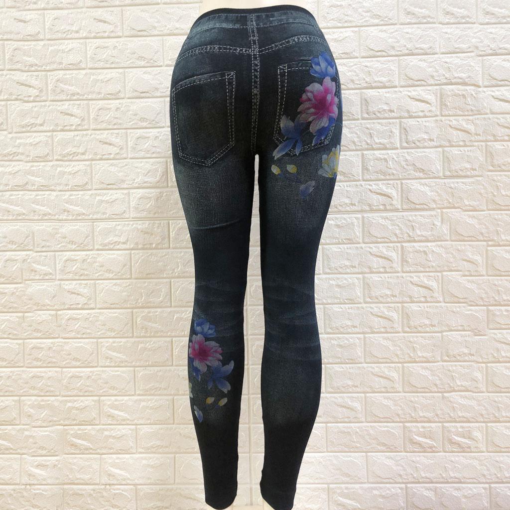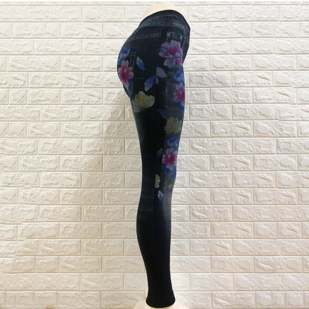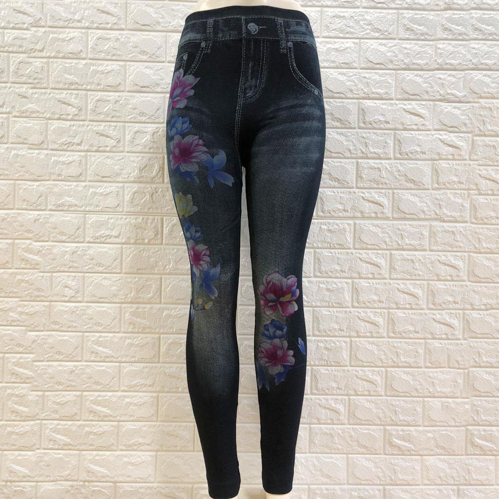 Fashion imitation denim sports workout skinny pants, pretty embroidery design