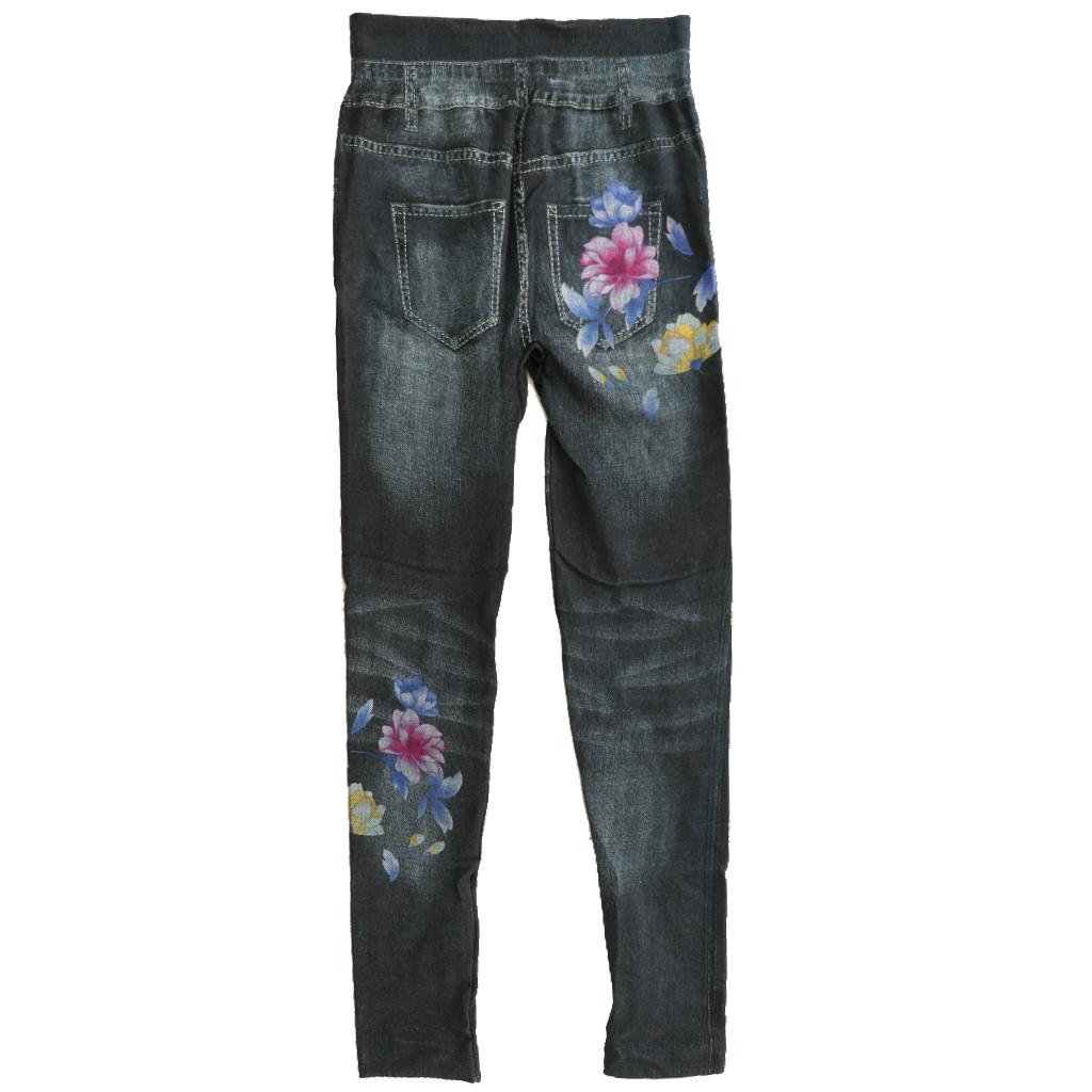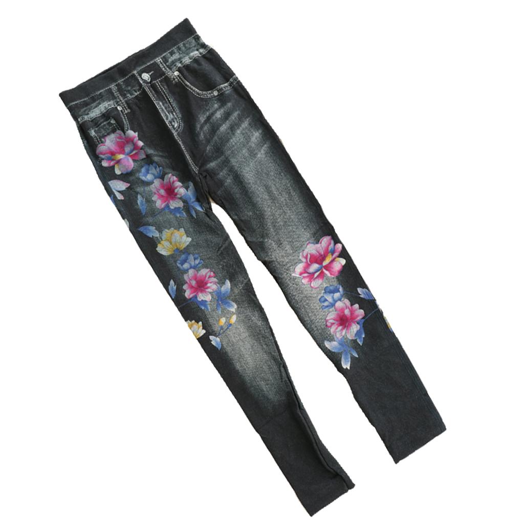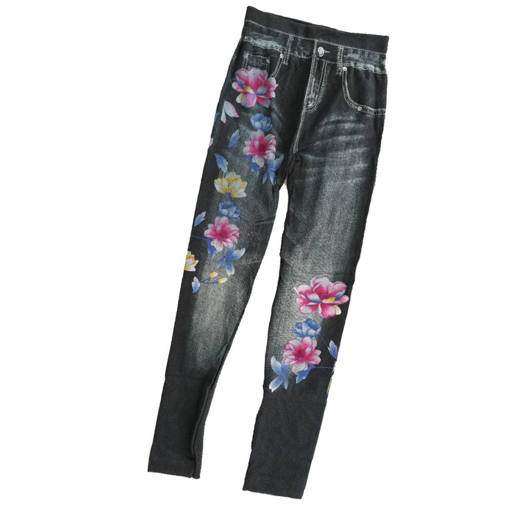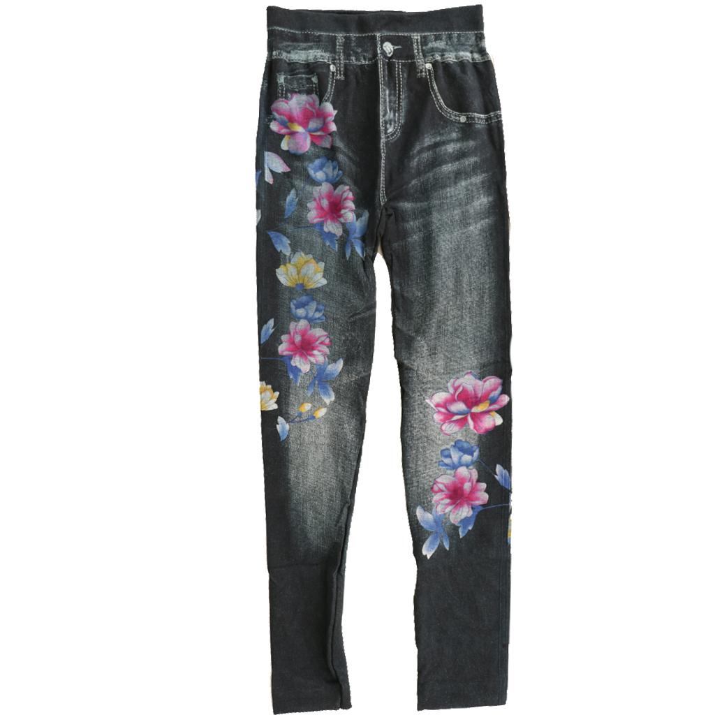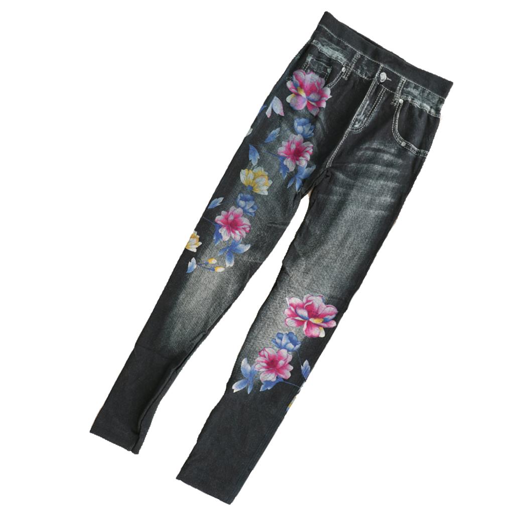 Fashion imitation denim sports workout skinny pants, pretty embroidery design