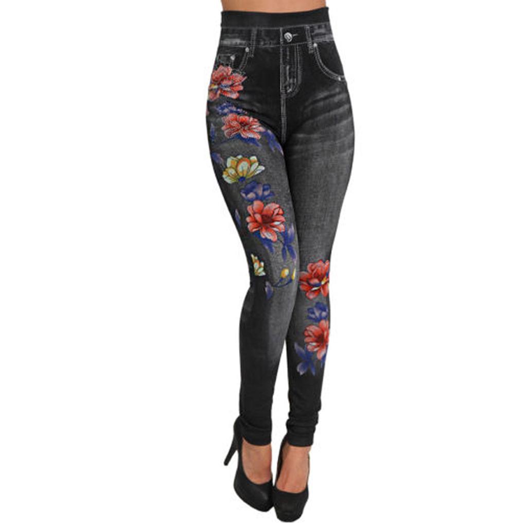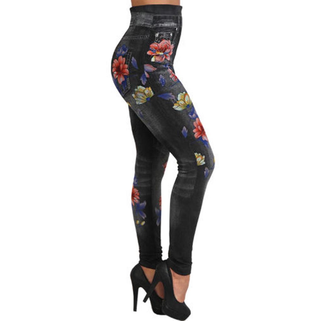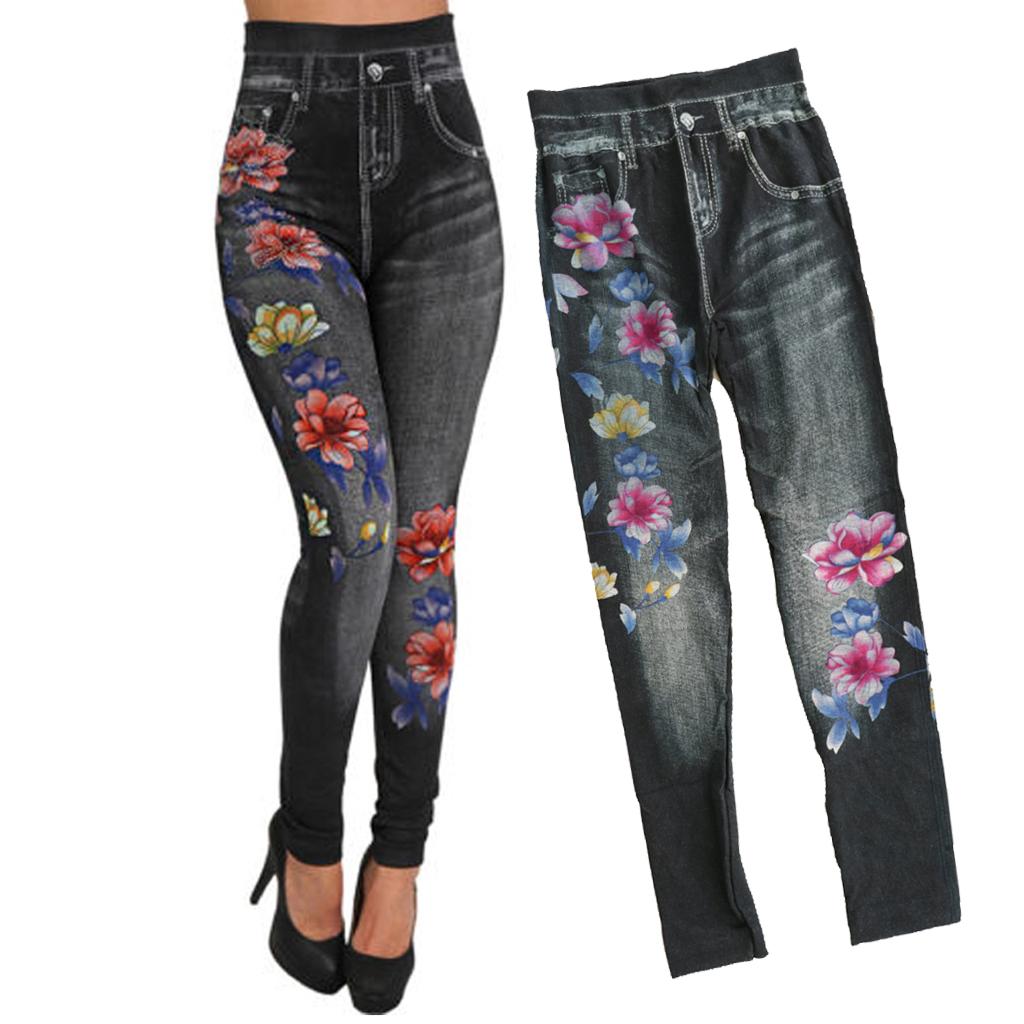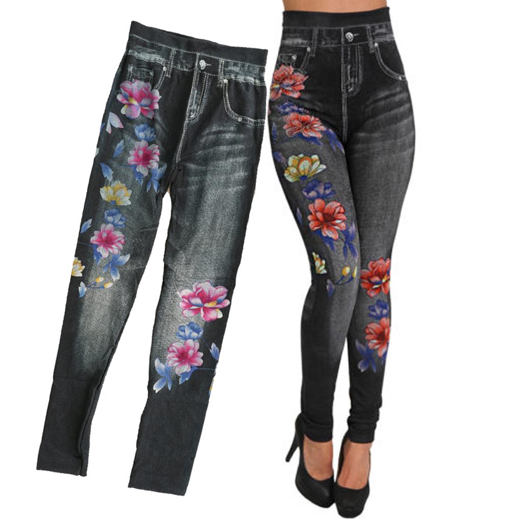Fashion imitation denim sports workout skinny pants, pretty embroidery design