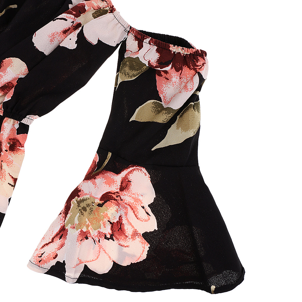 Printing,Backless Siamese Shorts,Trumpet Sleeves, all kinds of popular elements
