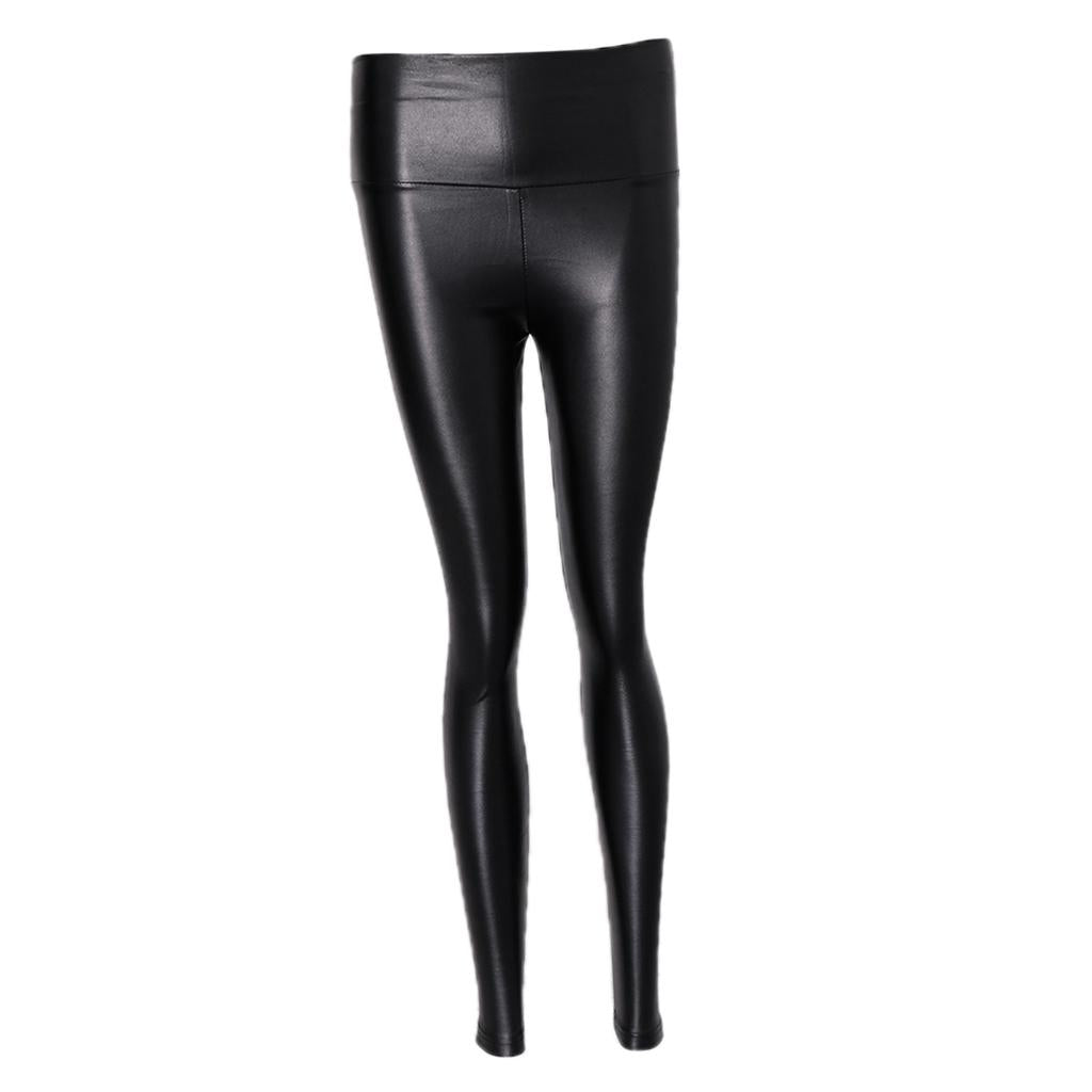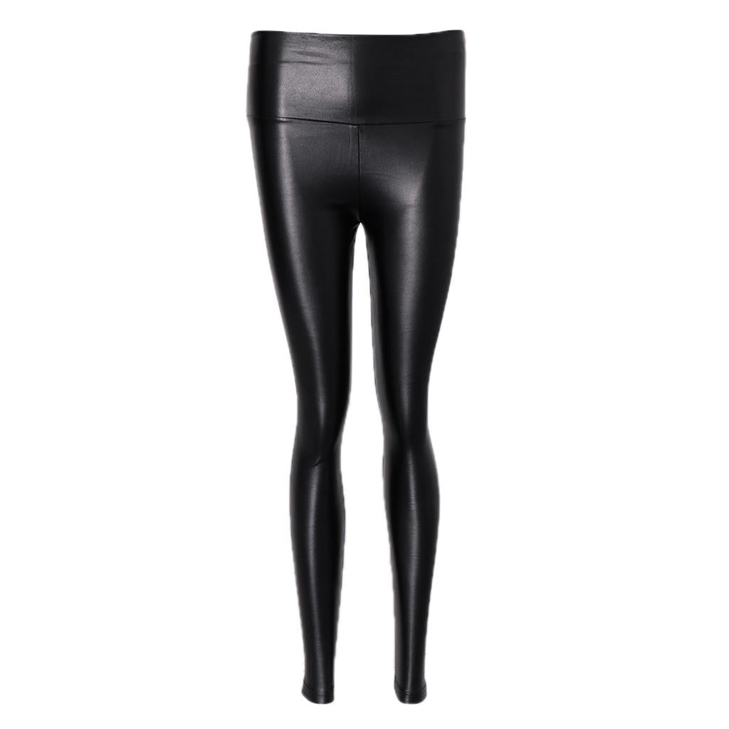 Women High Waist Leggings Stretchy PU Leather Trousers Slim Pencil Pants .