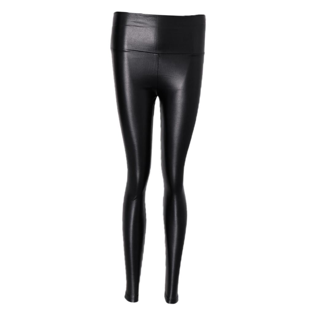 Women High Waist Leggings Stretchy PU Leather Trousers Slim Pencil Pants .