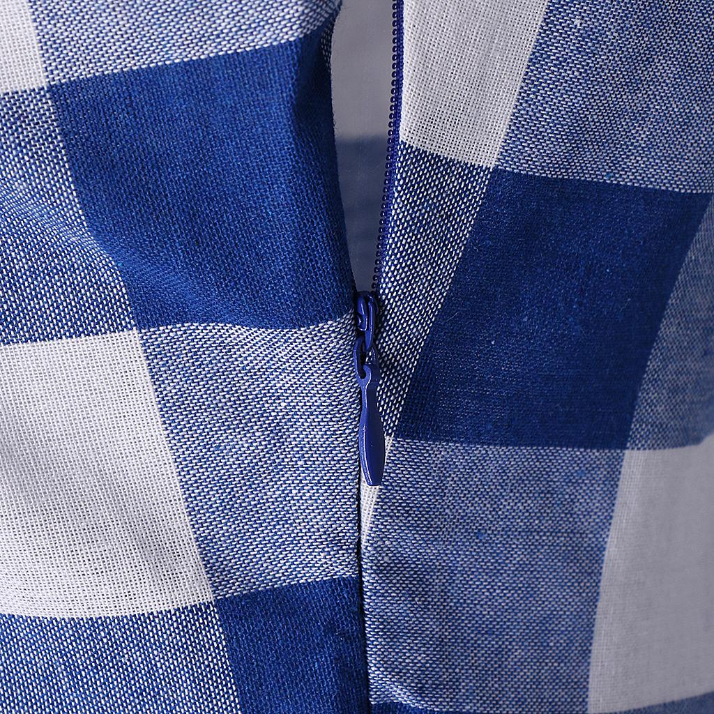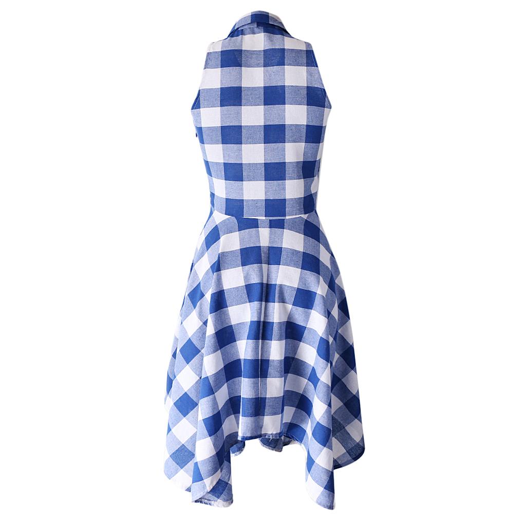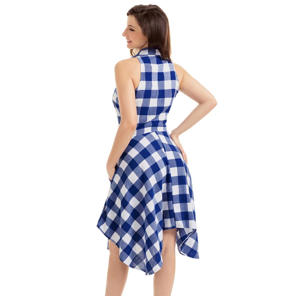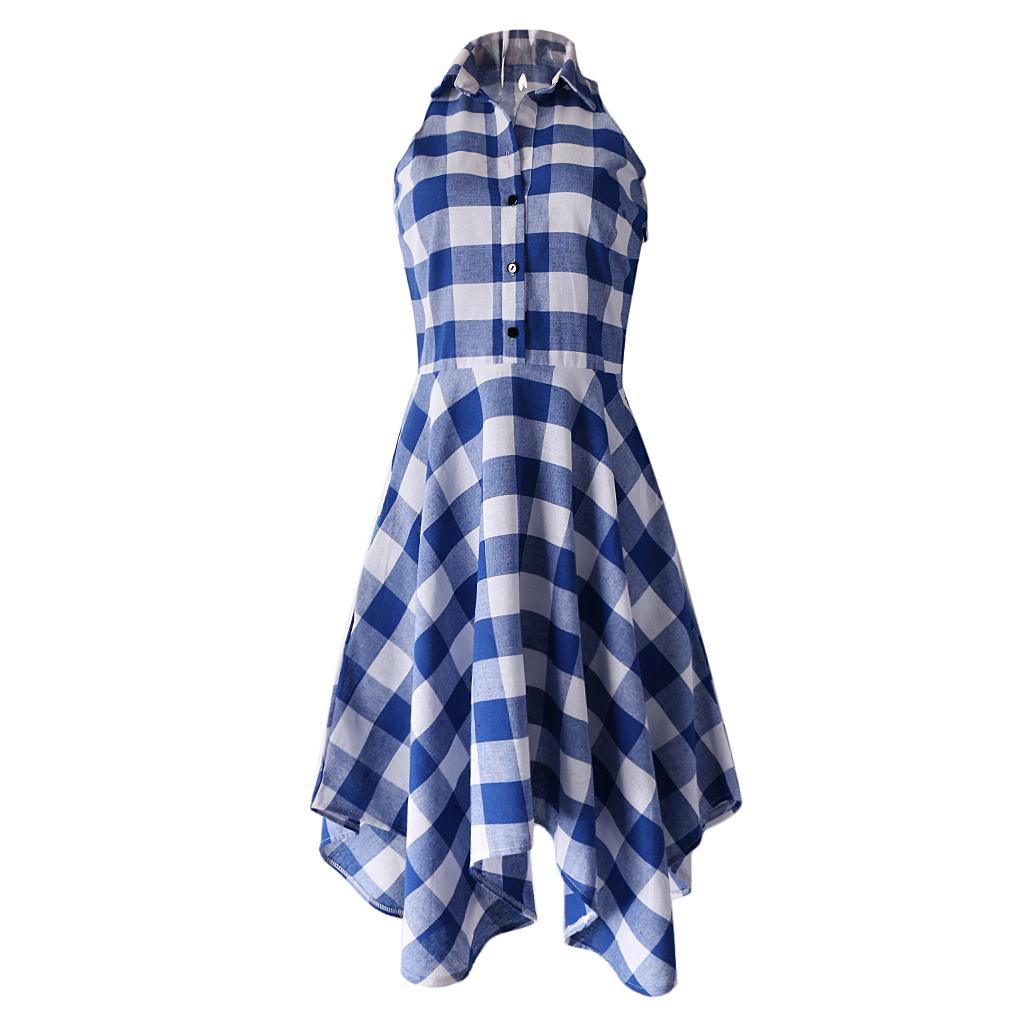 Women's Plaids Sleeveless Denim Checks Flared Casual Shirt Dress.
