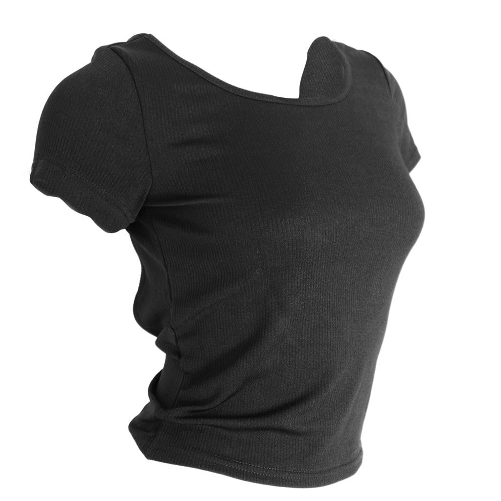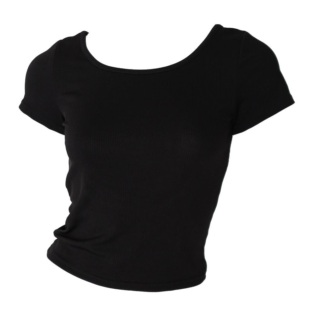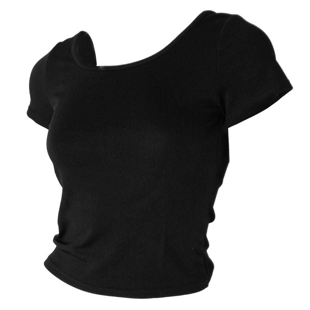 Women Summer Cotton Short Sleeves Tops Fitted Tops M Black
