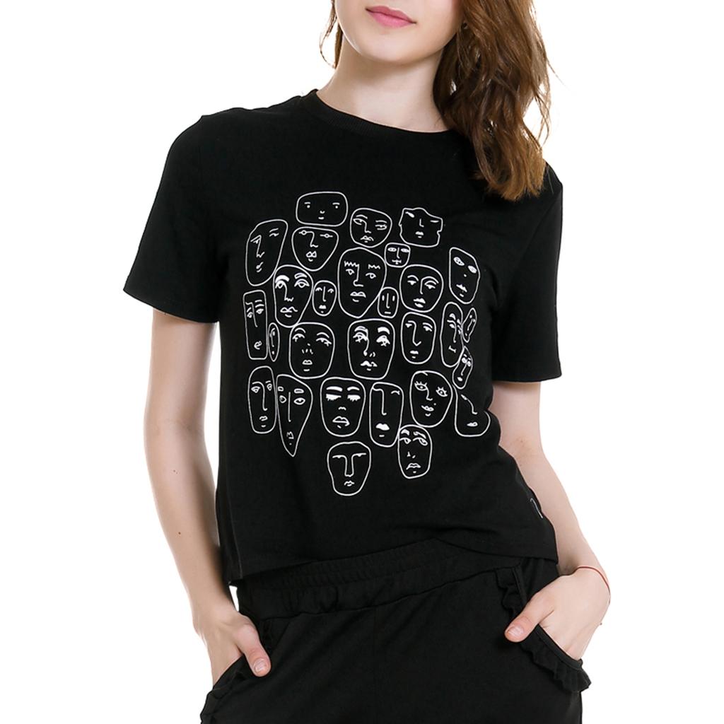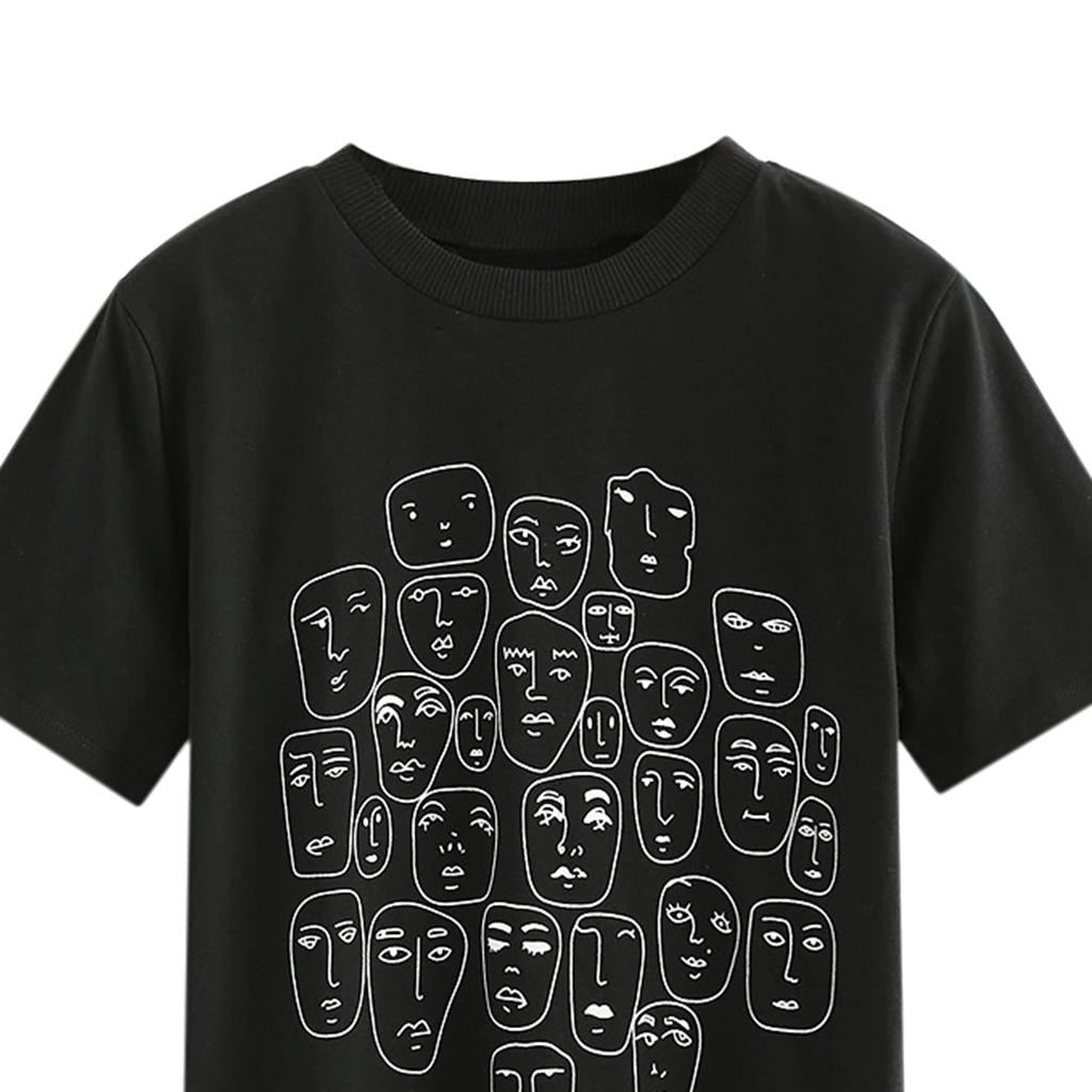Cute design print, round neck, short sleeve, and casual crop t-shirt tops
