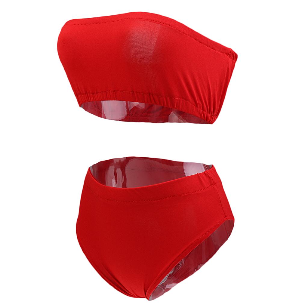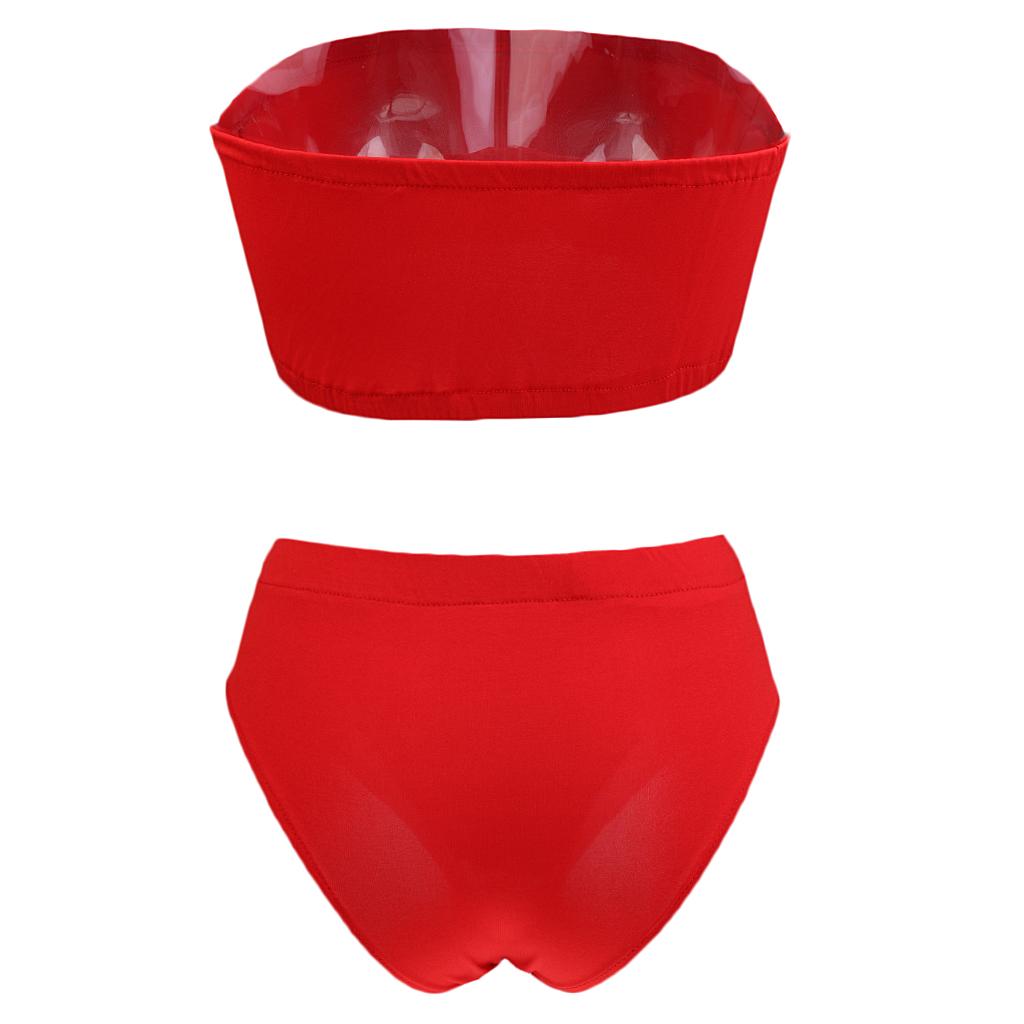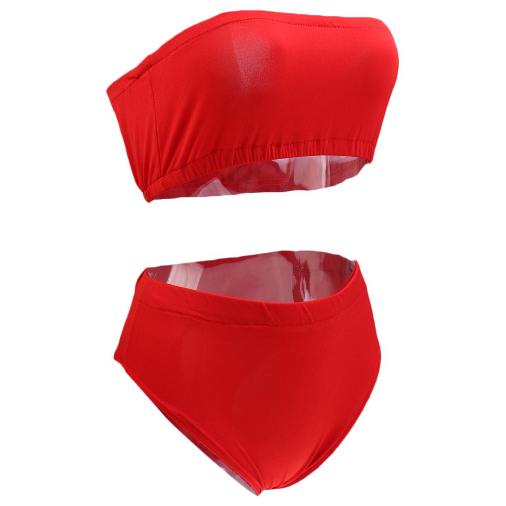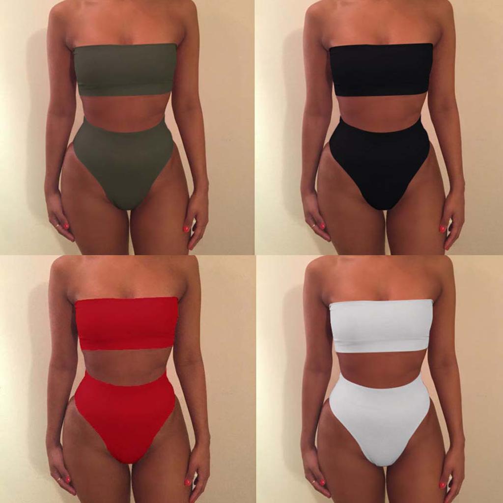 Women's 2 Piece Bikini Set Solid Bandeau Swimsuit.