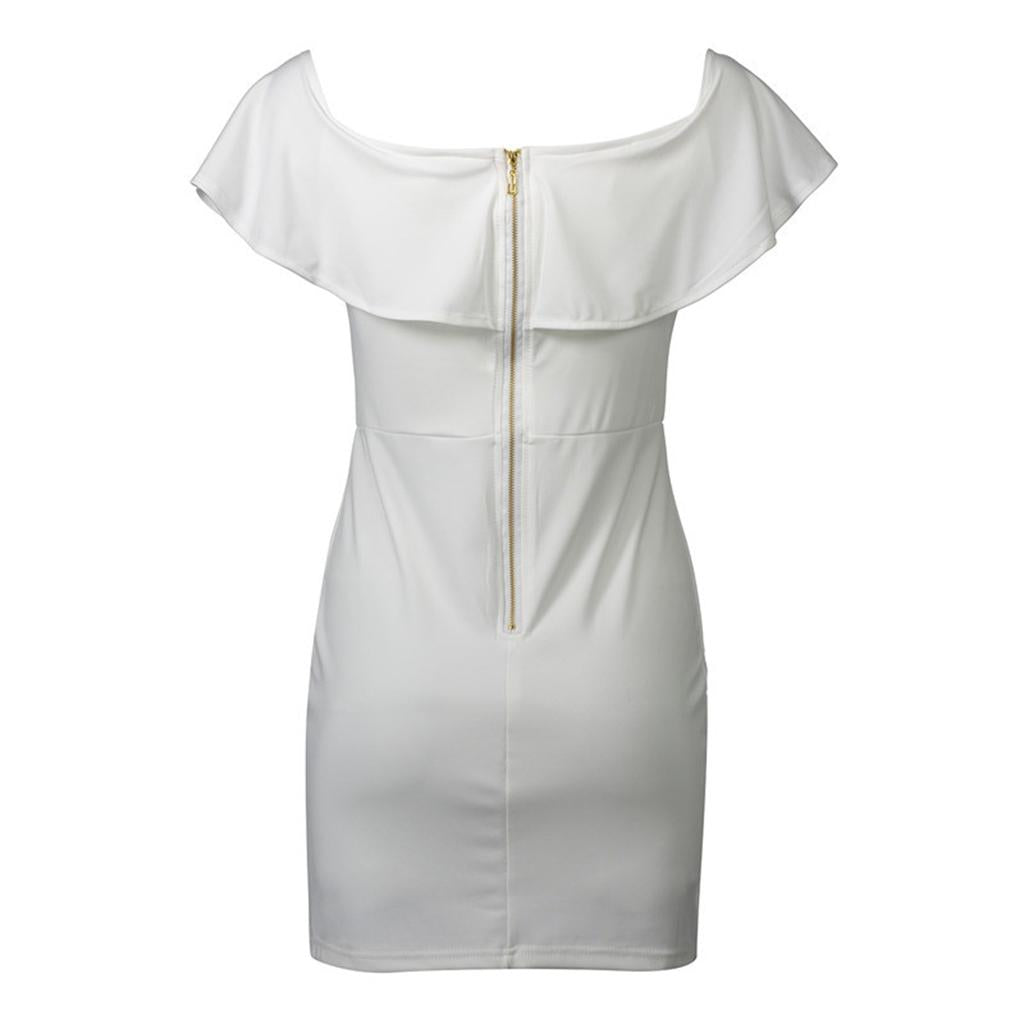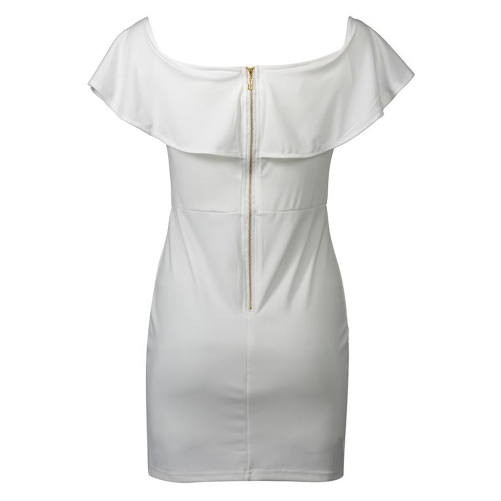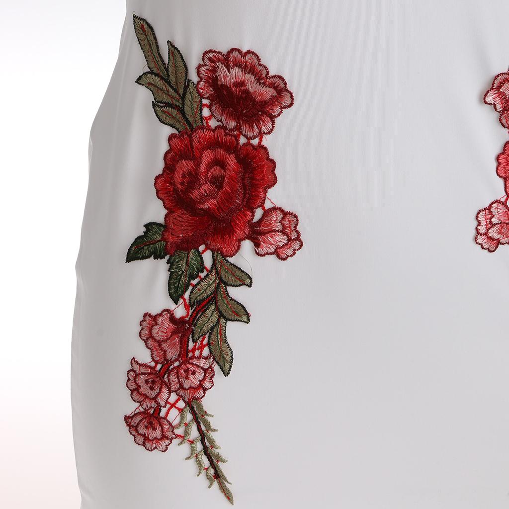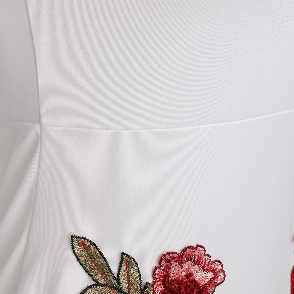 Women Sexy Ruffles Off the Shoulder Embroidered Floral Bodycon Party Dress.