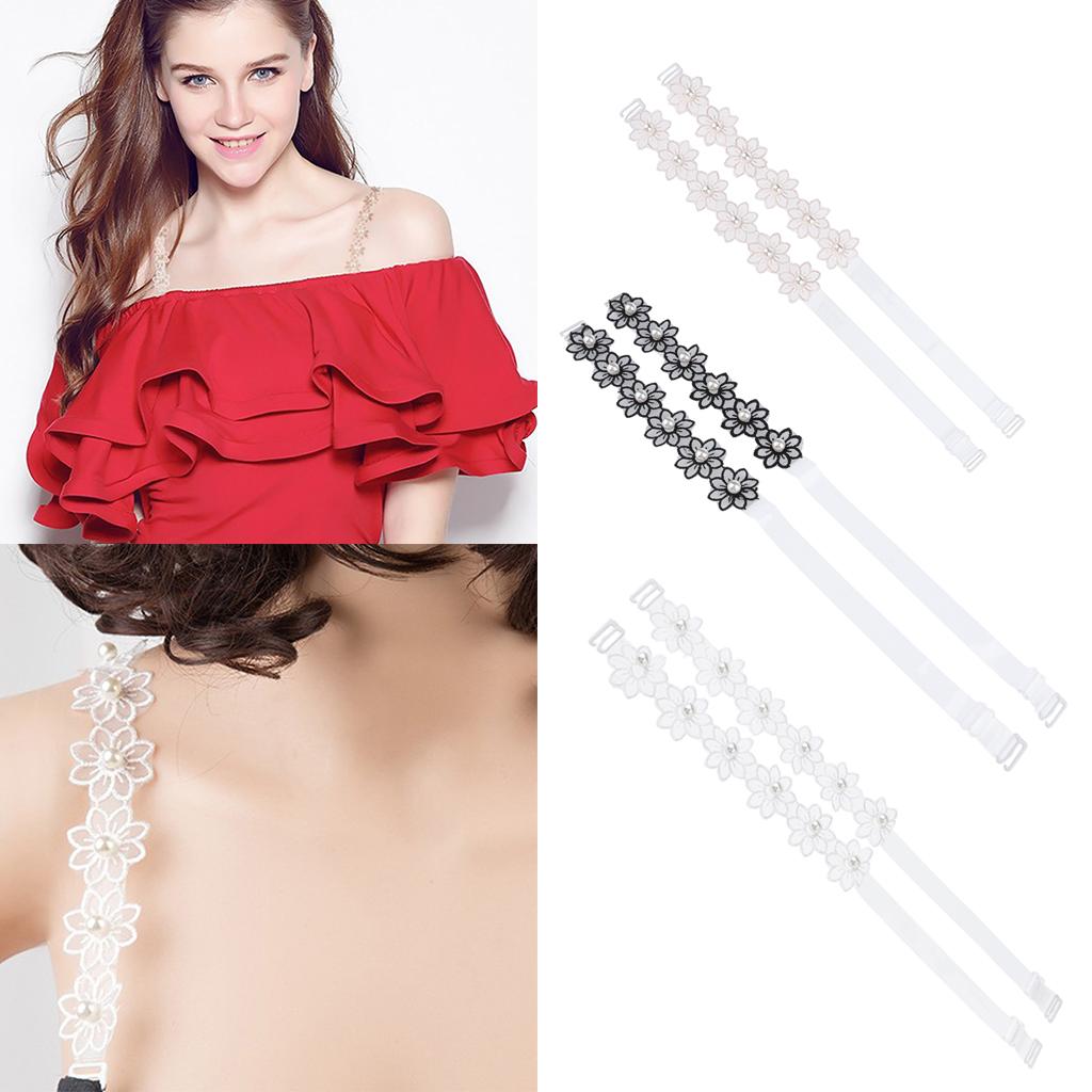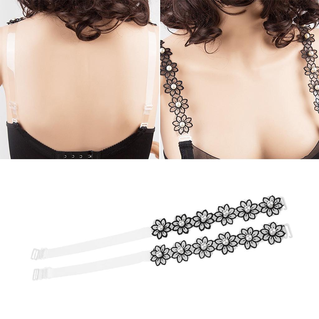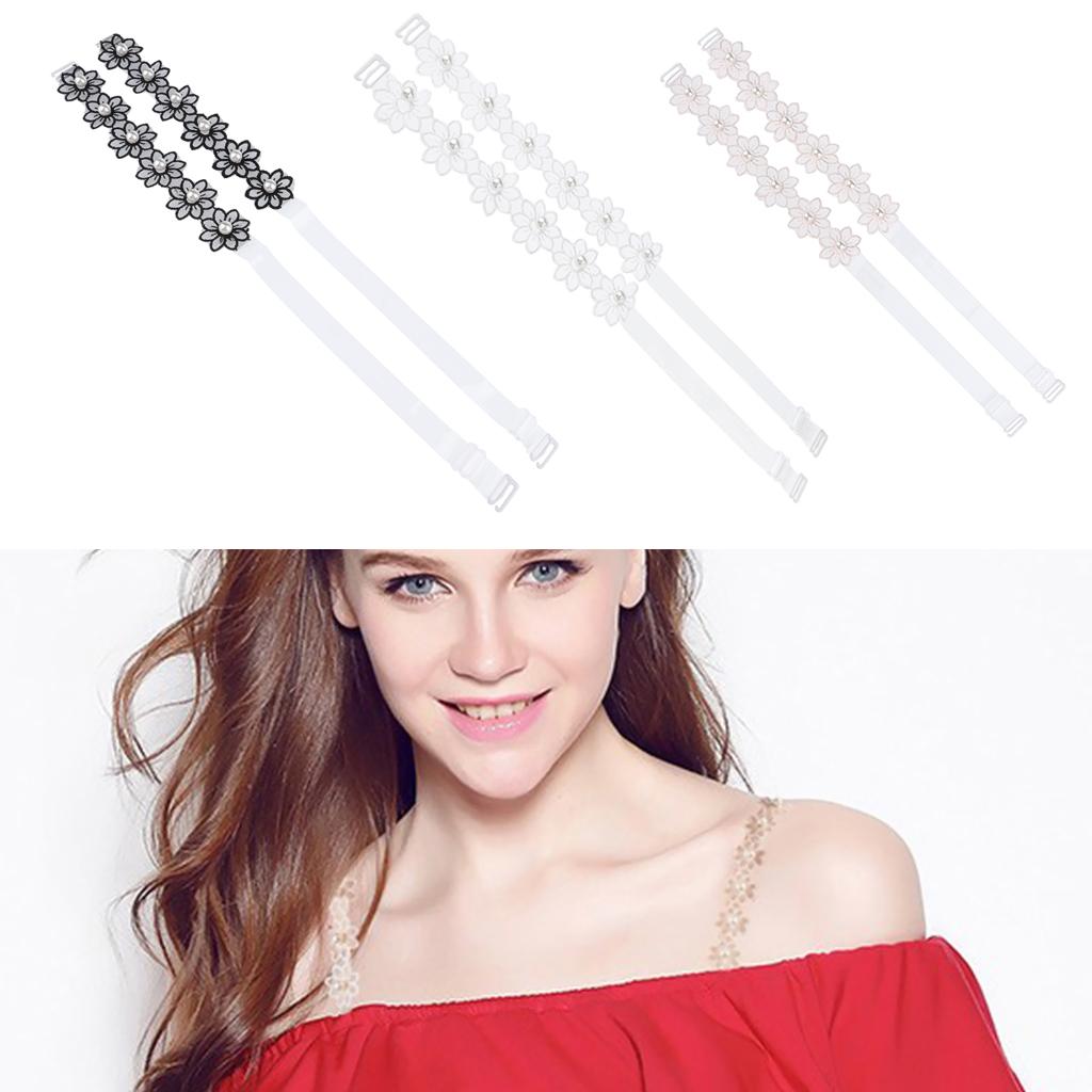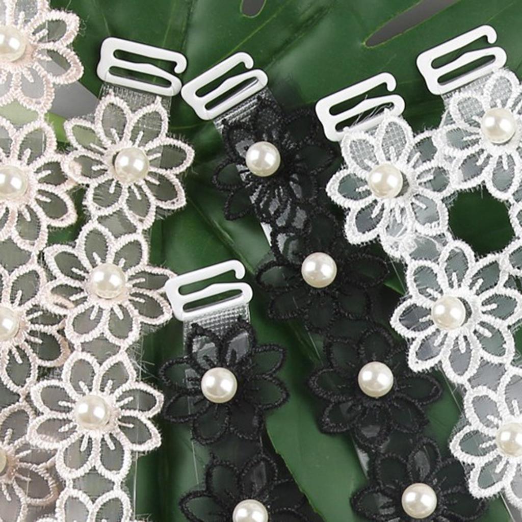 Women's Flower Lace Non-slip Bra Straps Replacement Shoulder Straps Black