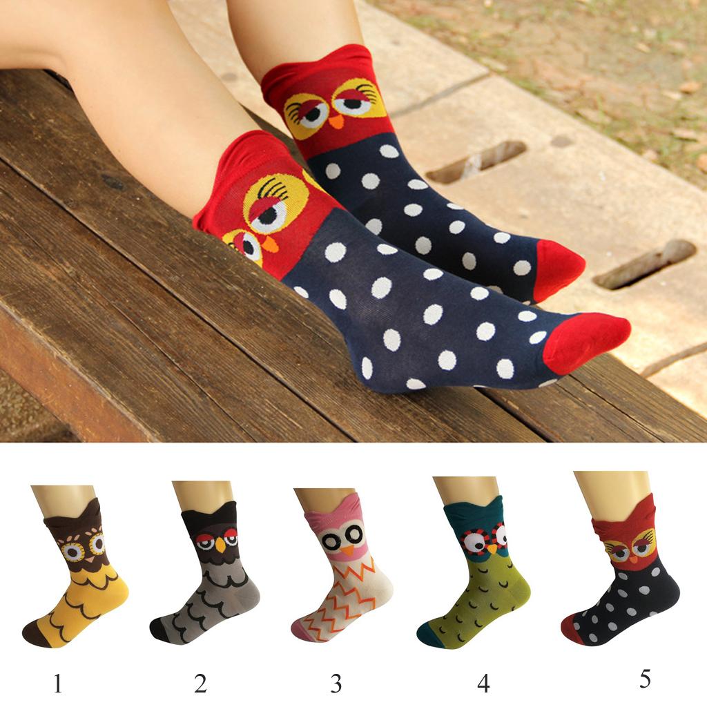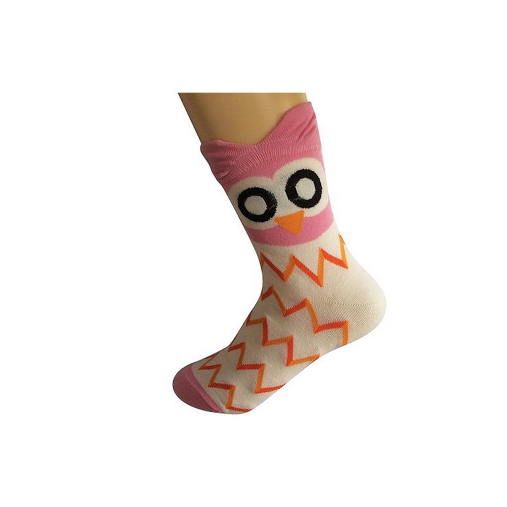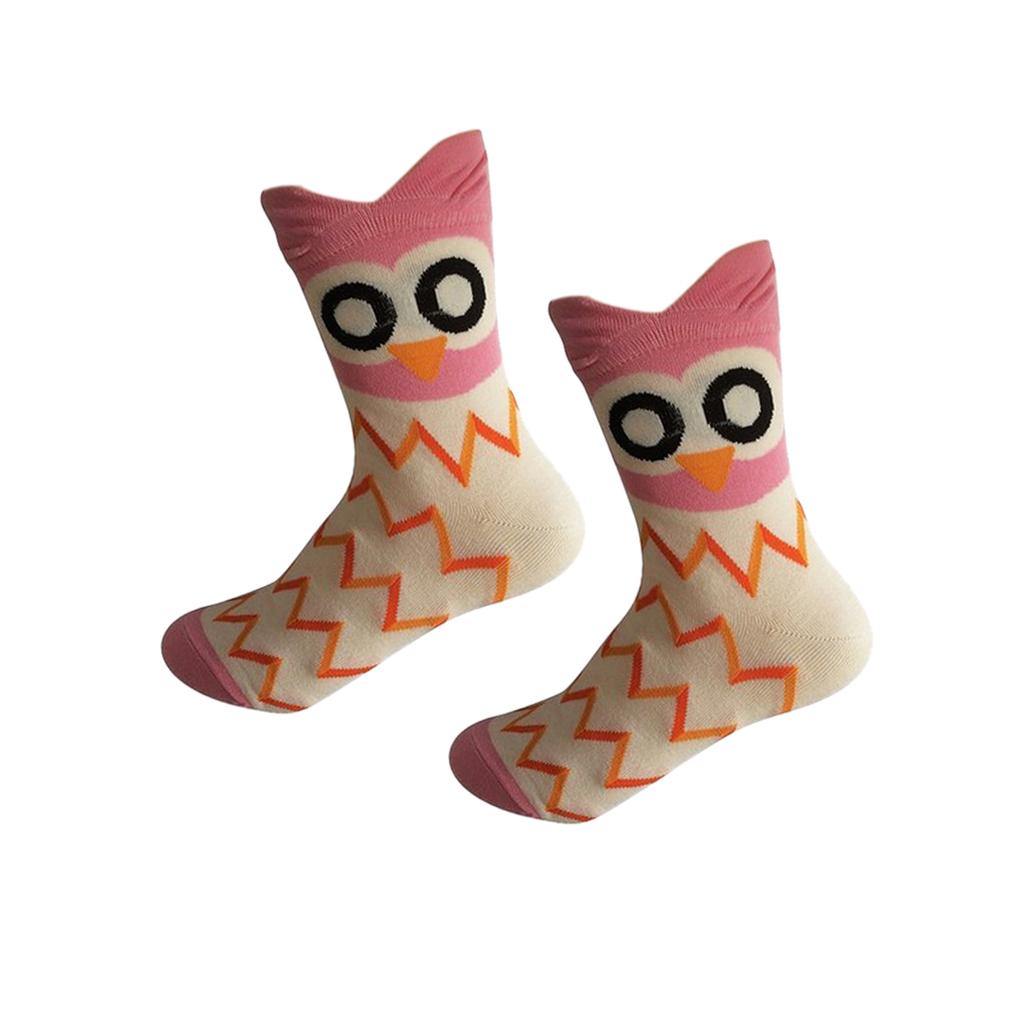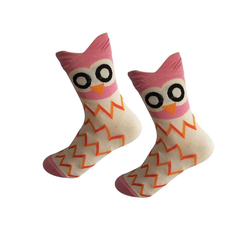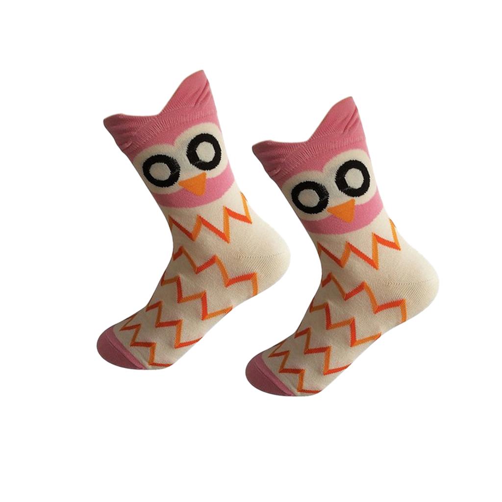 Women's Girl's Mid-Calf Socks Cartoon Soft 3D Owl Print Cotton Socks Pink