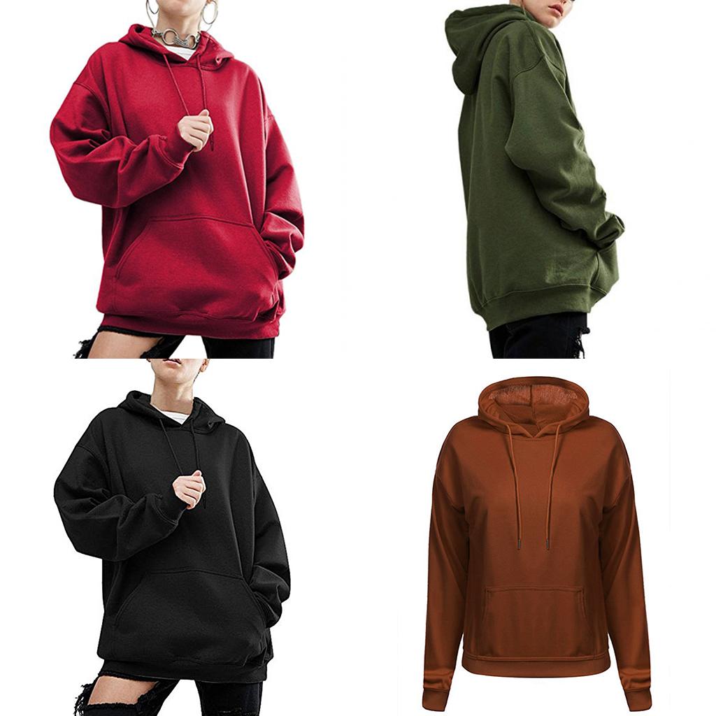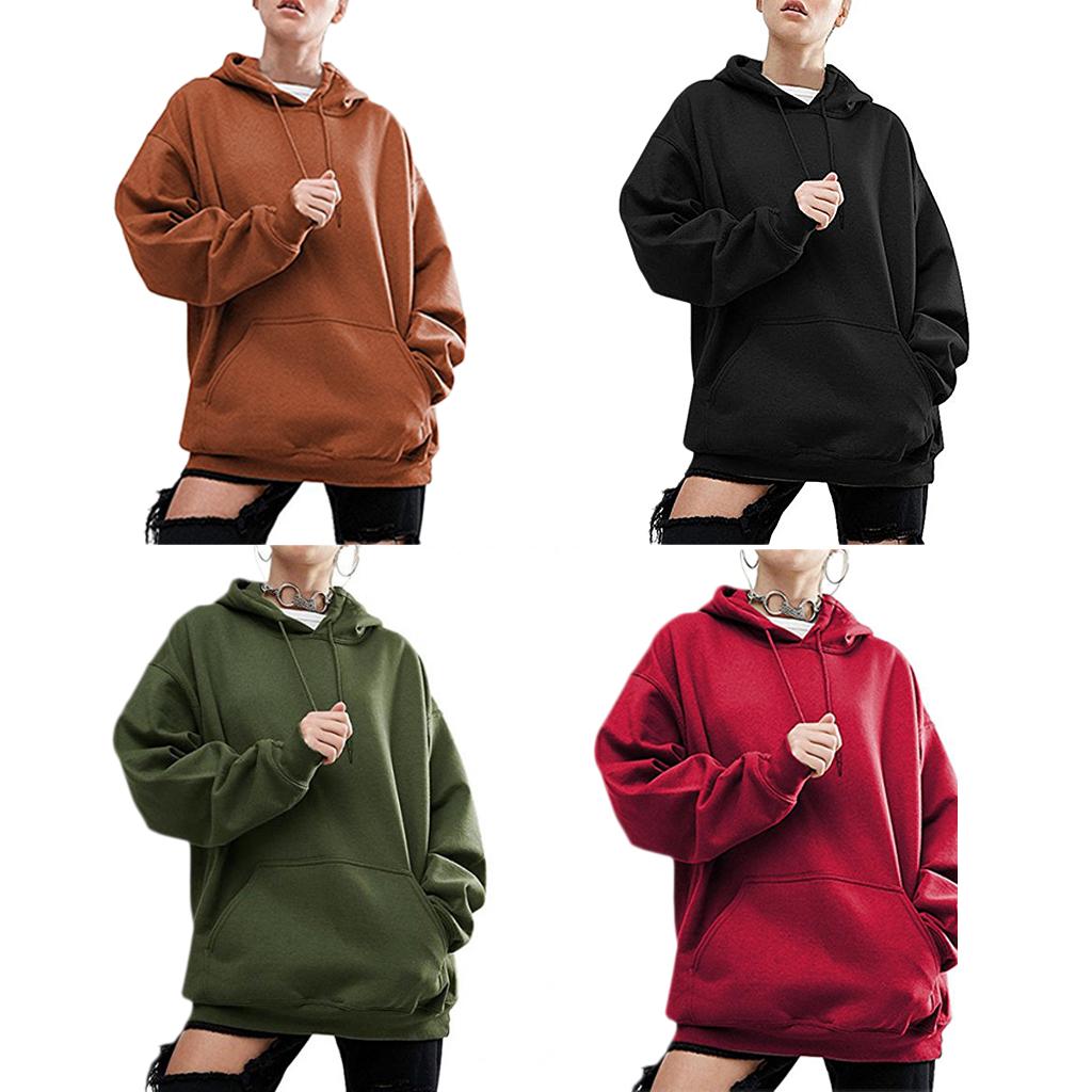 Women Long Sleeve Pullover Kangaroo Pocket Sweatshirt Hoodie Plus Size.