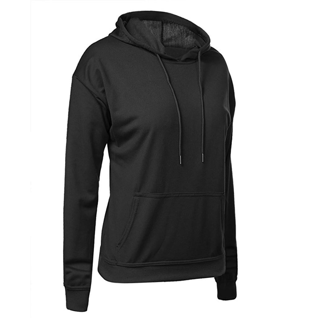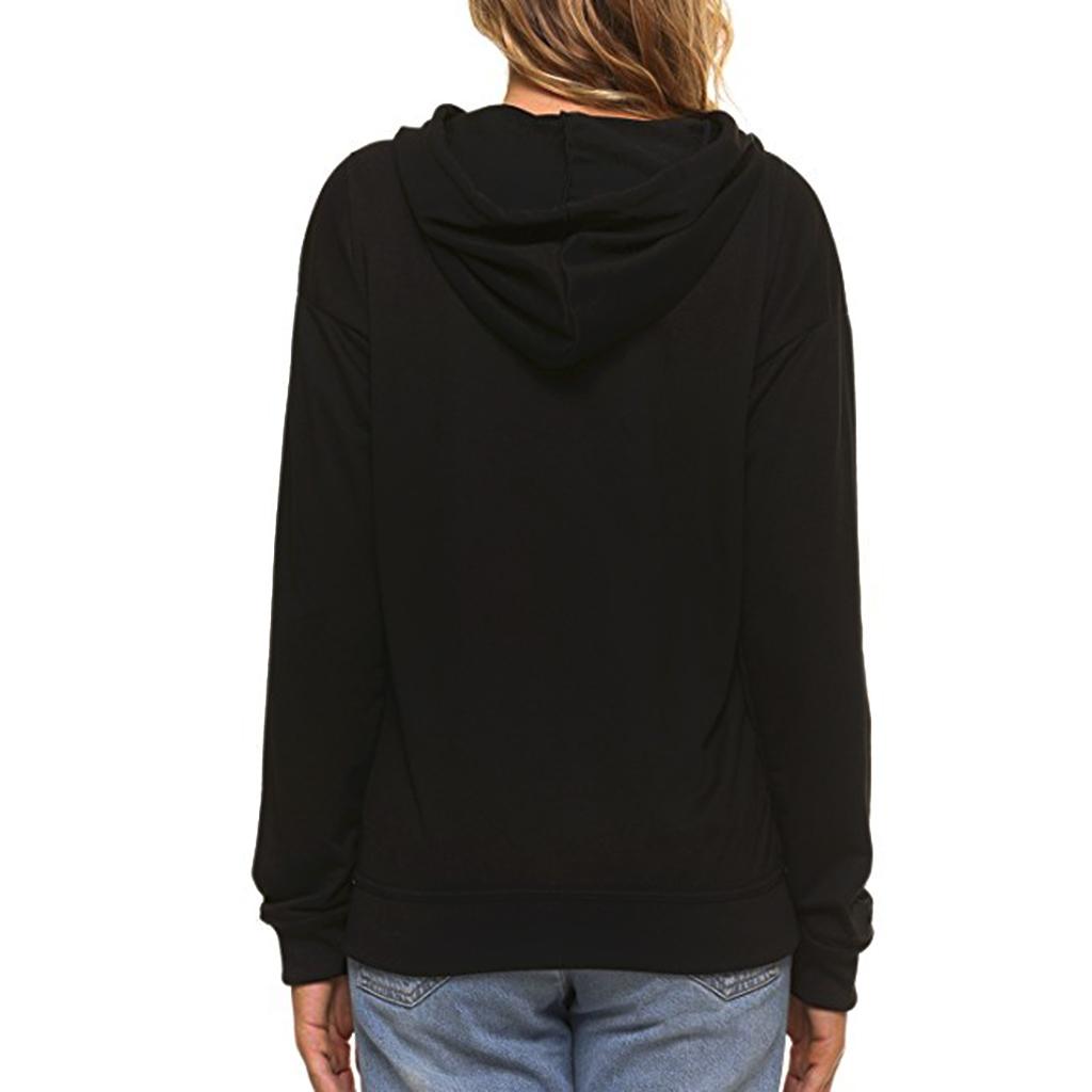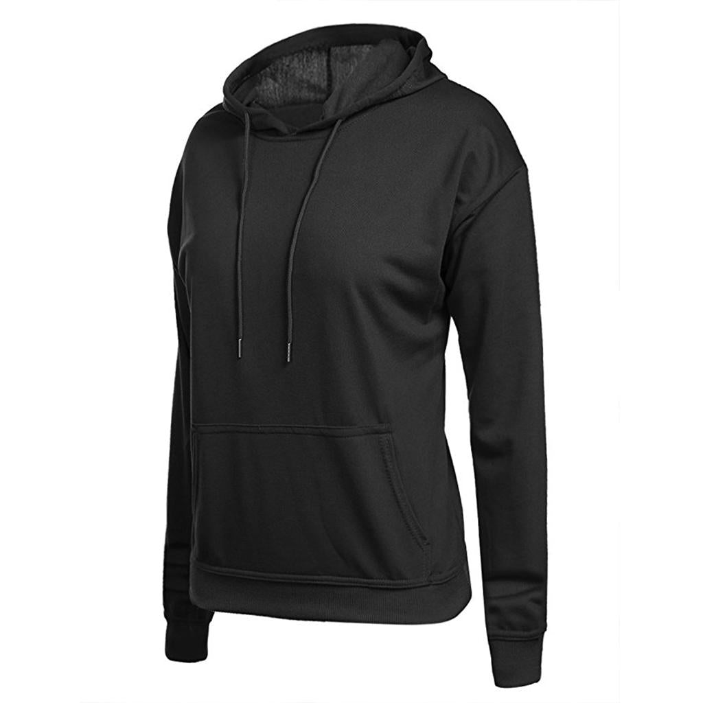 Womens Hoodies Long Sleeve Jumper Casual Hooded Pullover Tops Sweatshirt XL Black