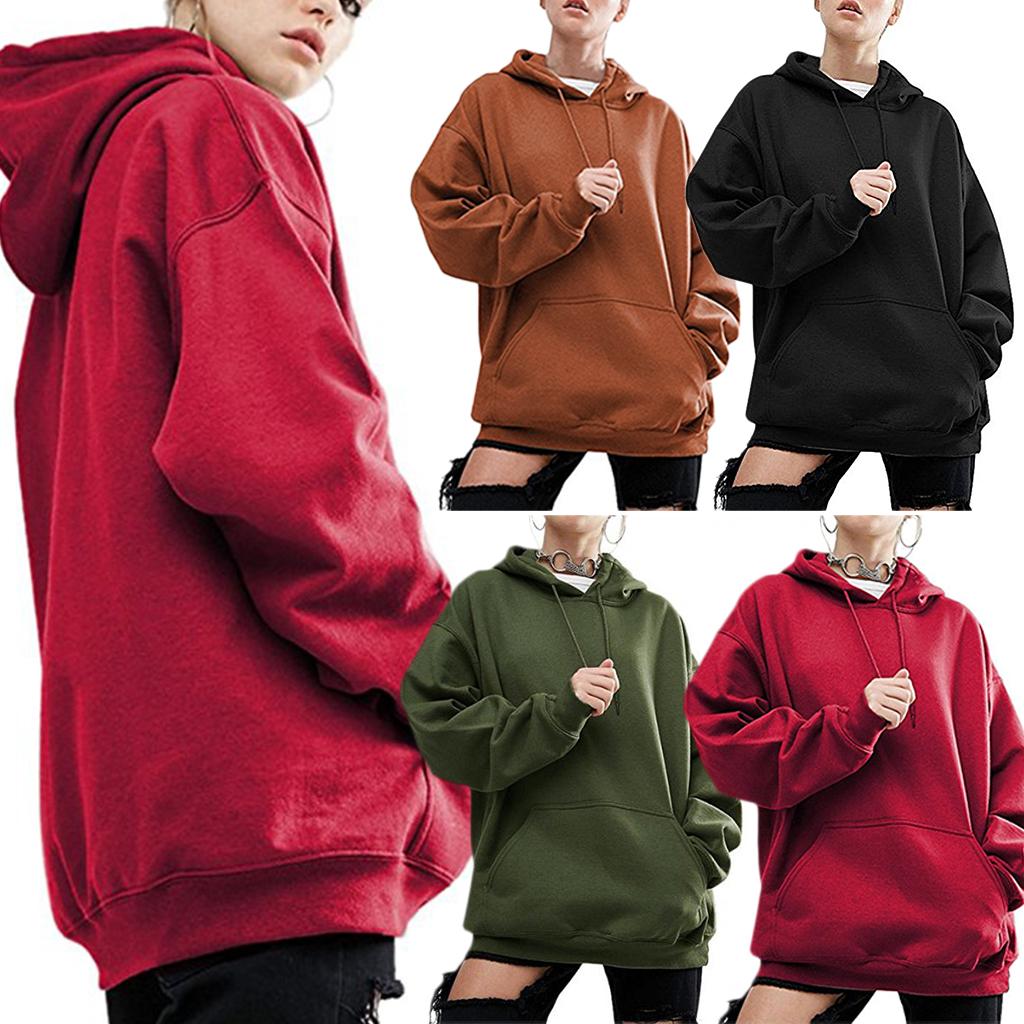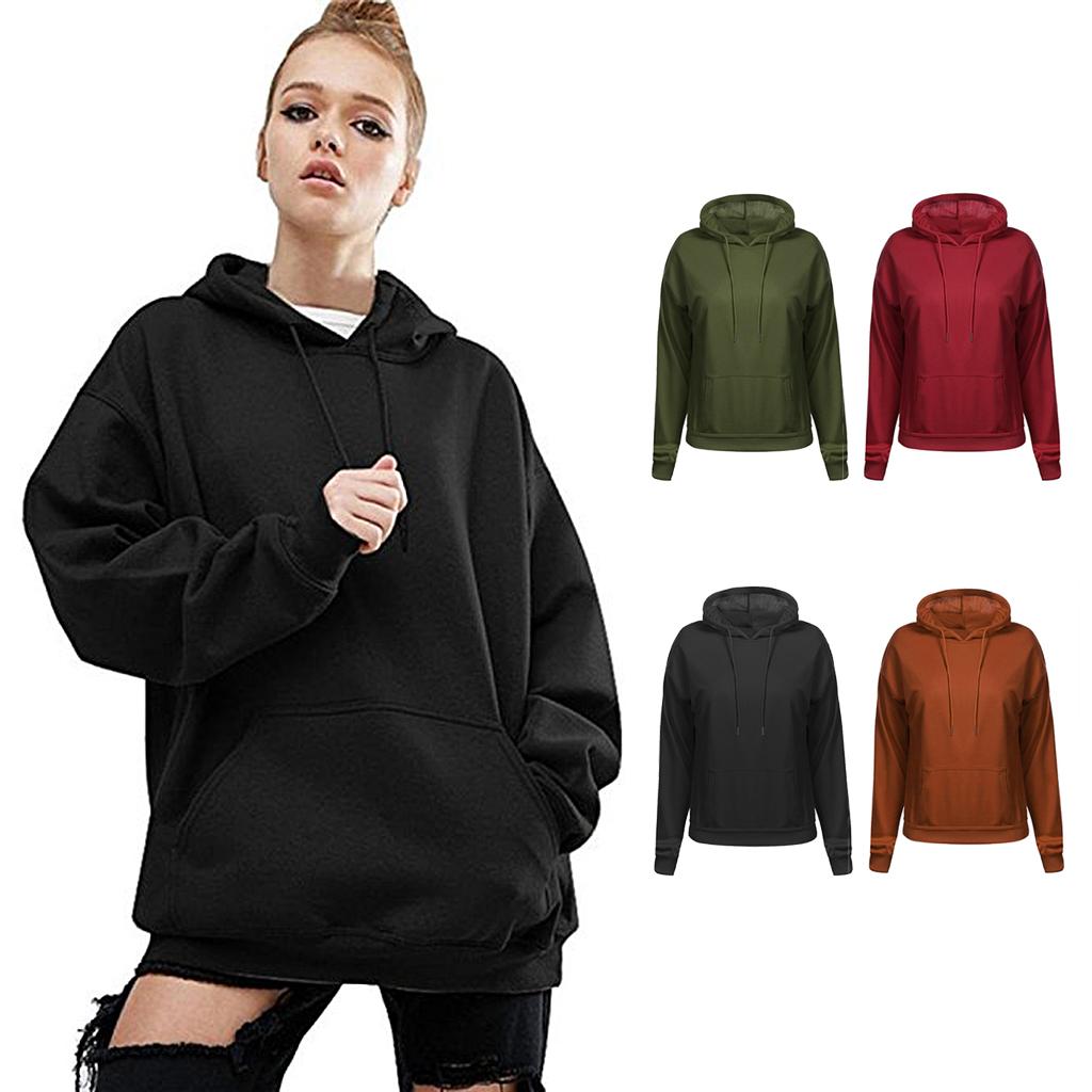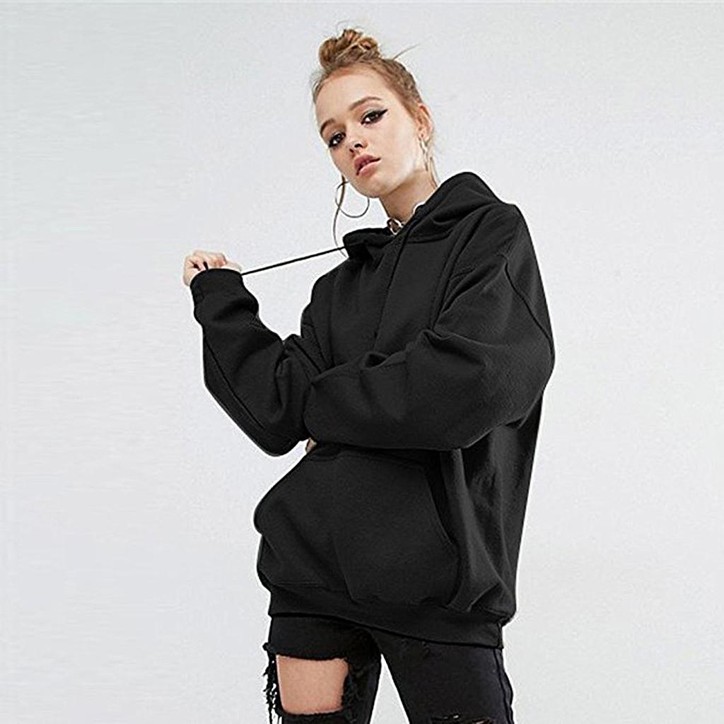 Womens Hoodies Long Sleeve Jumper Casual Hooded Pullover Tops Sweatshirt XL Black