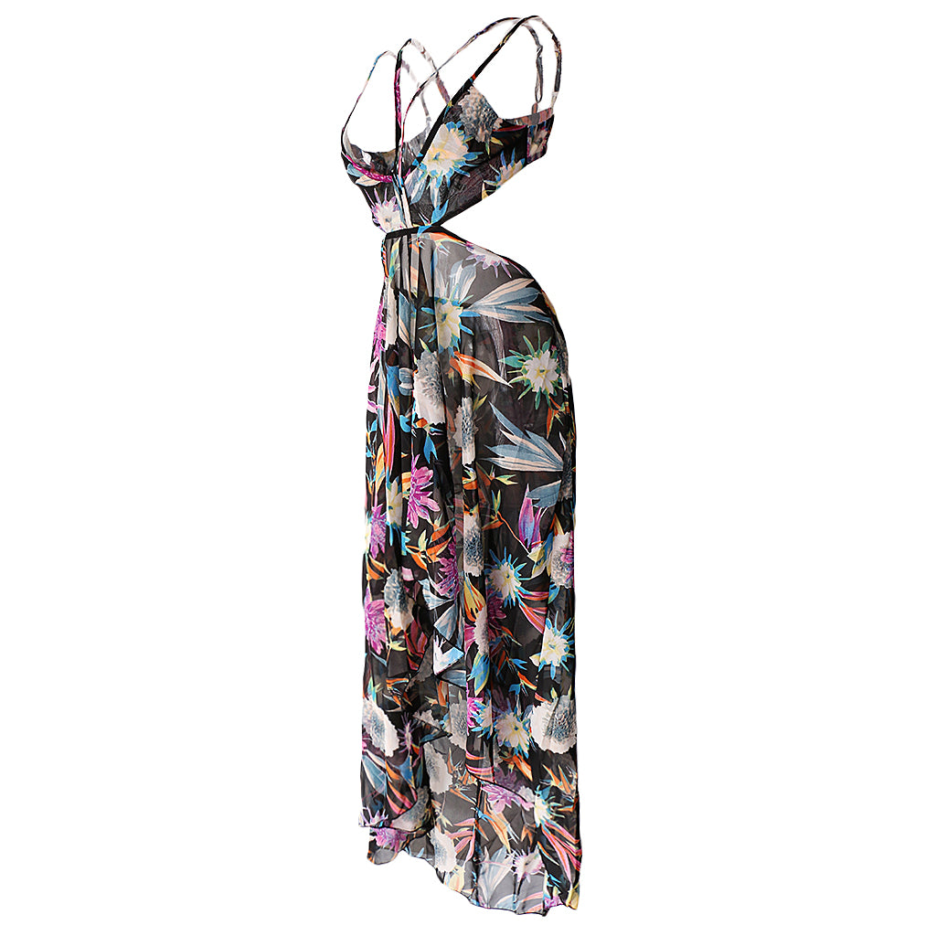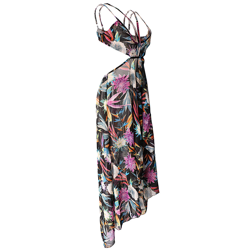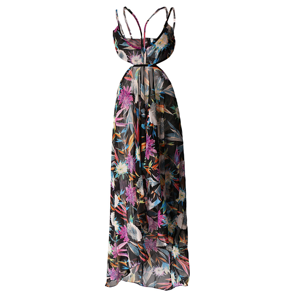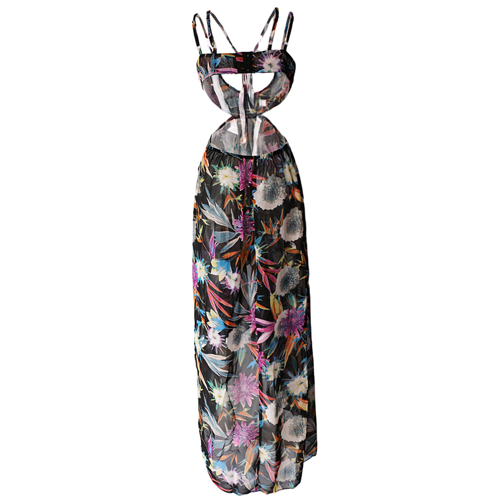 Women's Split Floral Spaghetti Strap Beach Party Maxi Dress XL Black
