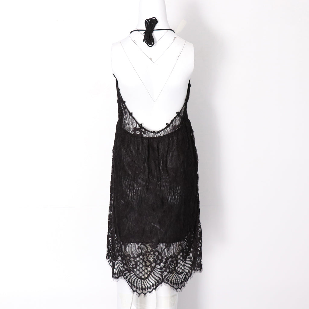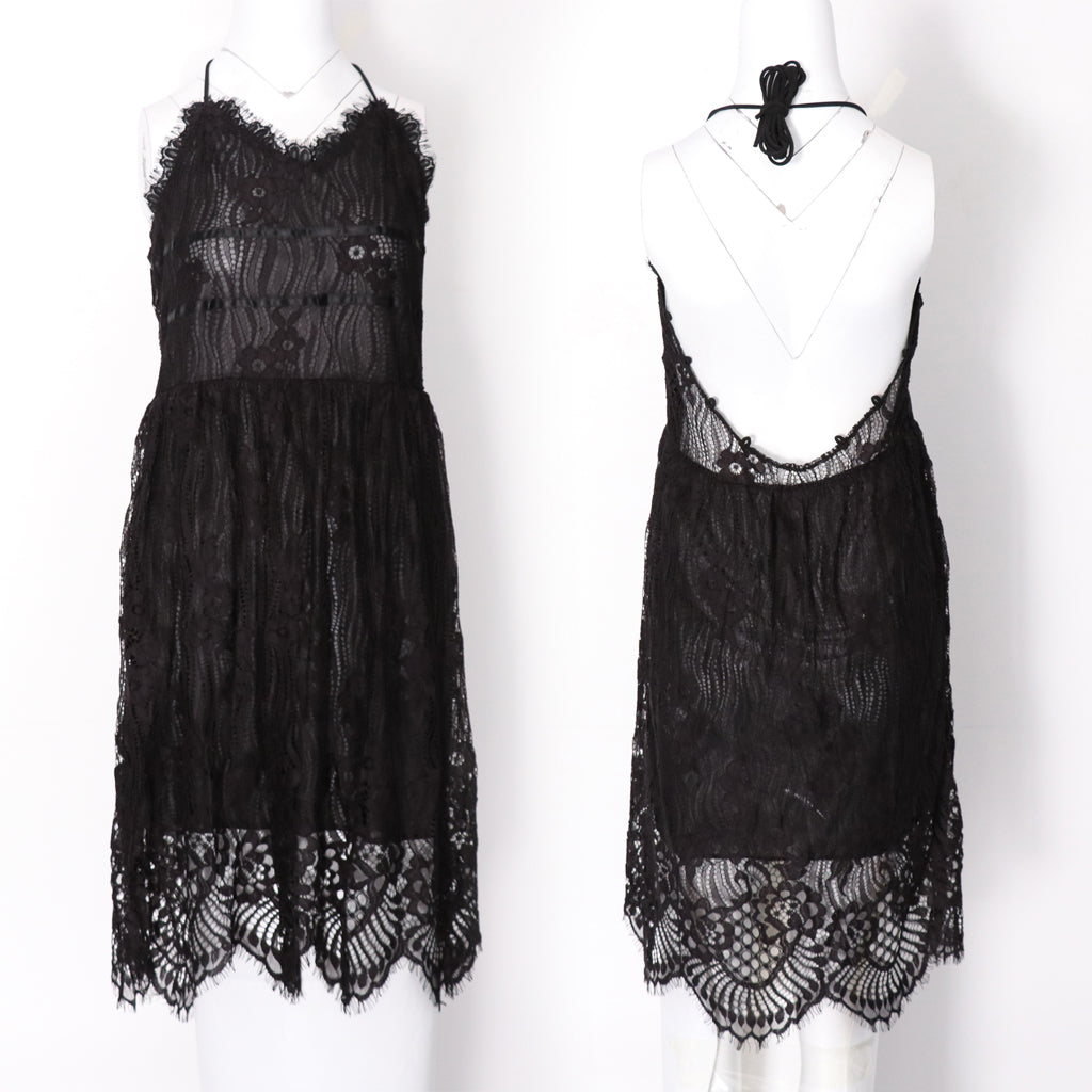 V-neck, Lace Spaghetti Straps, A-line, Boho Style, Knee-length, Backless.