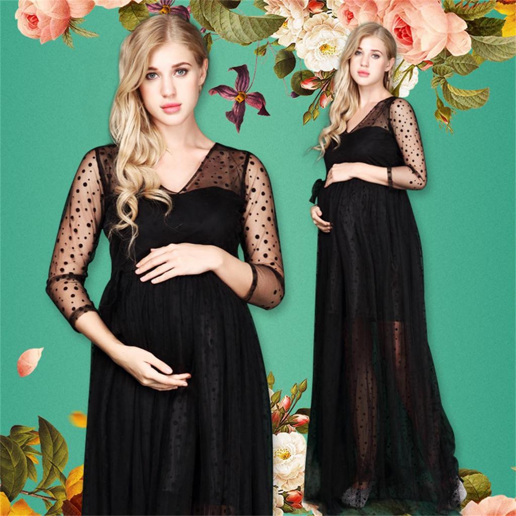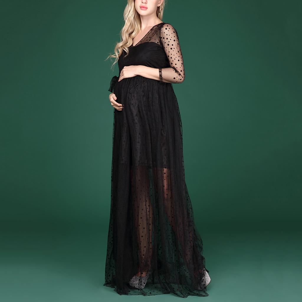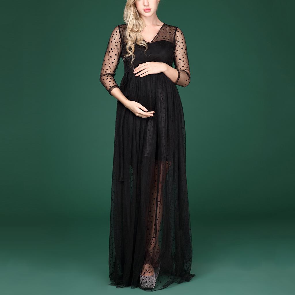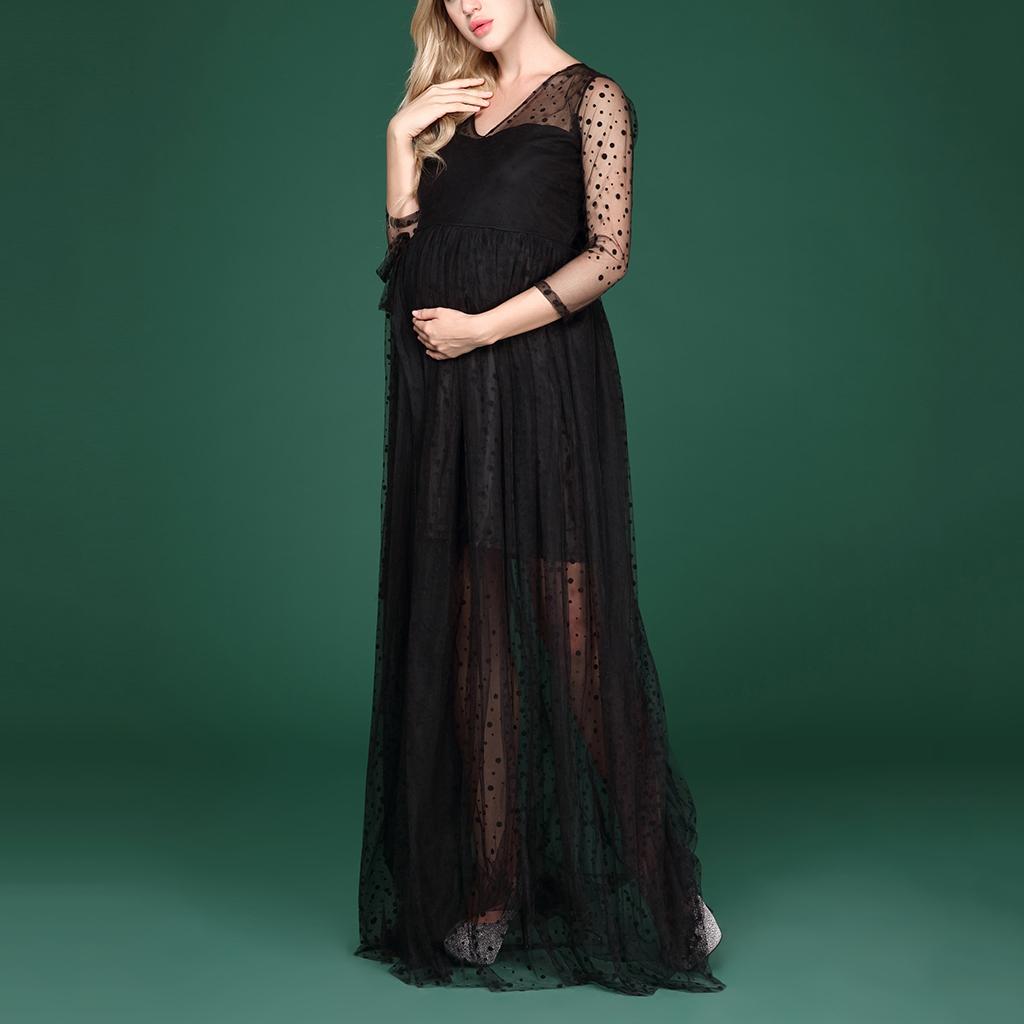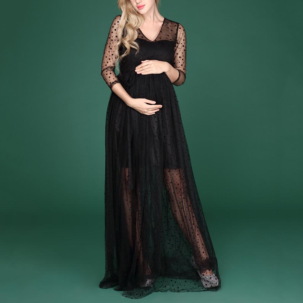 Maternity Womens V Neck Mesh Maxi Dress for Photo Shoot.
