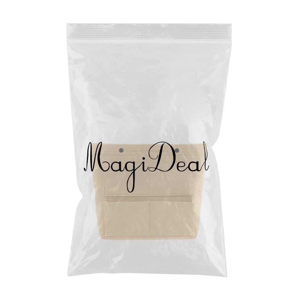 Large Felt Handbag Tote Purse Organizer Insert Liner Multi-Pocket Beige