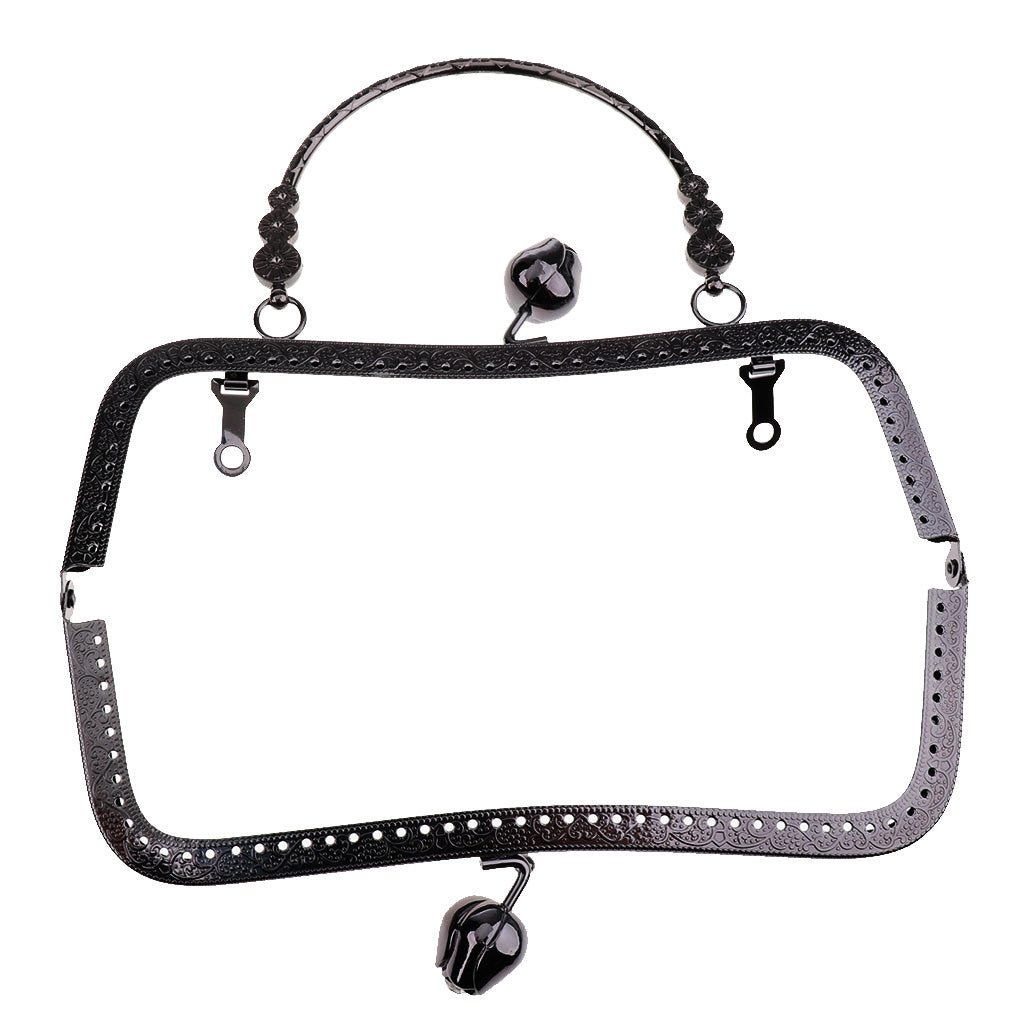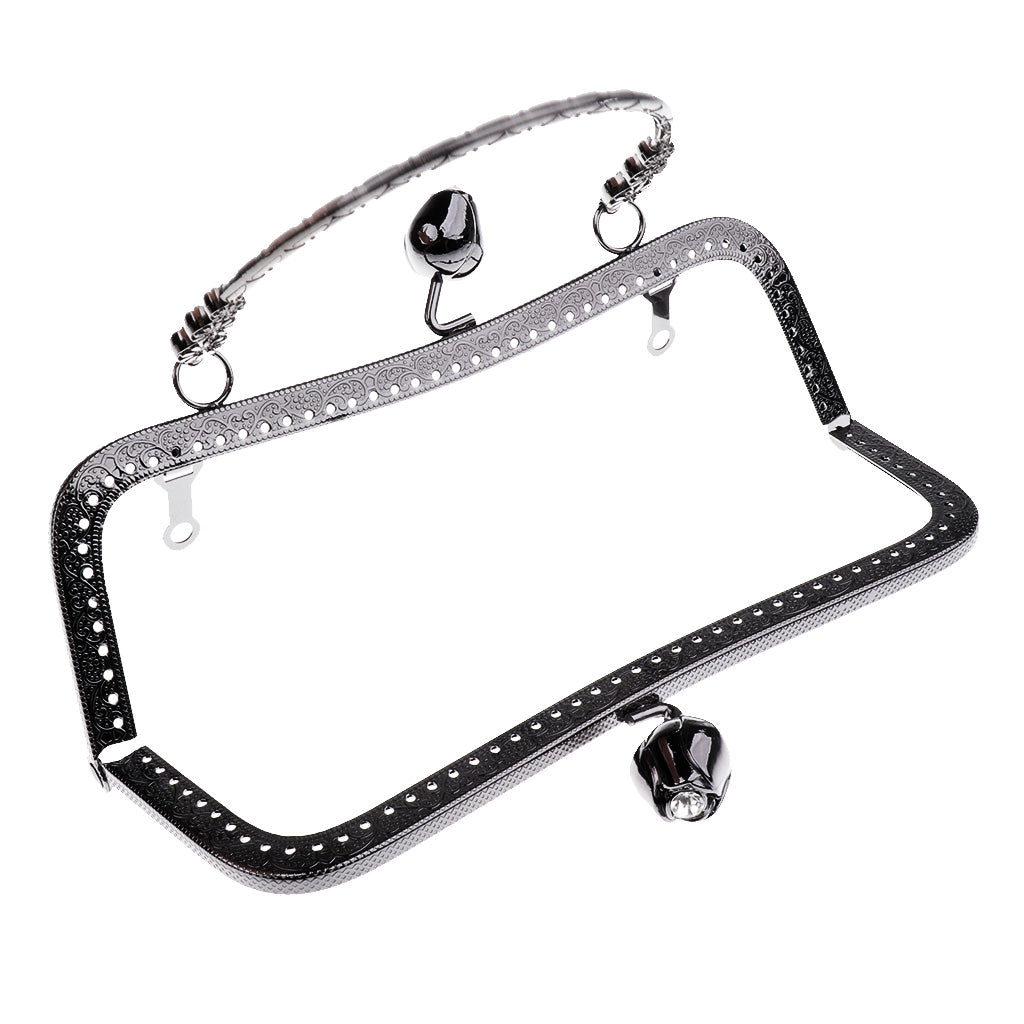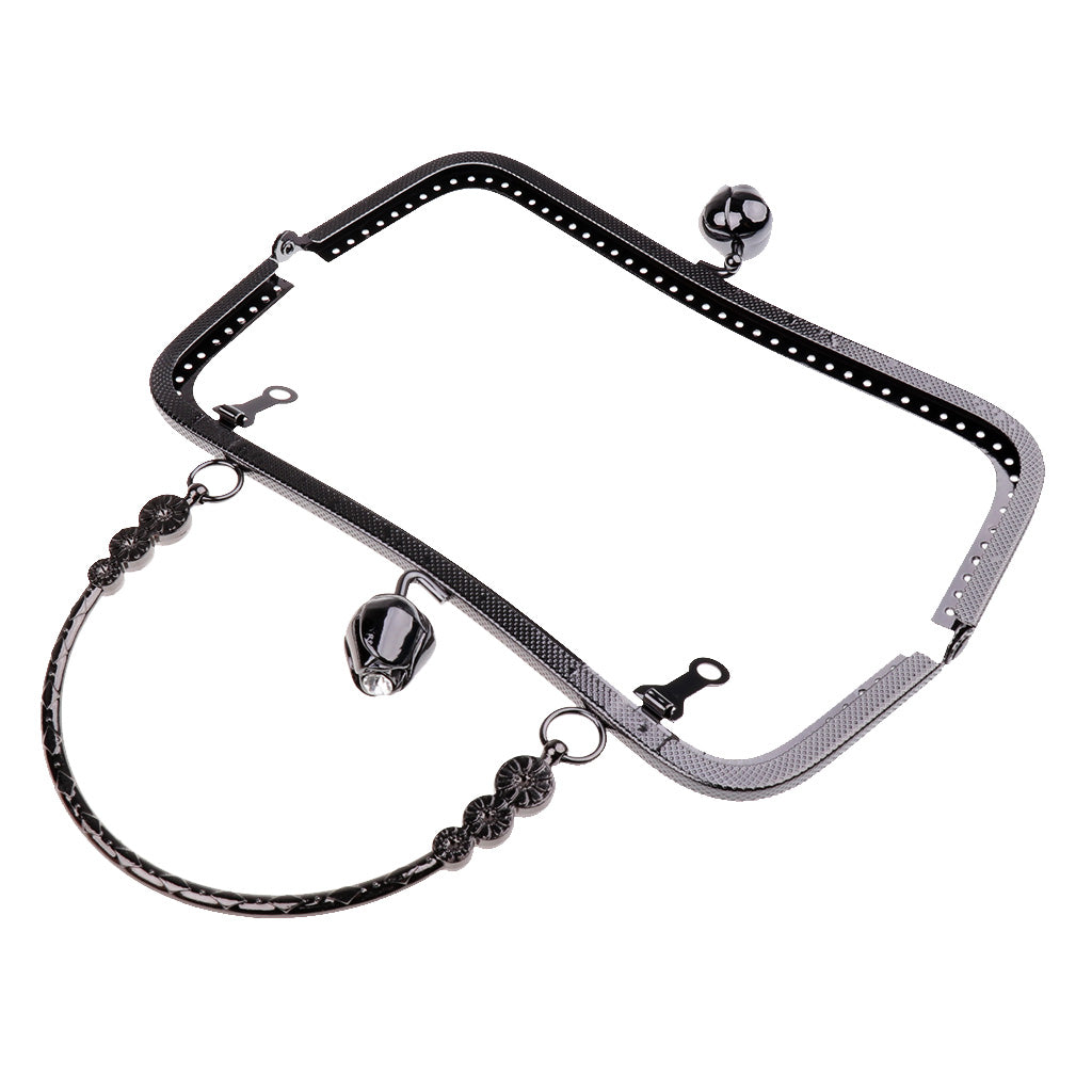 Metal Purse Bag Frame Kiss Clasp Lock with Handle DIY Crafts 20cm Black