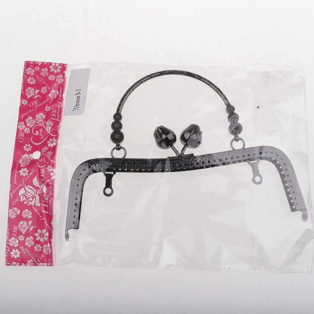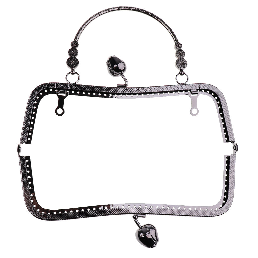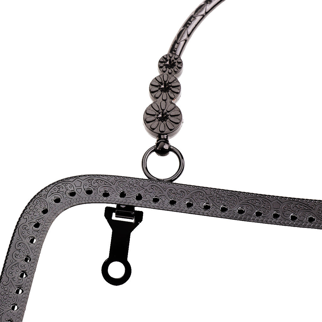 Metal Purse Bag Frame Kiss Clasp Lock with Handle DIY Crafts 20cm Black