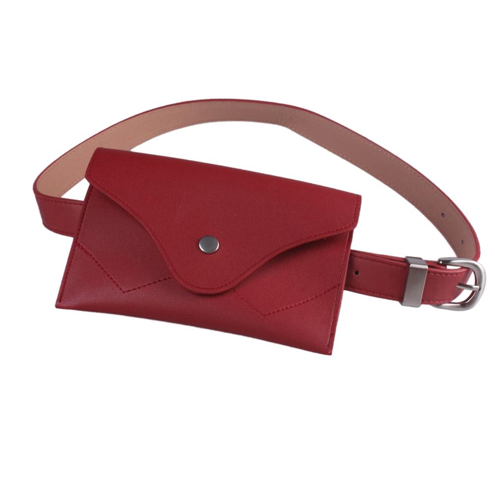 Women Fashion Mini Waist Bag Fanny Pack PU Leather Cell Phone Pocket Red