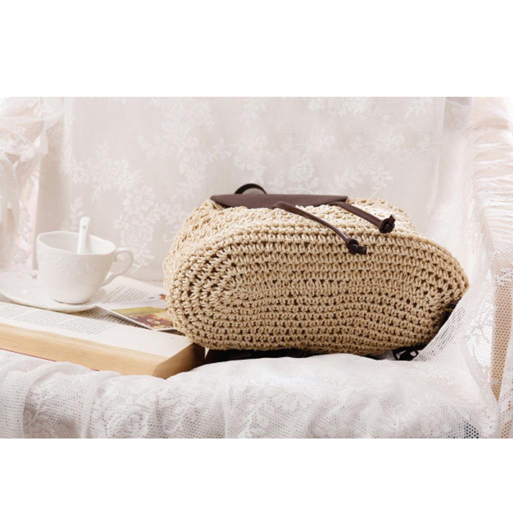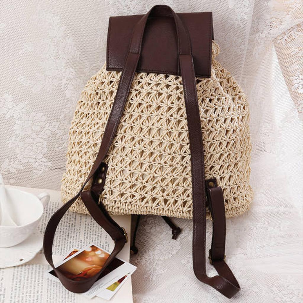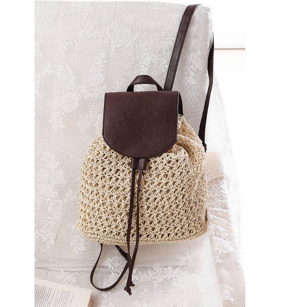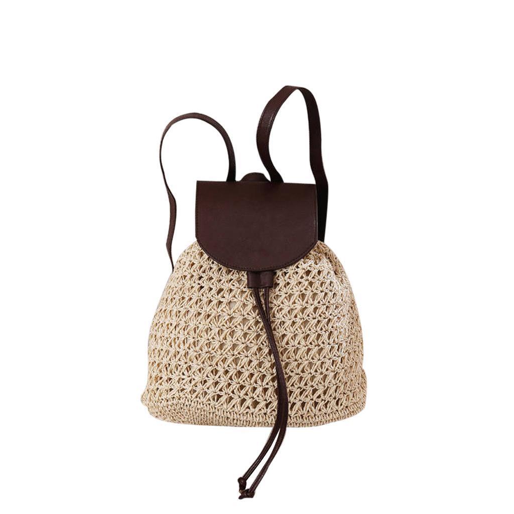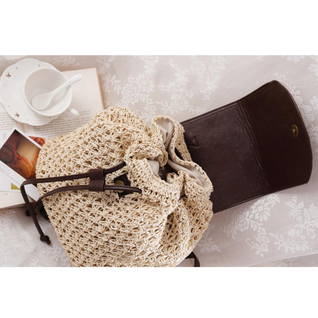 Women Fashion Sweet Straw Bag Beach Beige Shoulder Bag Backpack Beige