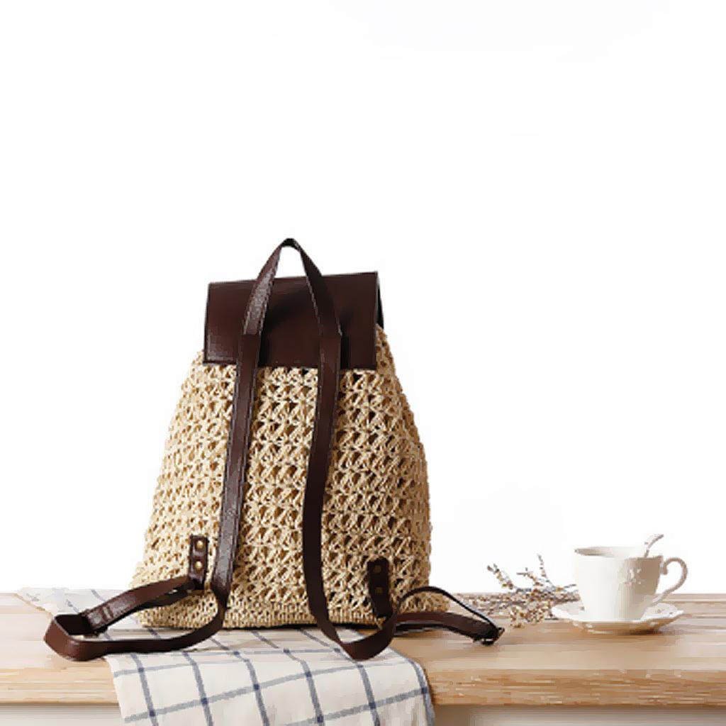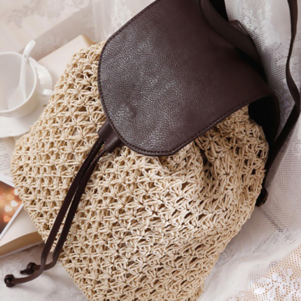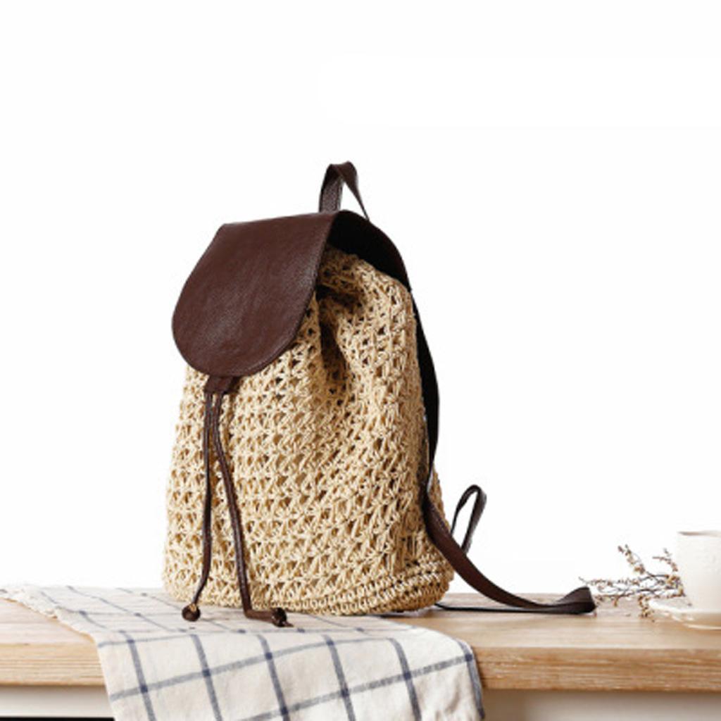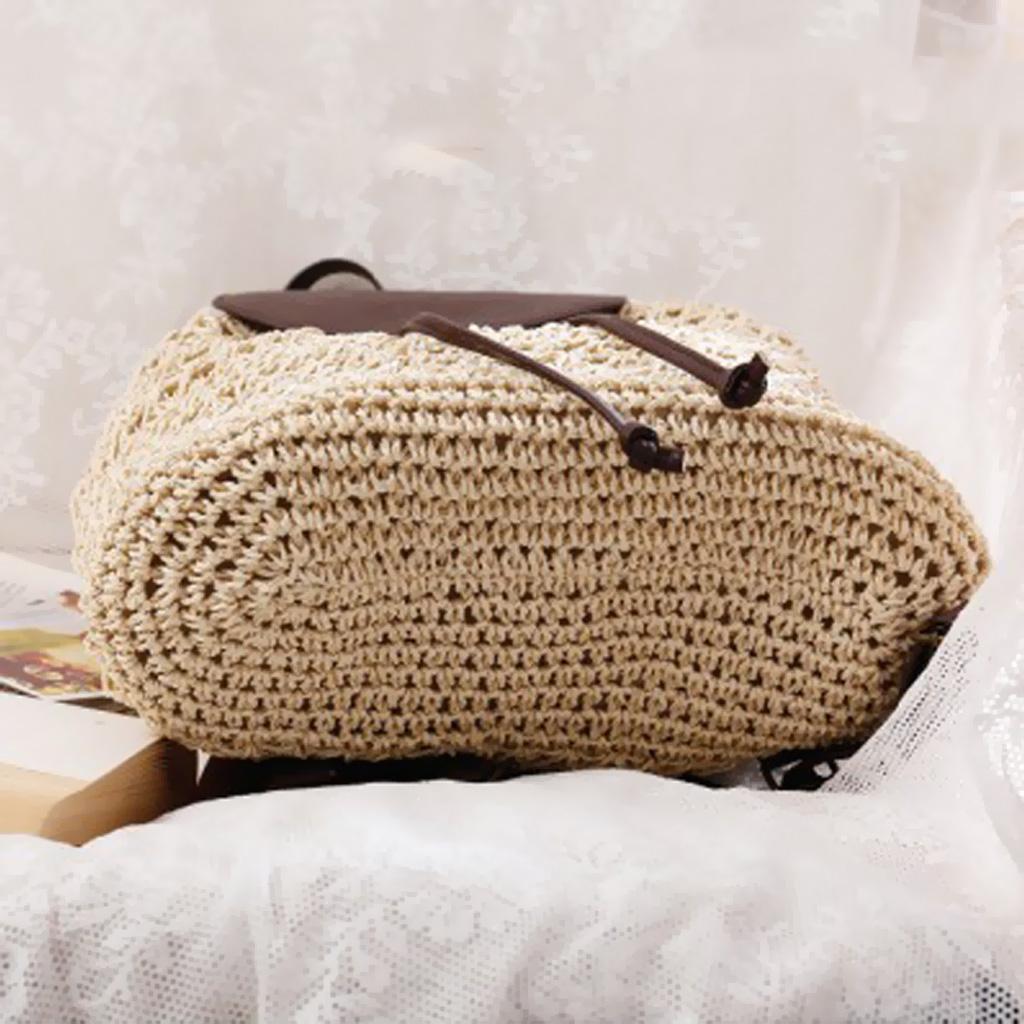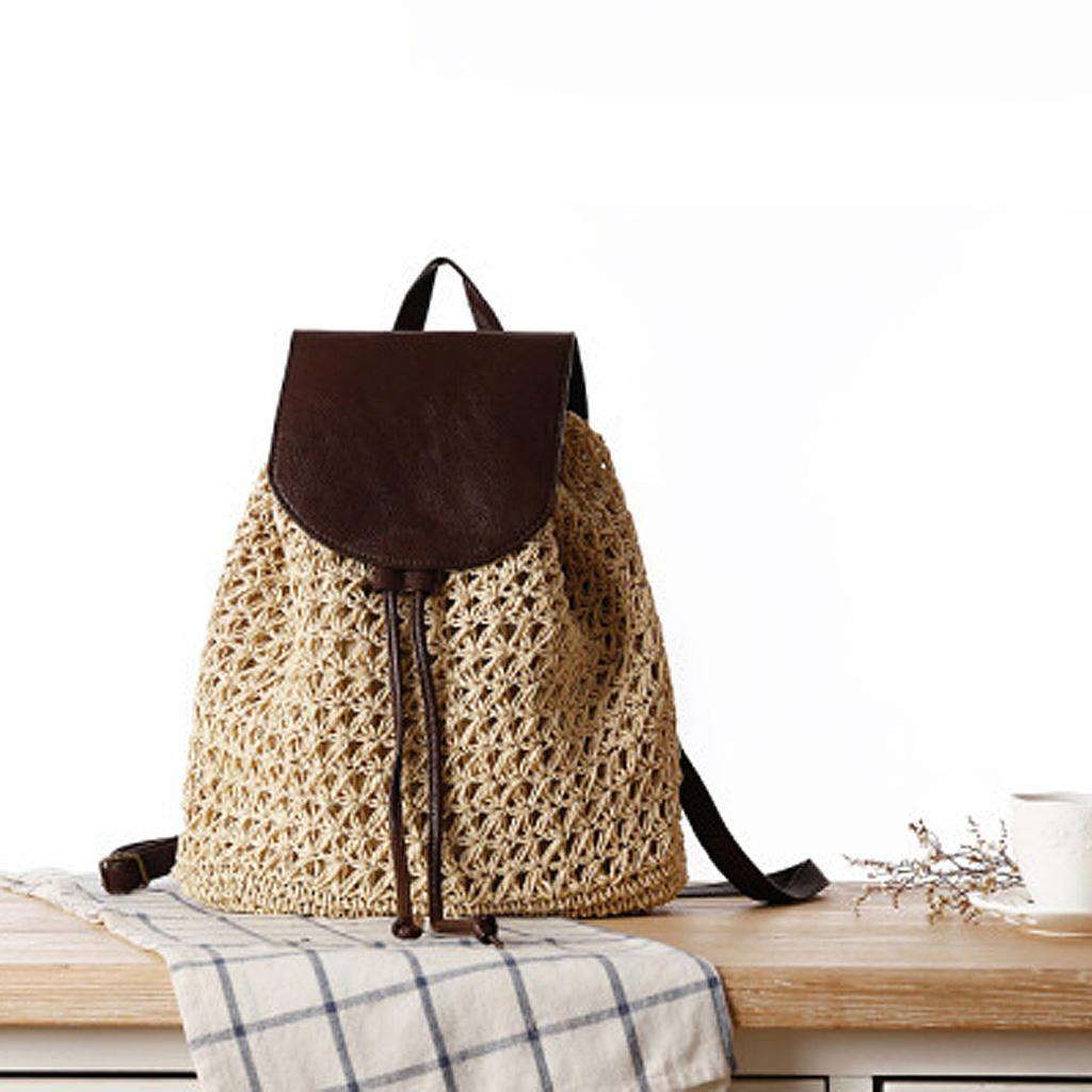 Women Fashion Sweet Straw Bag Beach Beige Shoulder Bag Backpack Beige