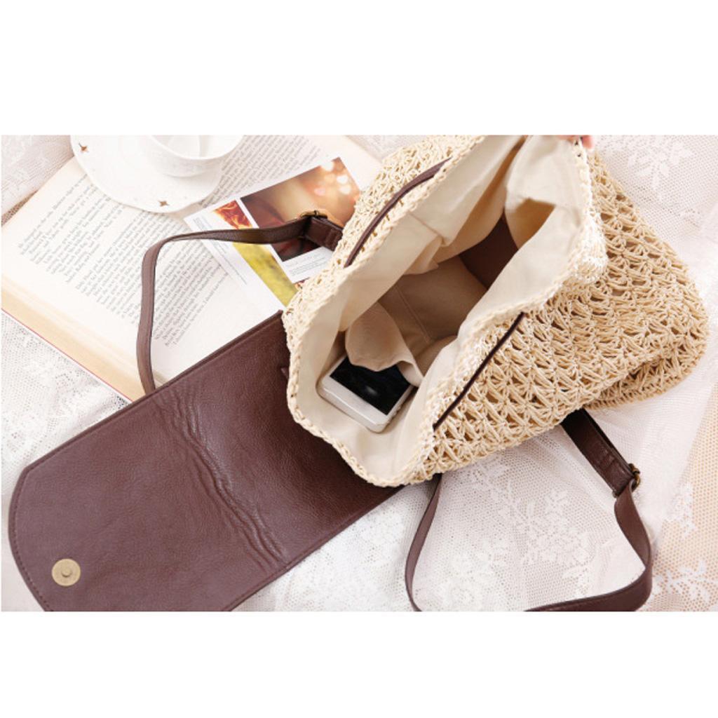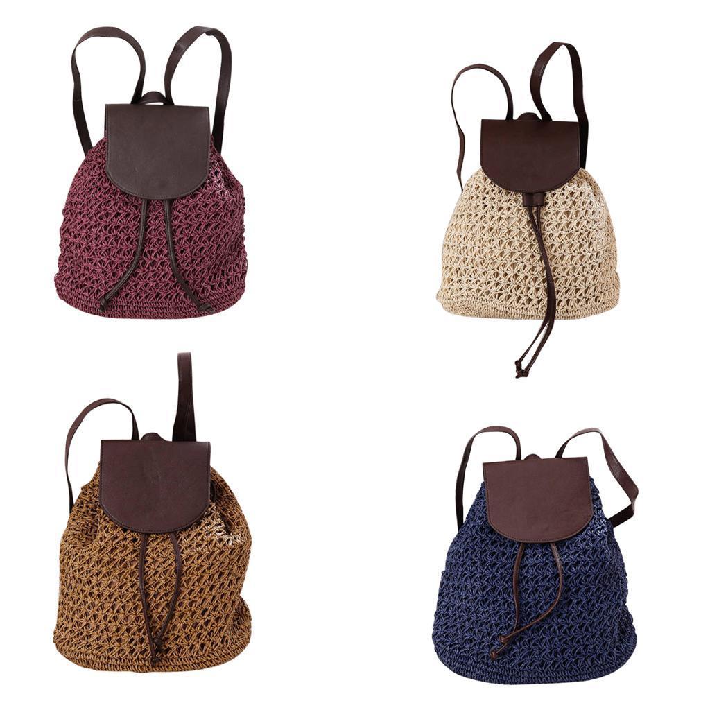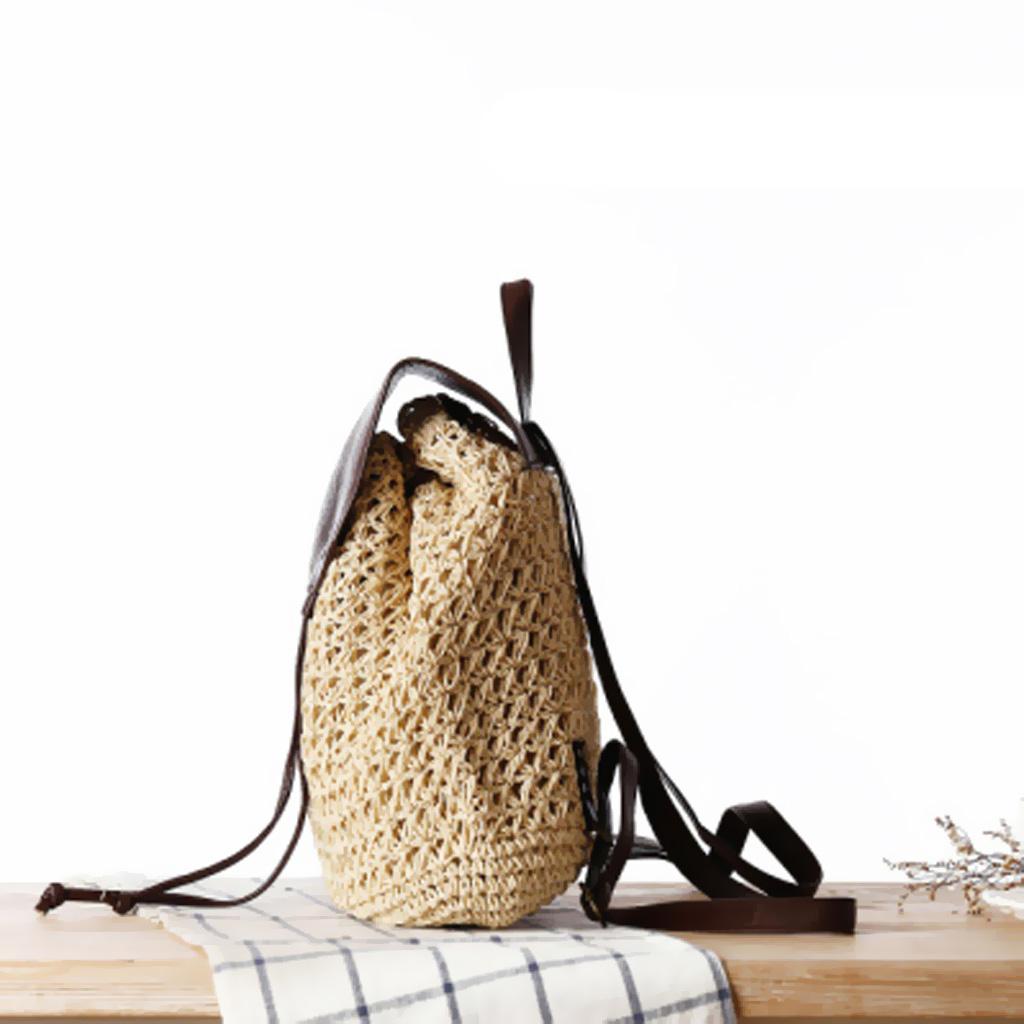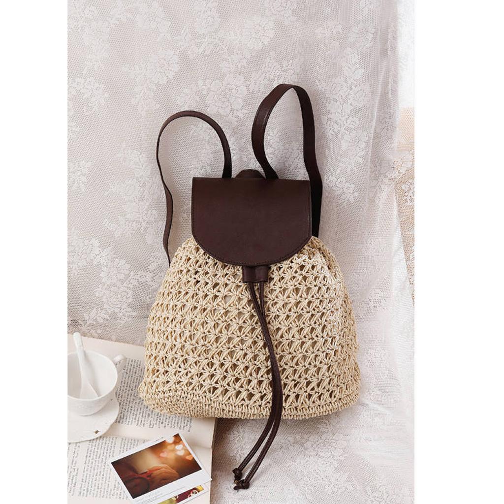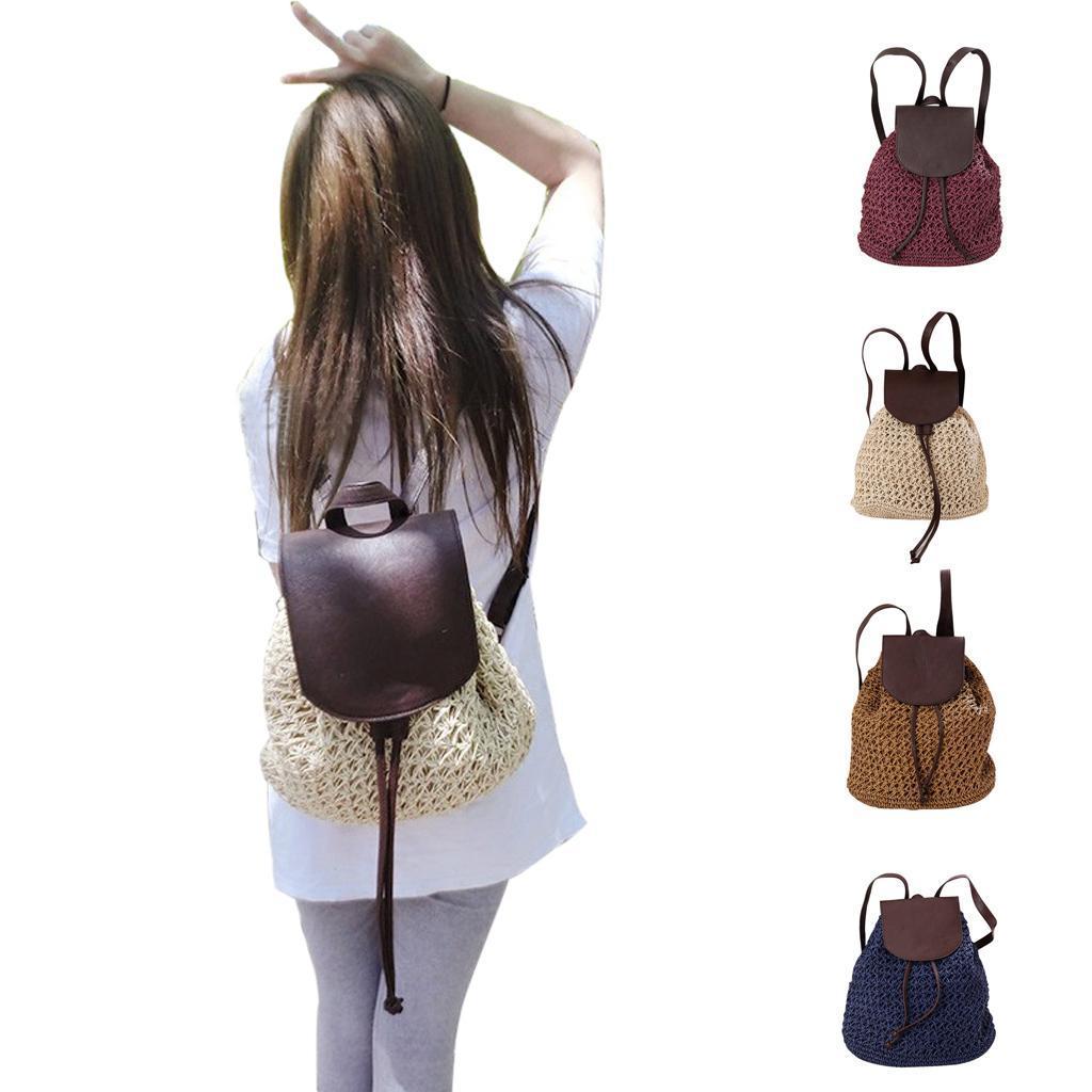 Women Fashion Sweet Straw Bag Beach Beige Shoulder Bag Backpack Beige