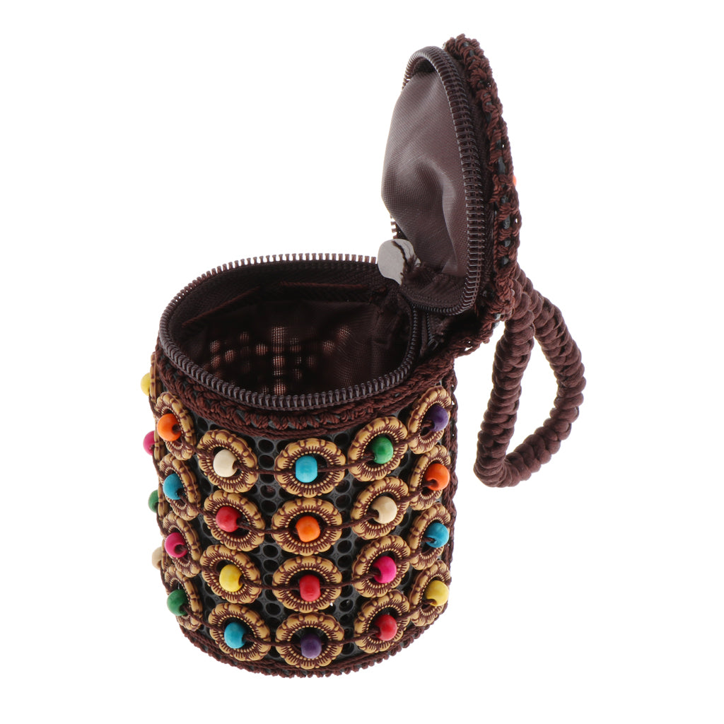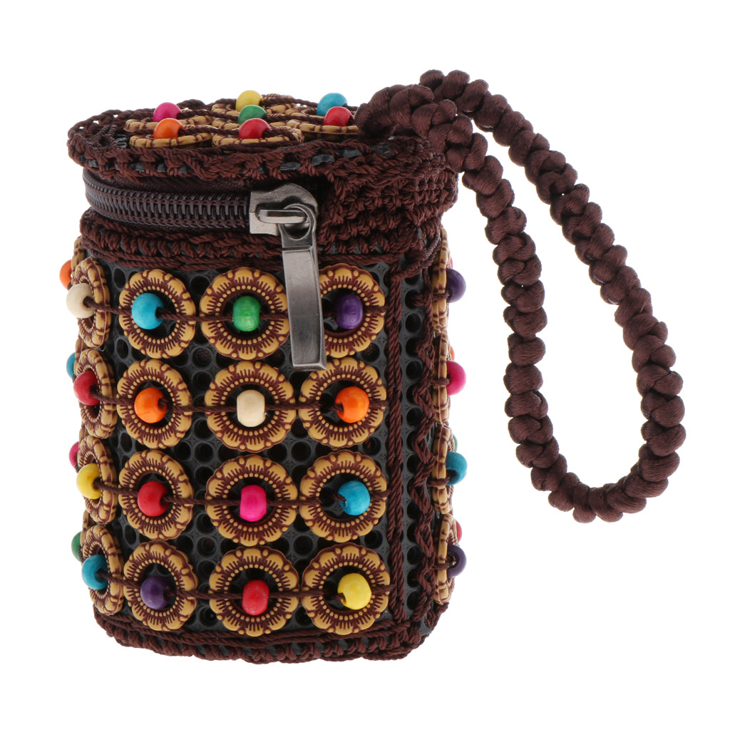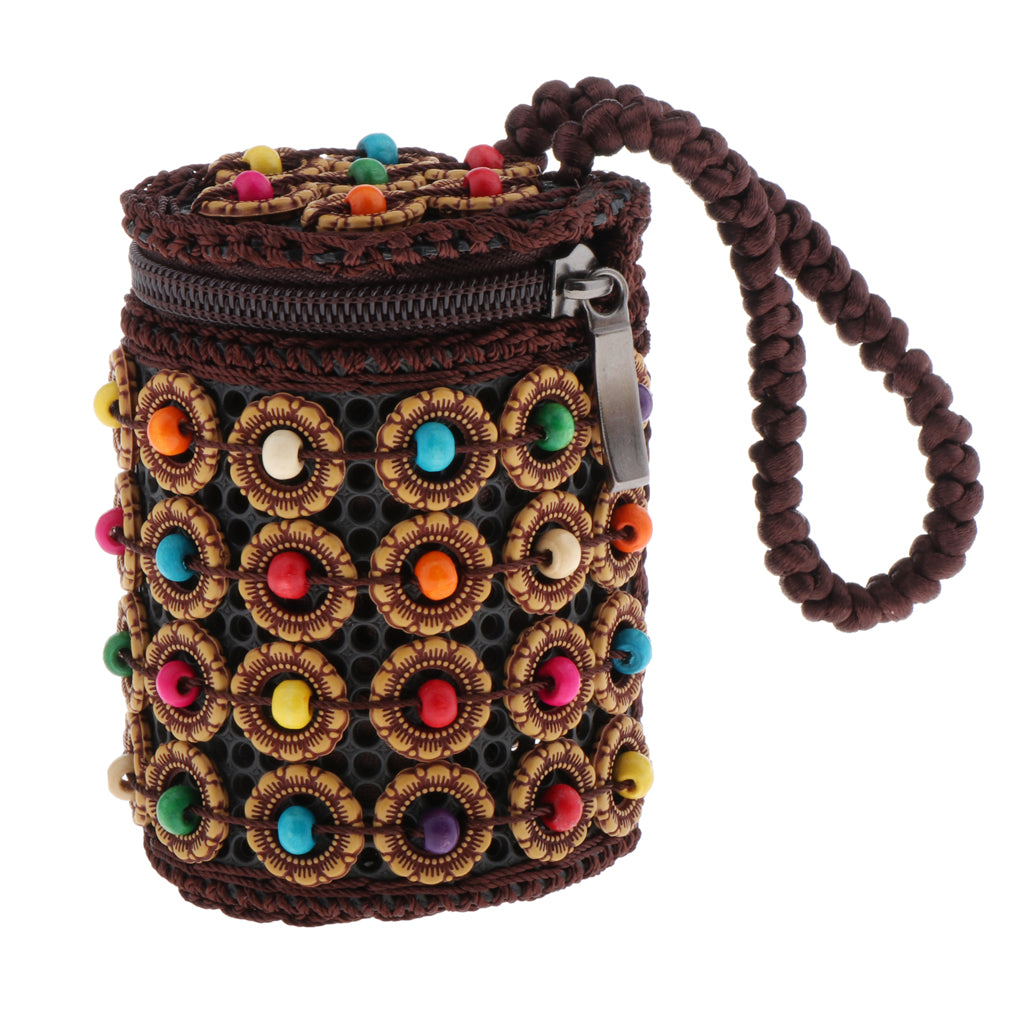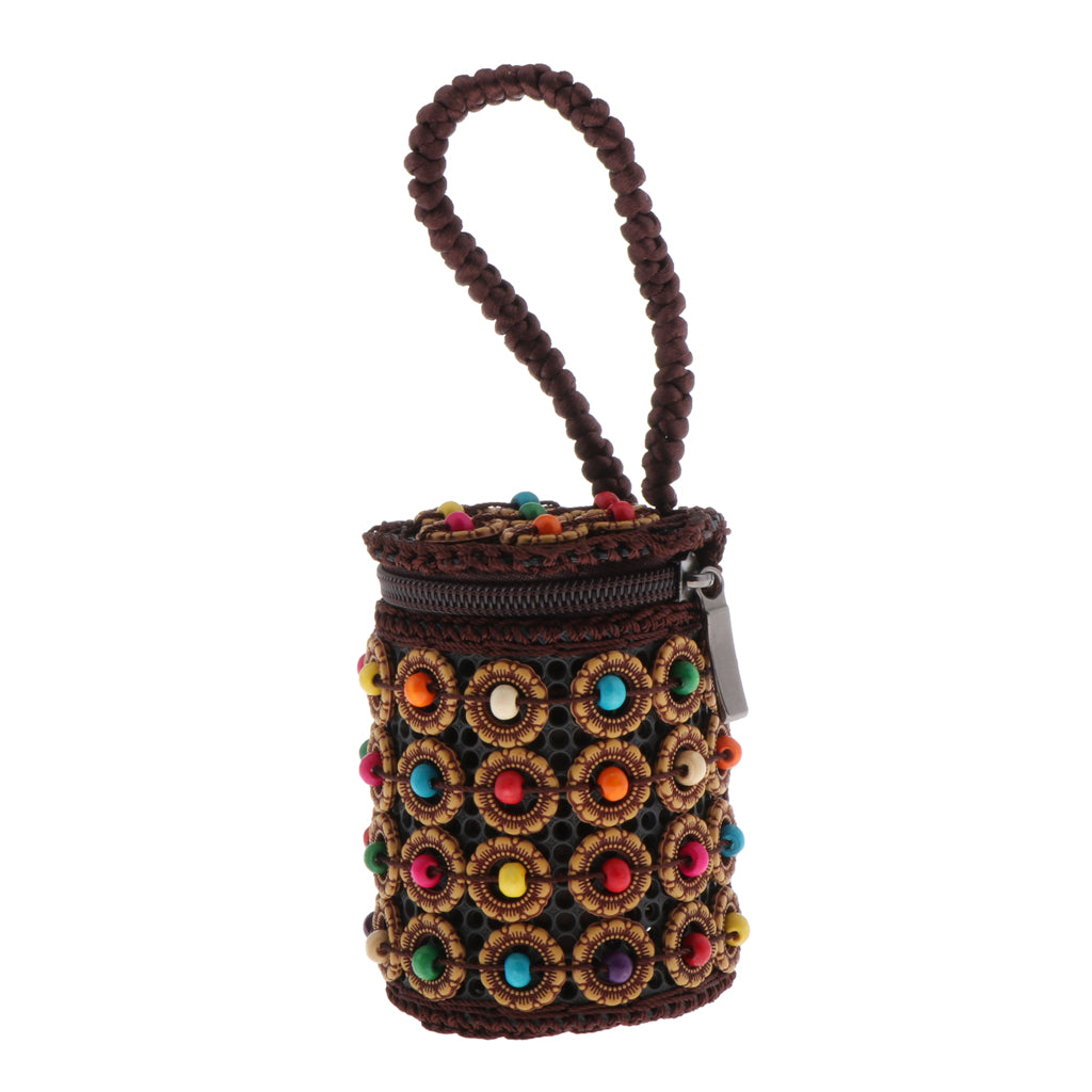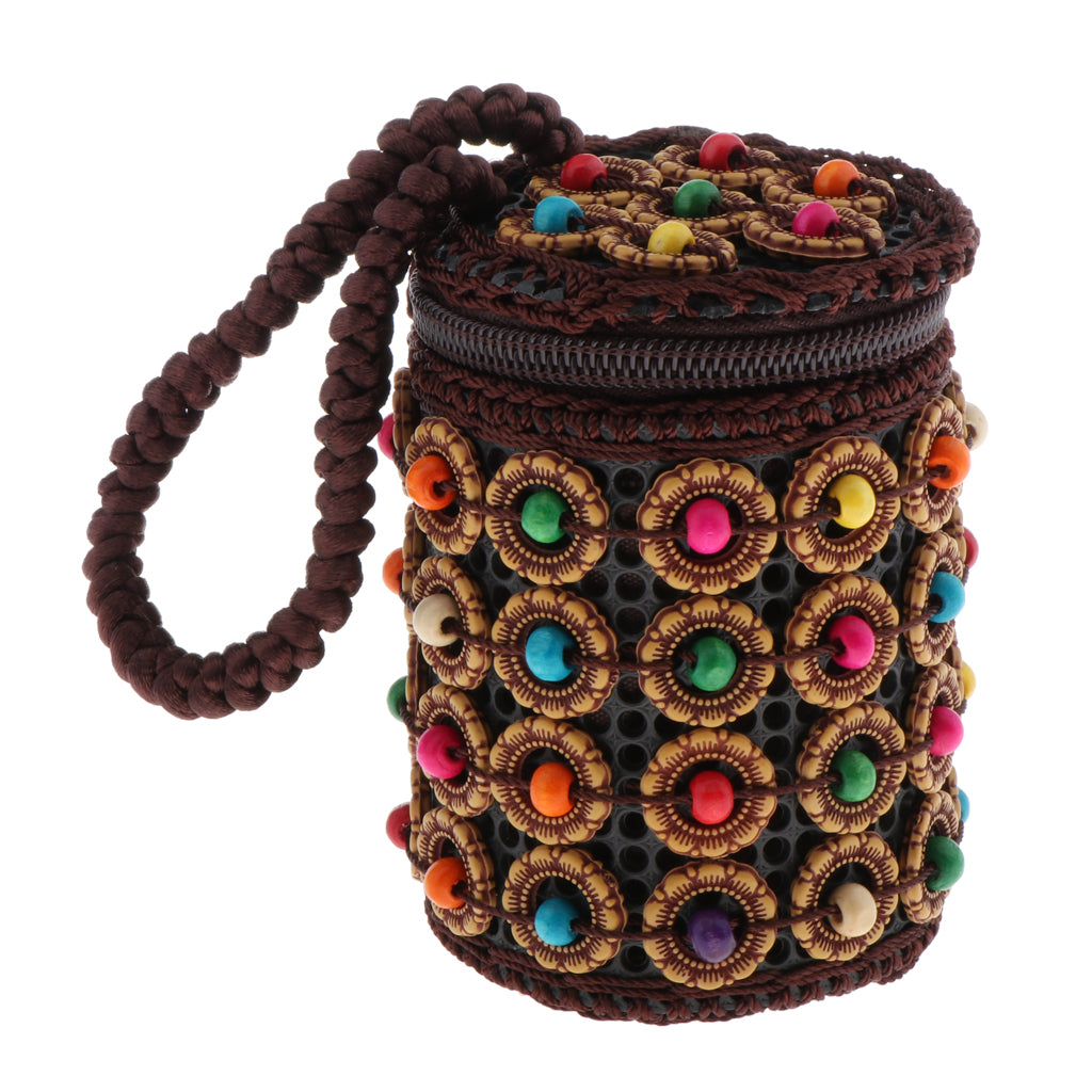 Vintage colorful bead woven mini cylinder bag,traditional ethnic style,