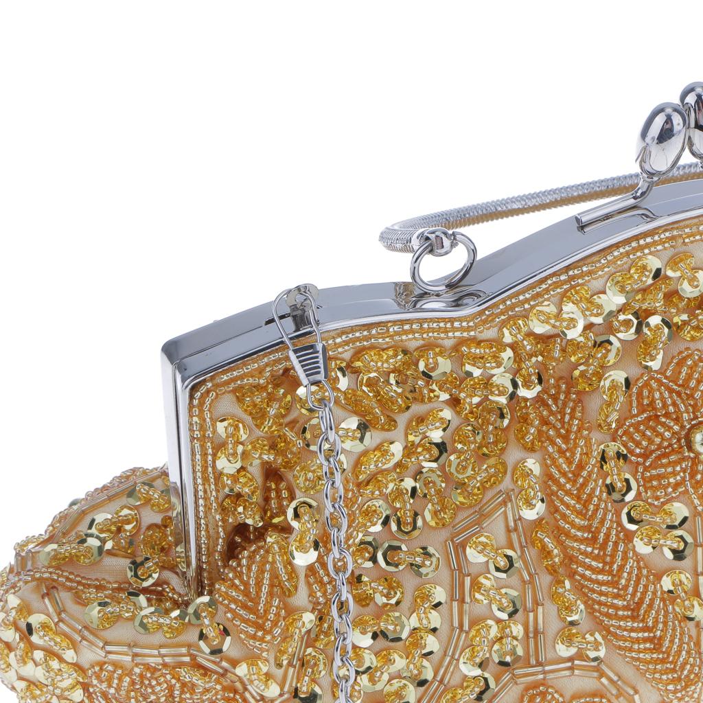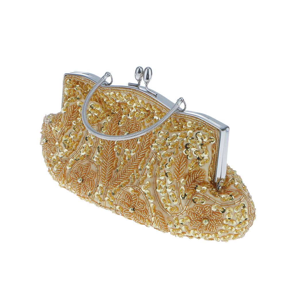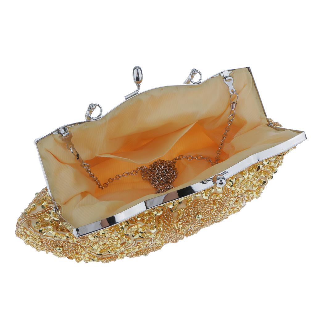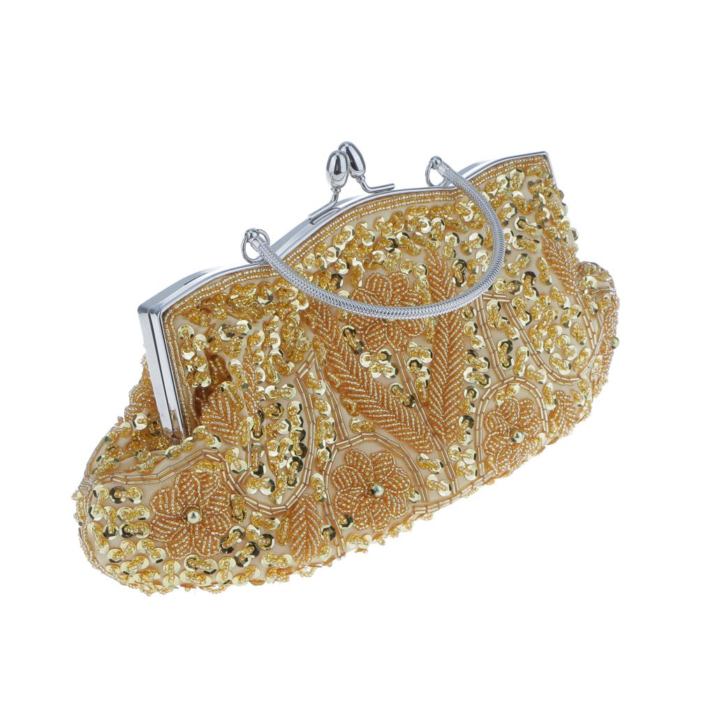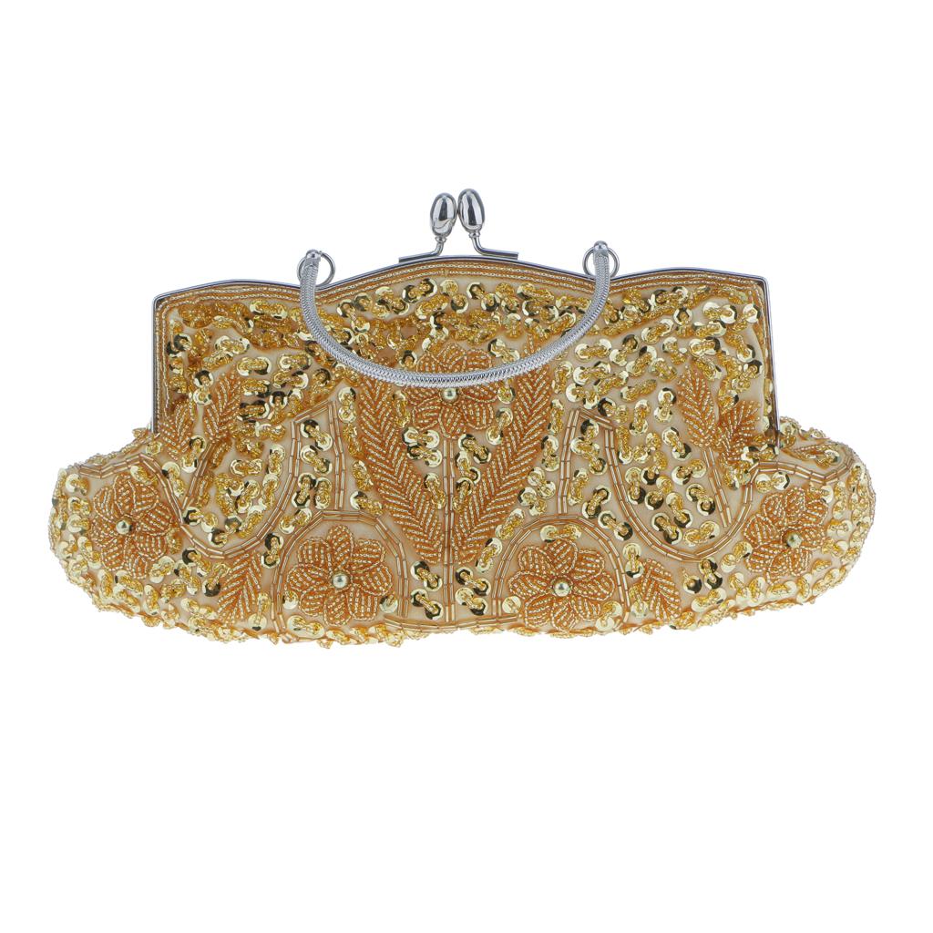 Women Party Wedding Purse Evening Bag Bridal Beaded Clutch Handbag Gold