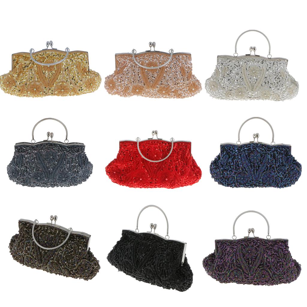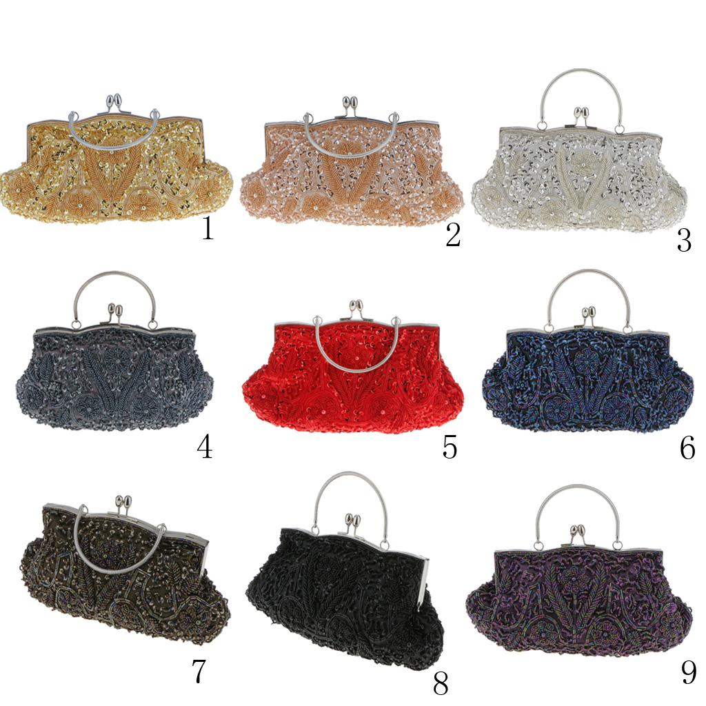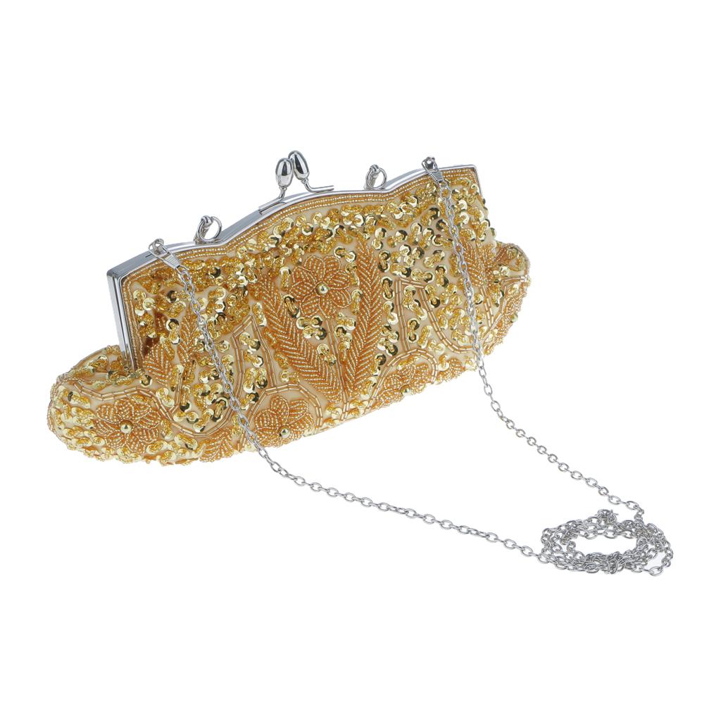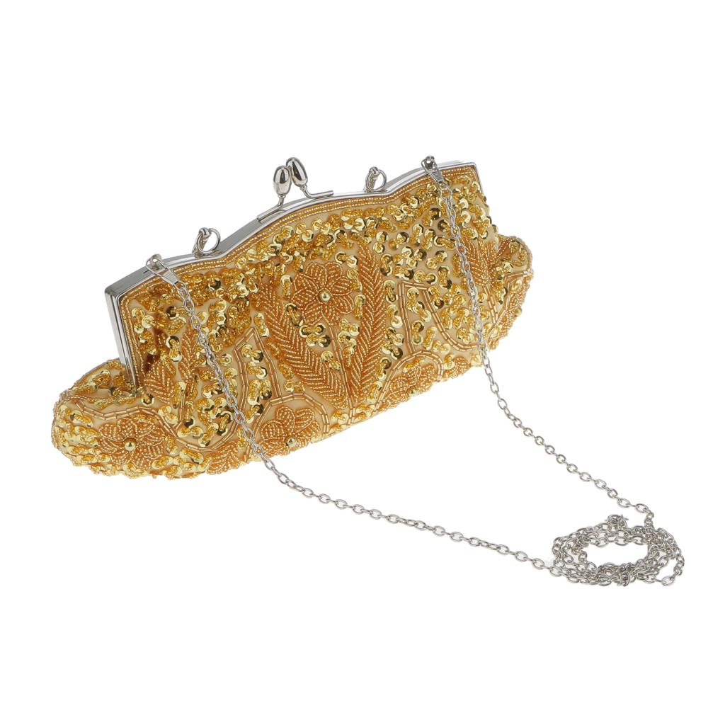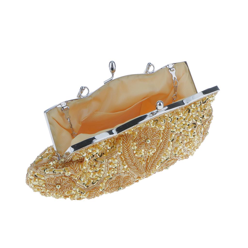 Women Party Wedding Purse Evening Bag Bridal Beaded Clutch Handbag Gold