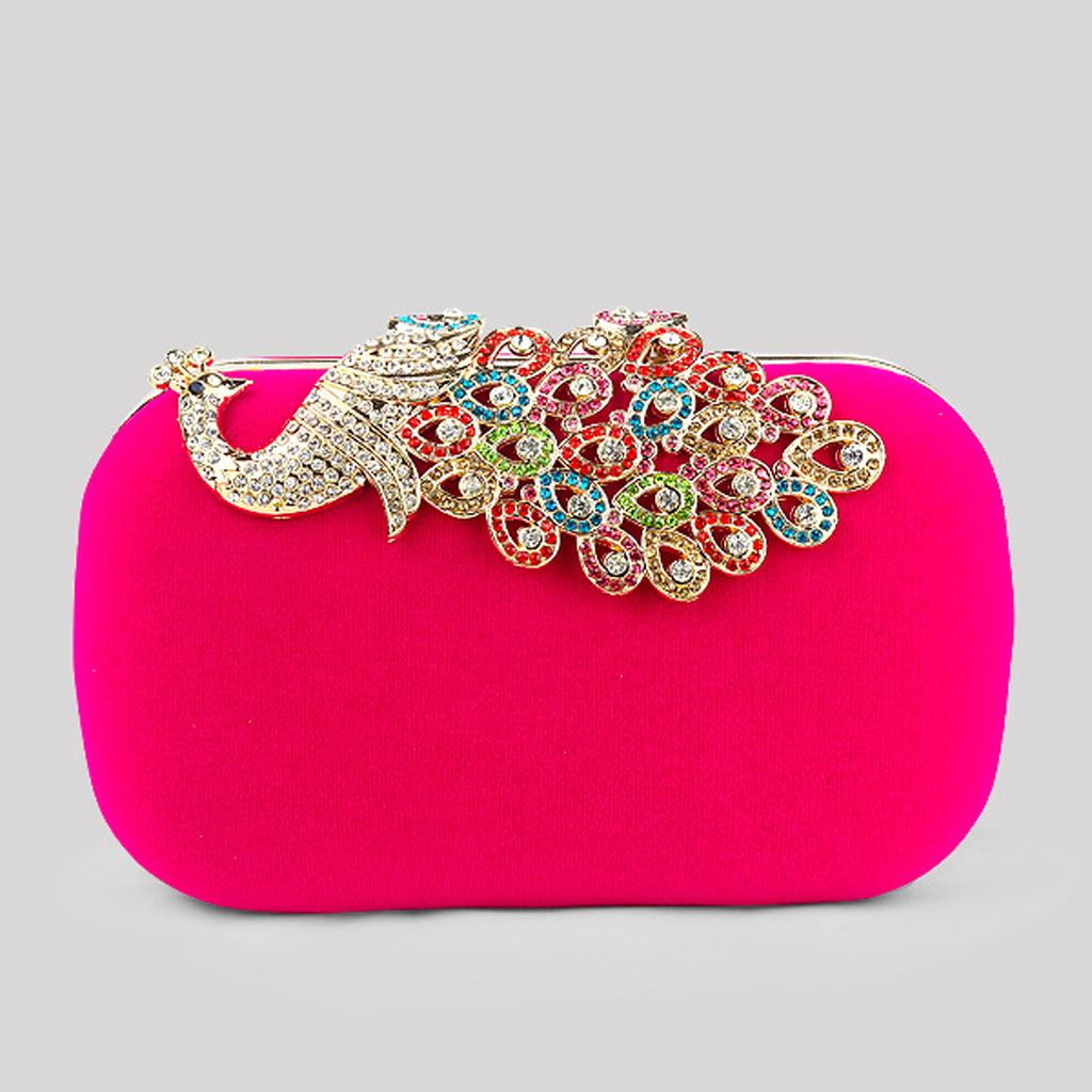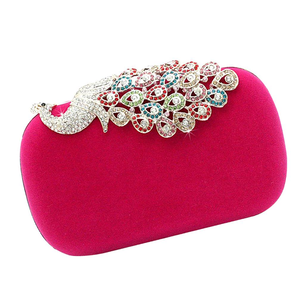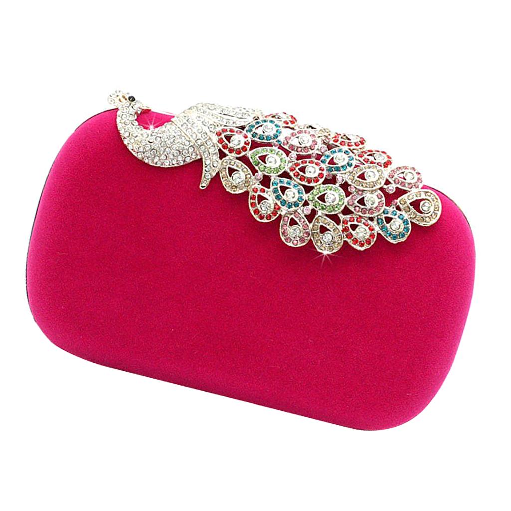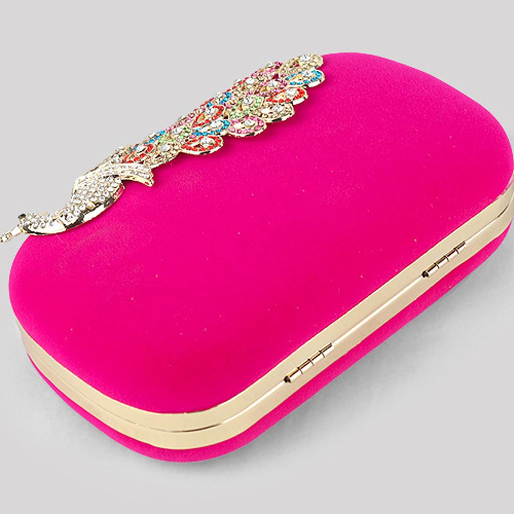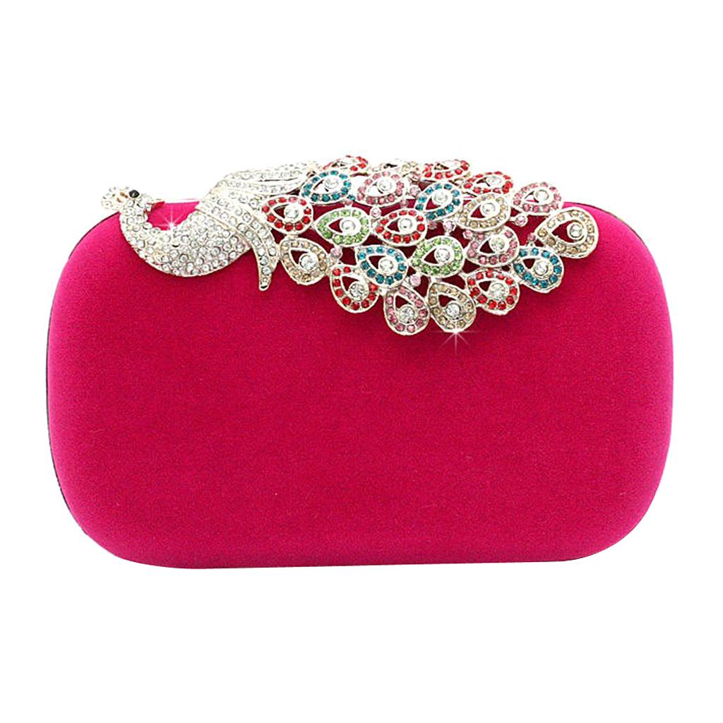 Womens Fashion Peacock Evening Party Cluth Purse Handbags Shoulder Rose Red