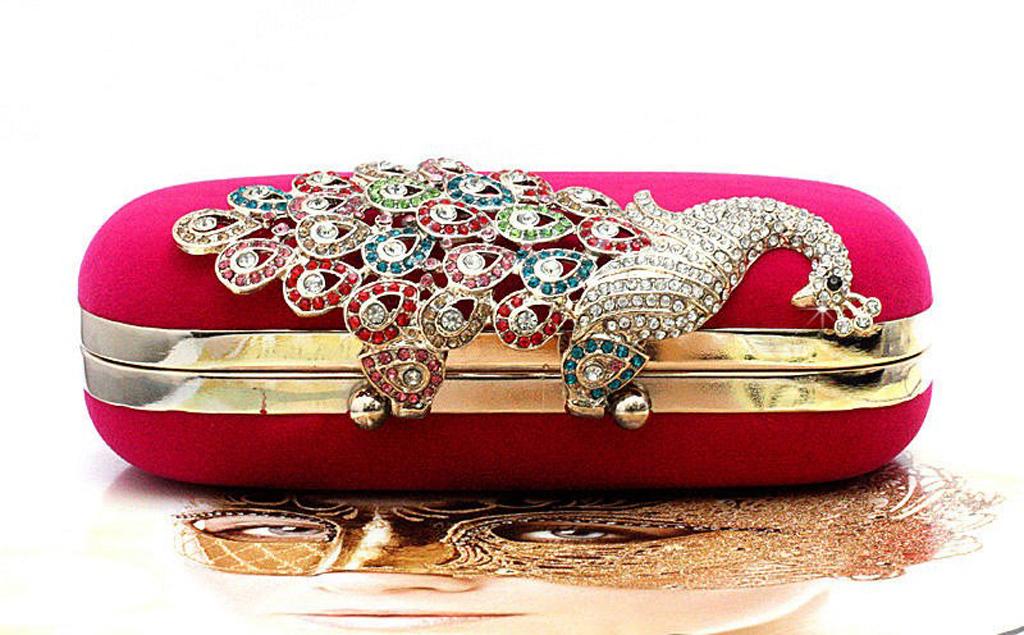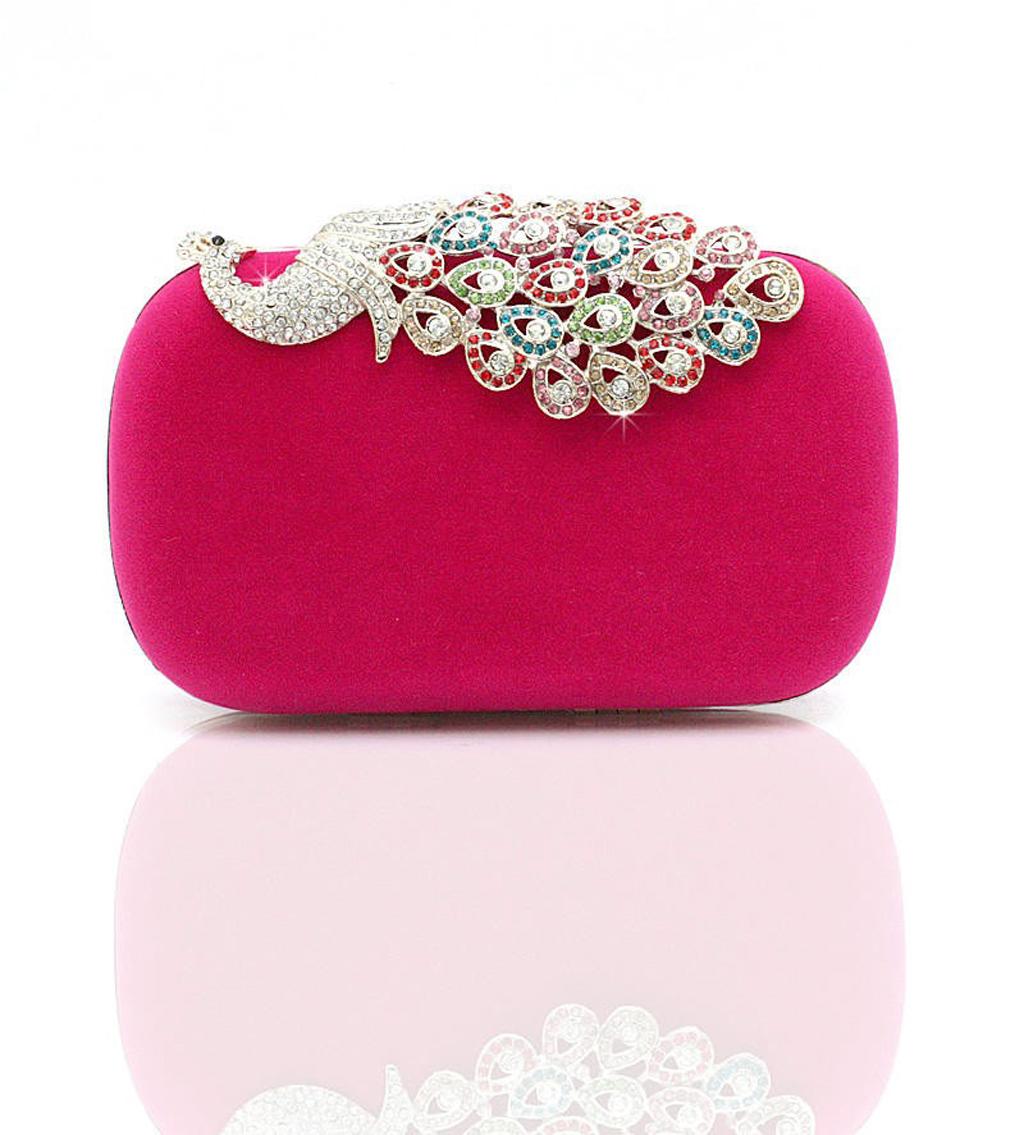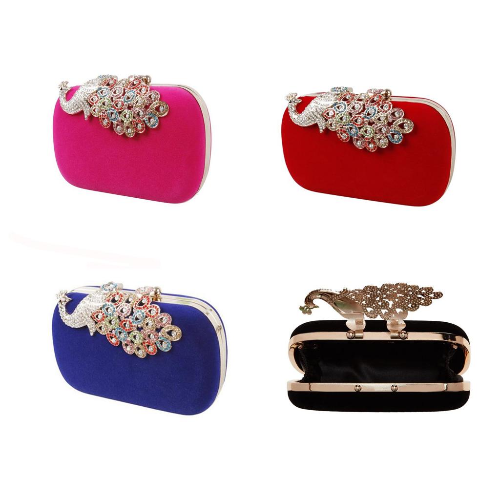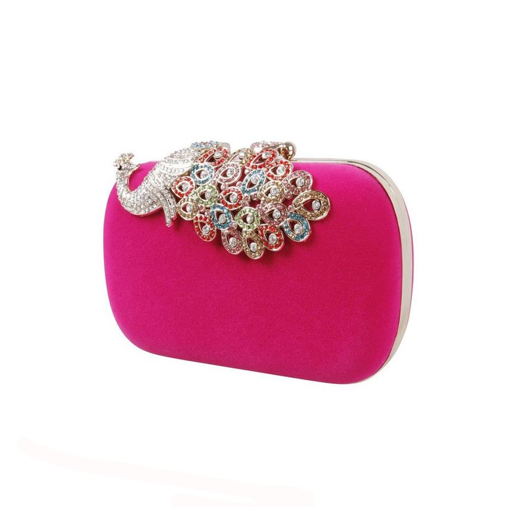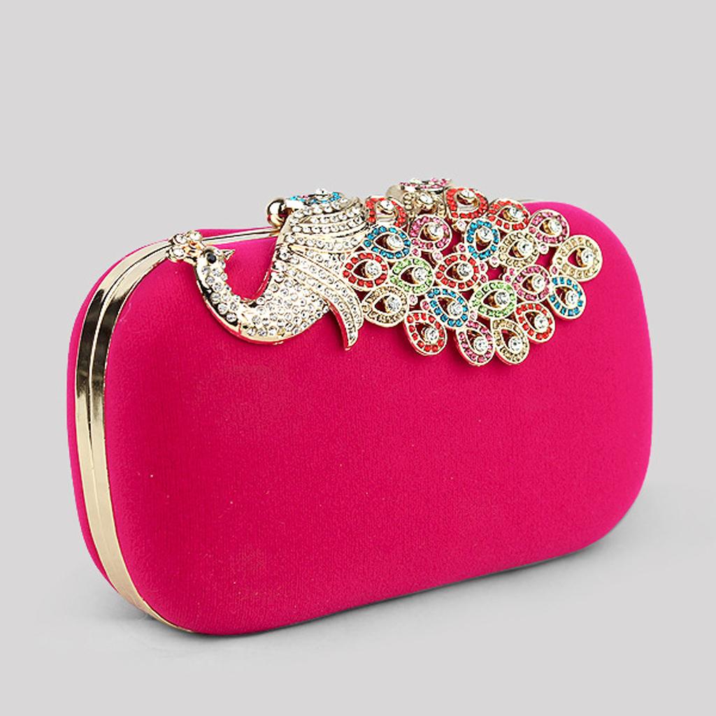 Womens Fashion Peacock Evening Party Cluth Purse Handbags Shoulder Rose Red