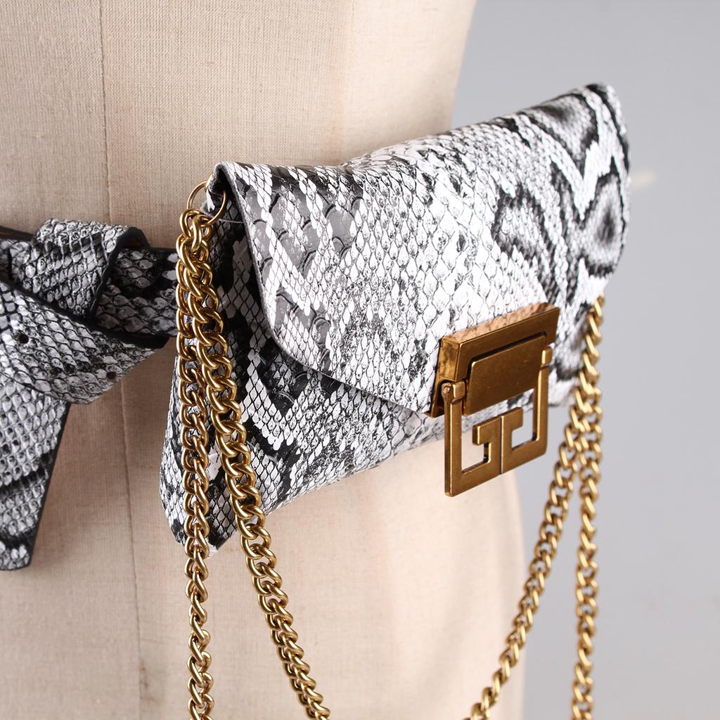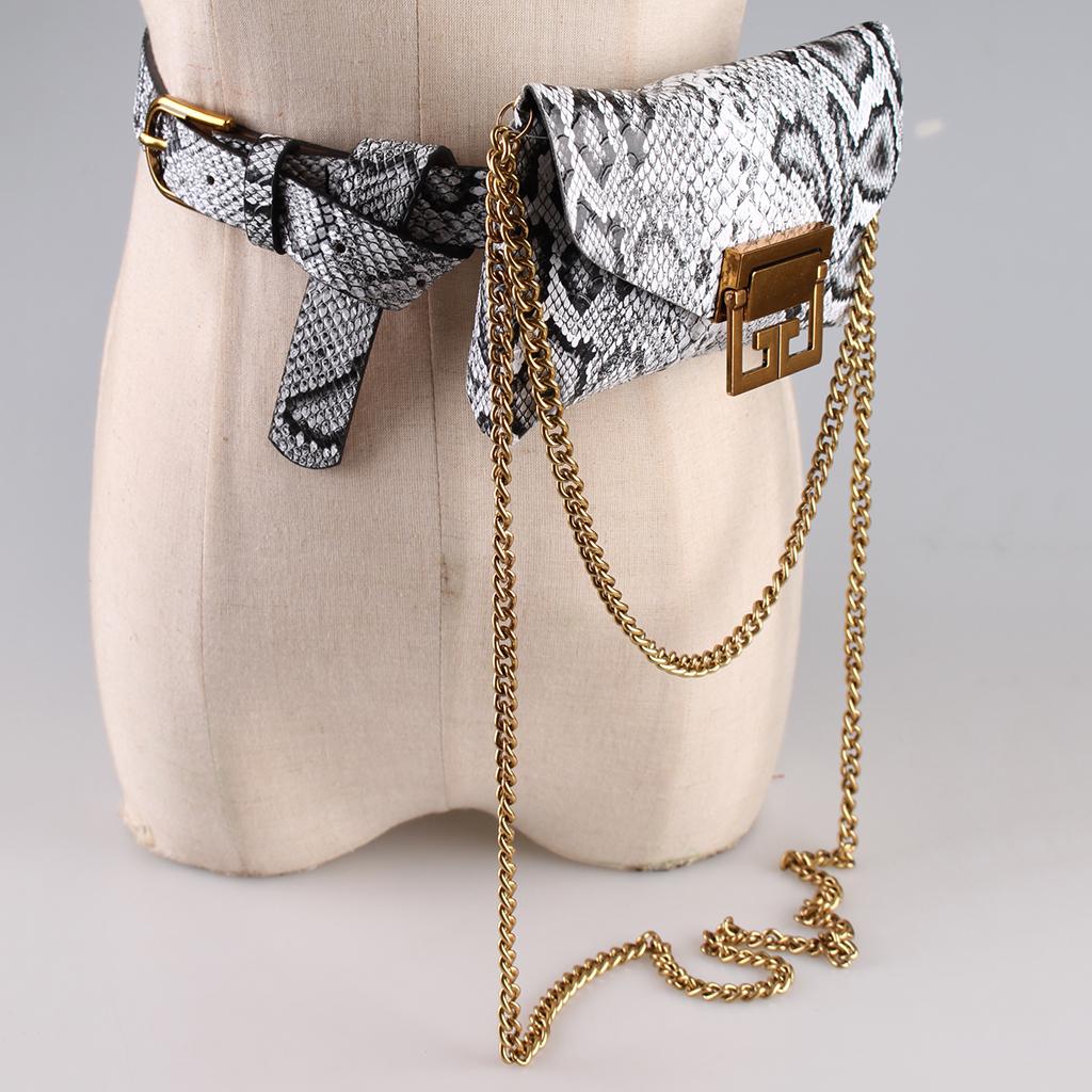 High quality leather belt with fanny bag, metal gold chain, and the wallets can be removed and independent use.