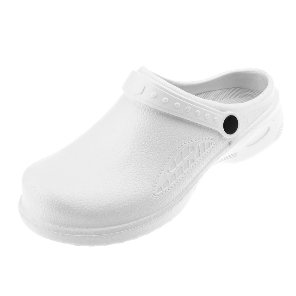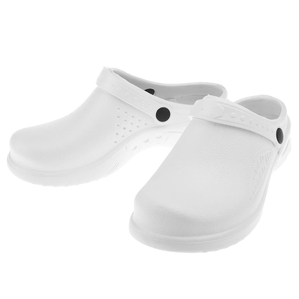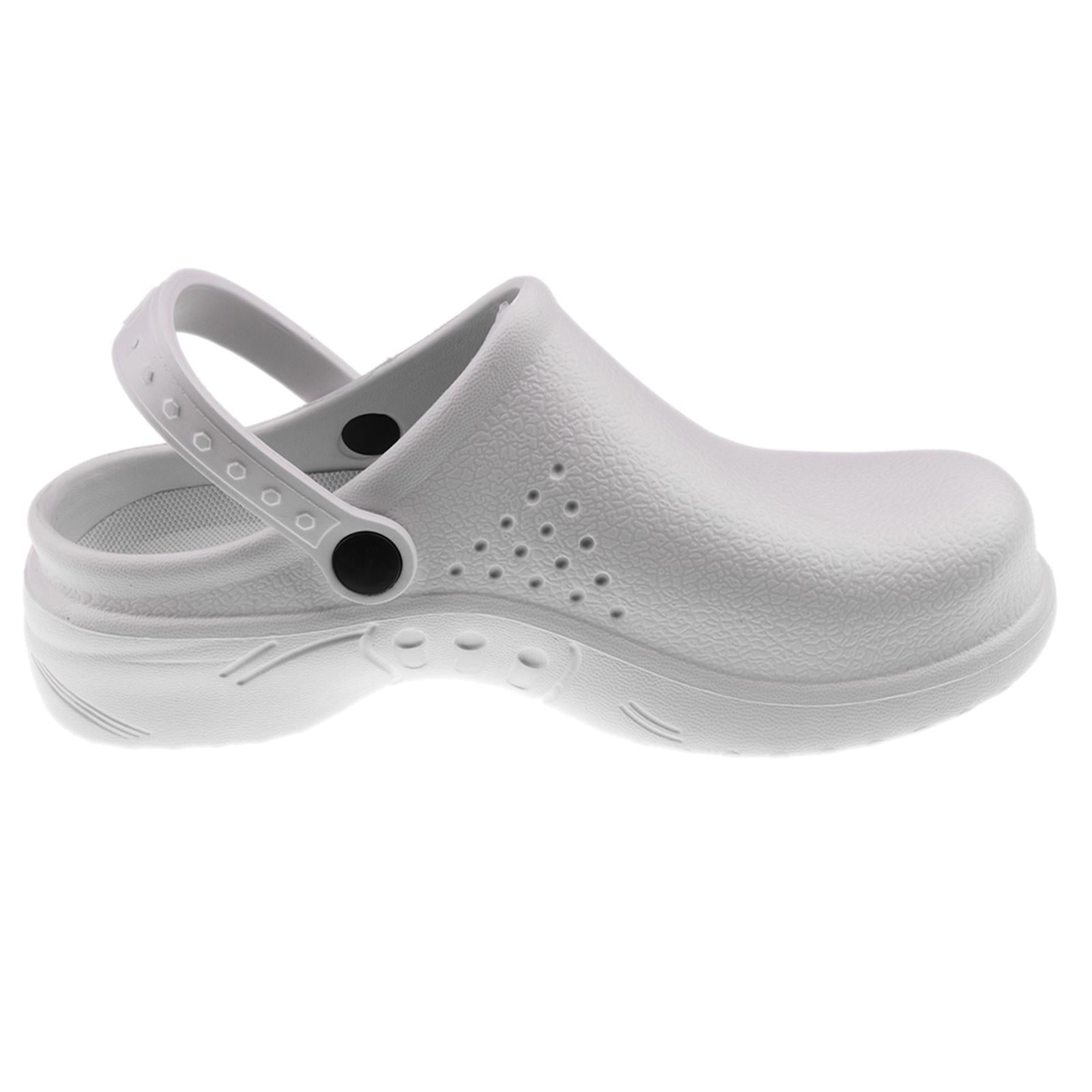 Men Women Cook Medical Nursing Shoes Ultralite Clogs with Strap 39 White