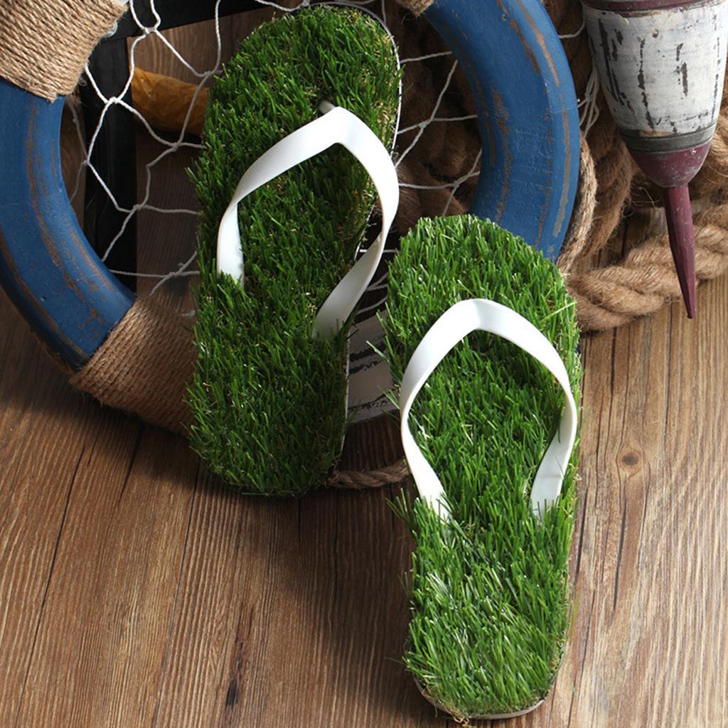 Summer Cool Slippers Artificial Lawn Flats Flip Flops Sandals Shoes Size 43