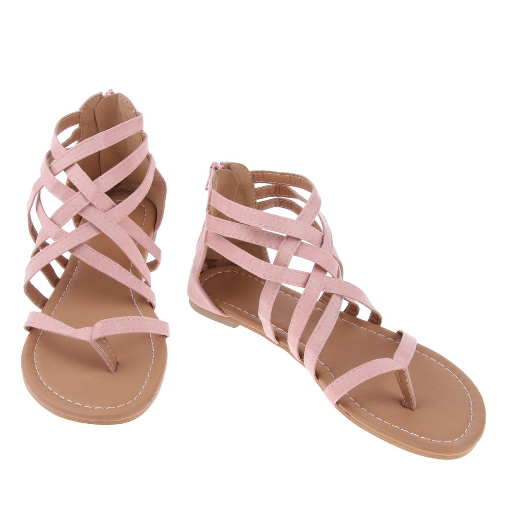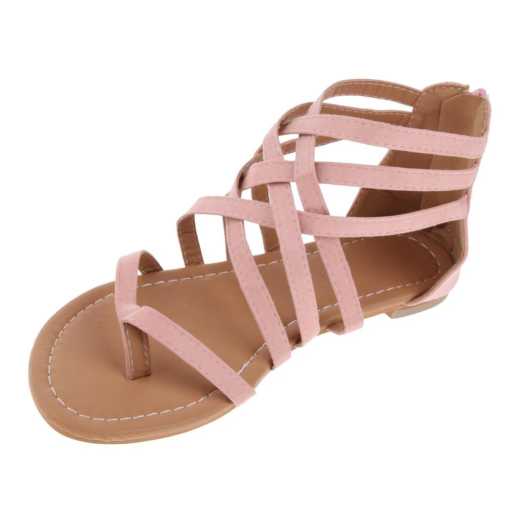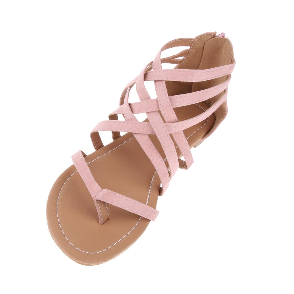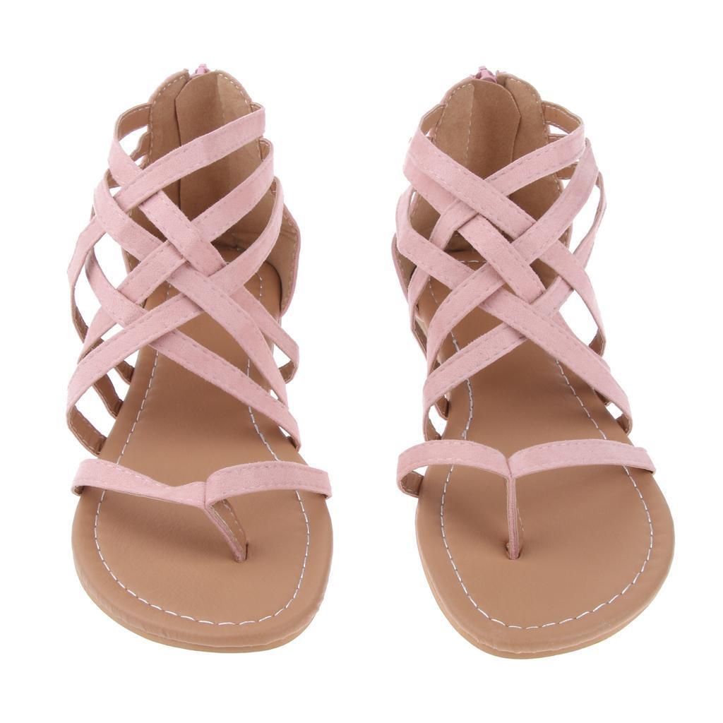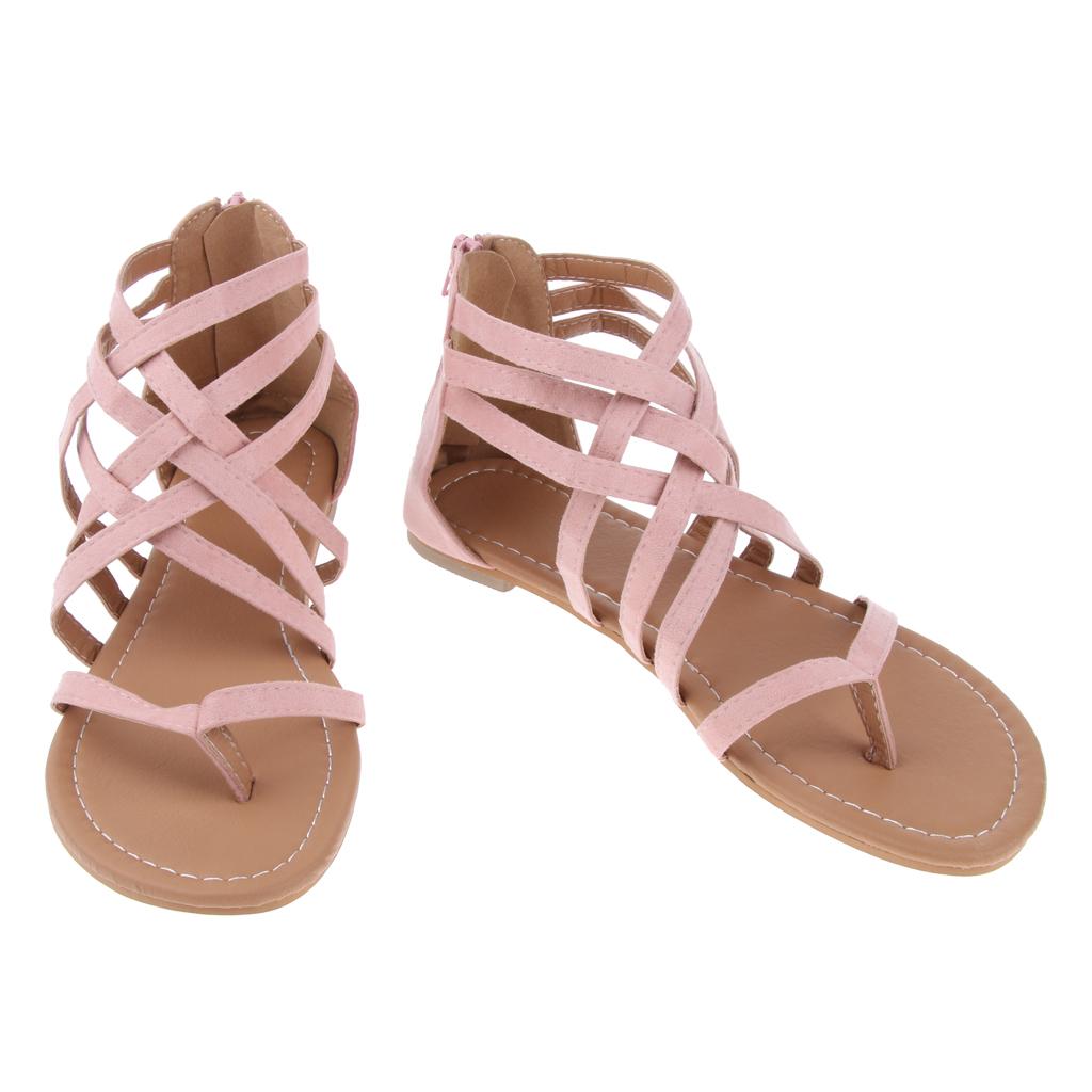 Feature: Flat sole, ankle buckle,T-strap & zipper back