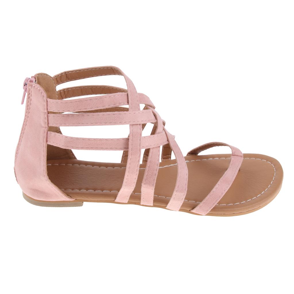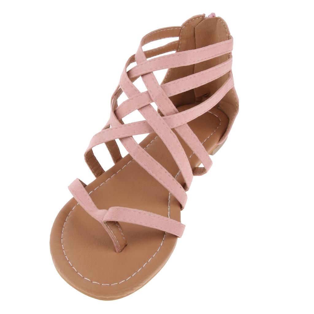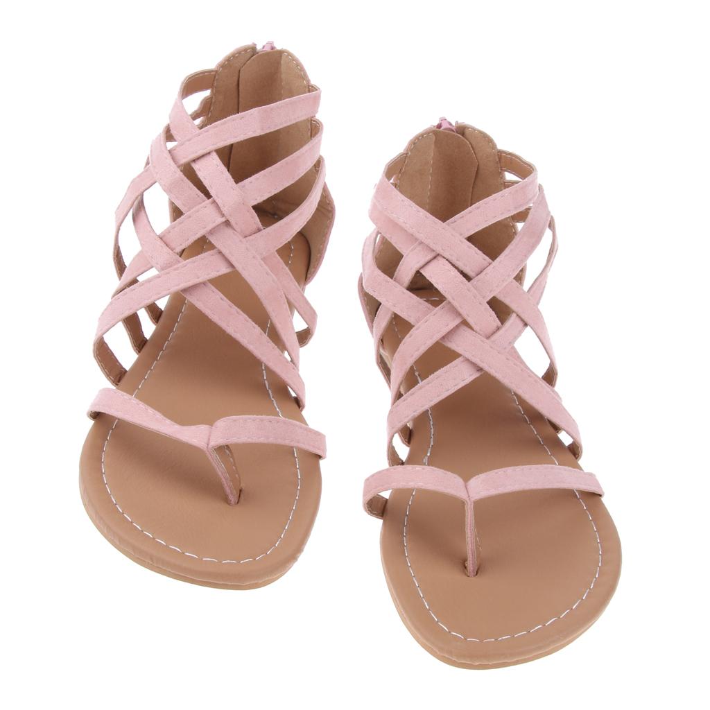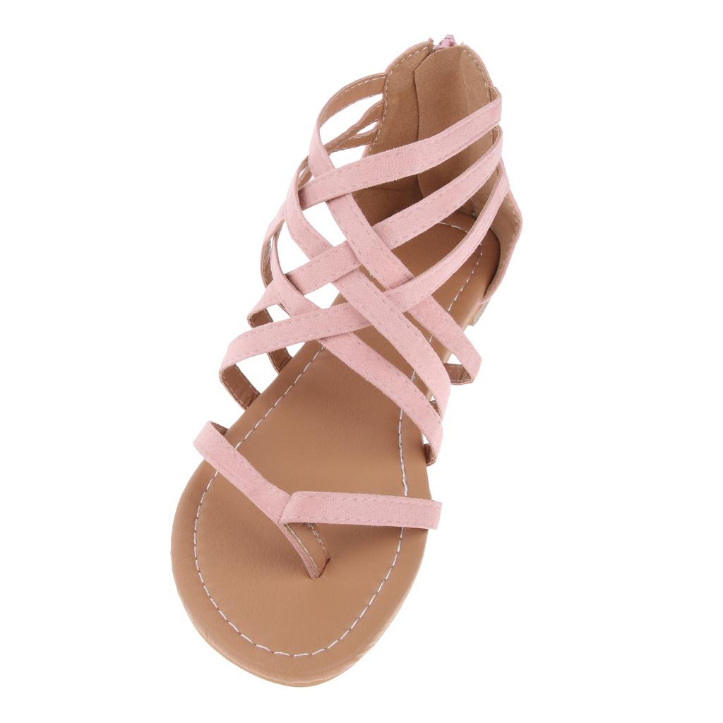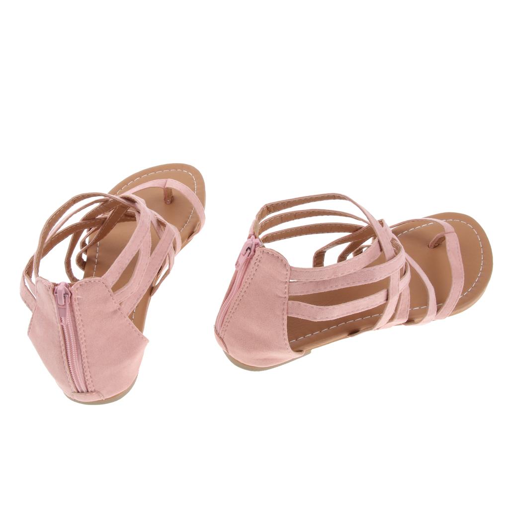 Feature: Flat sole, ankle buckle,T-strap & zipper back
