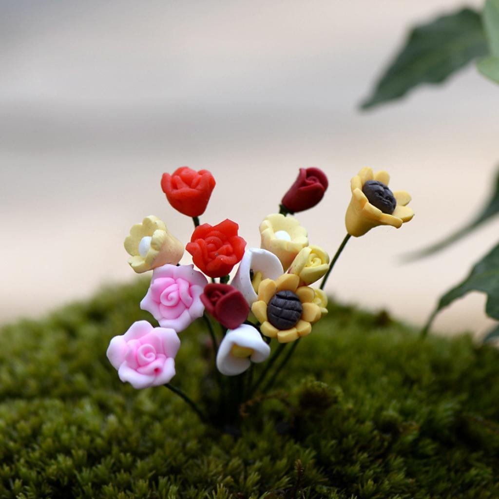 10Pcs Lifelike Daisy Flower Miniature Micro Landscape Bonsai Dollhouse Decor