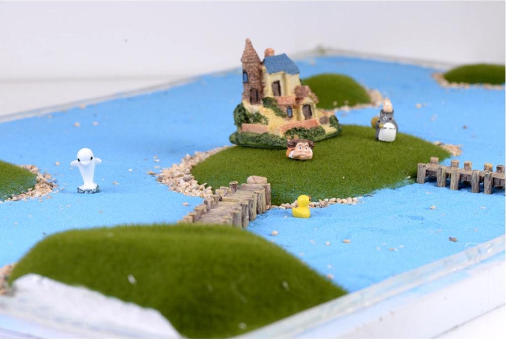 10pcs Mini Water Corridor Garden Micro Dollhouse Bonsai Landscape Decor Gray