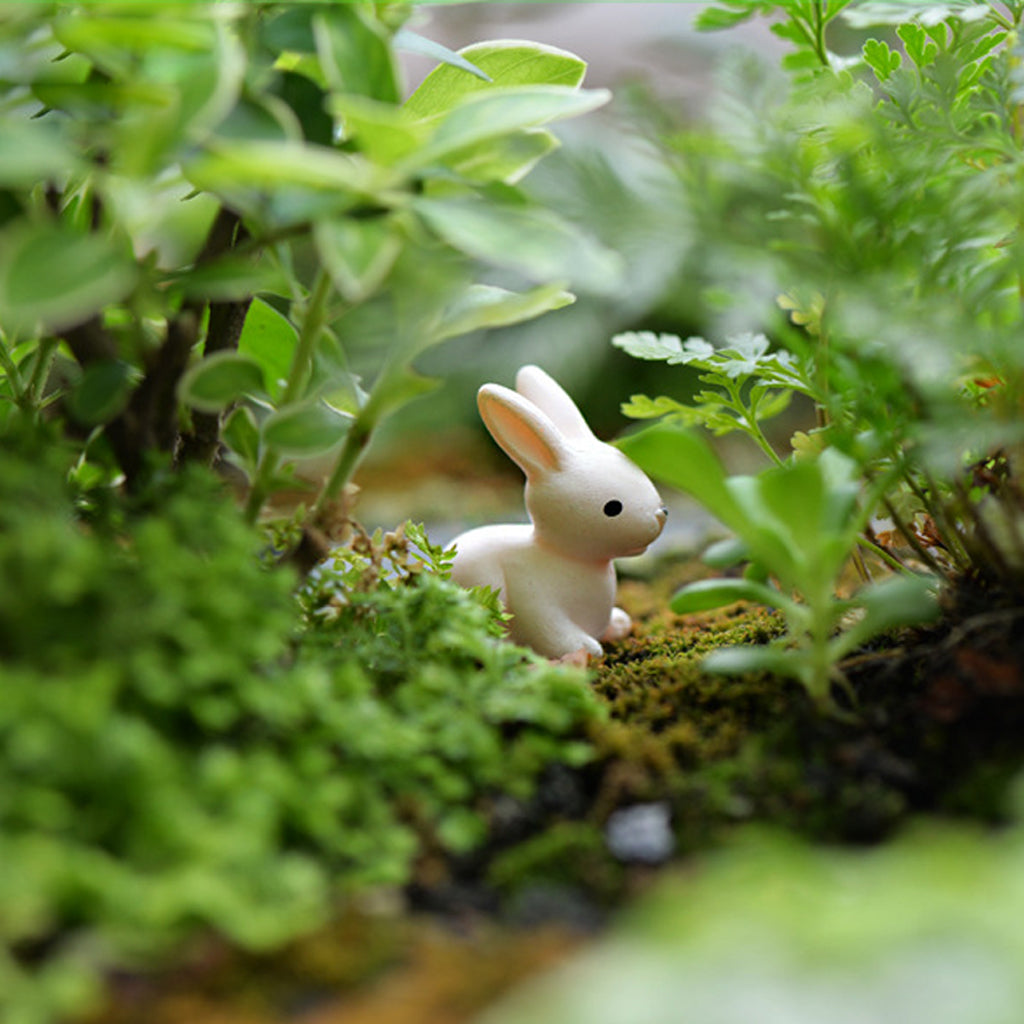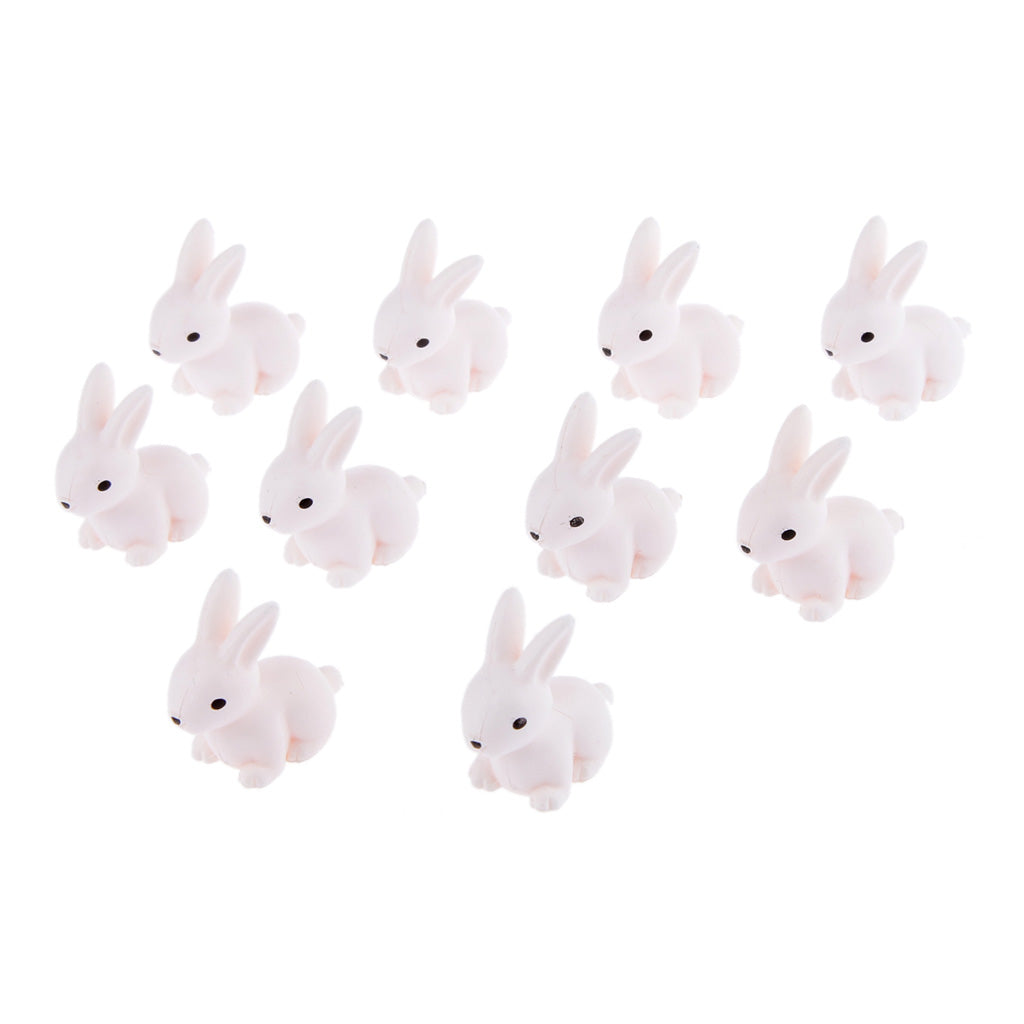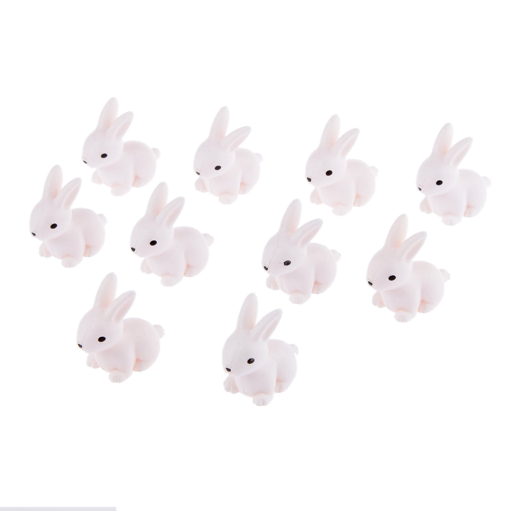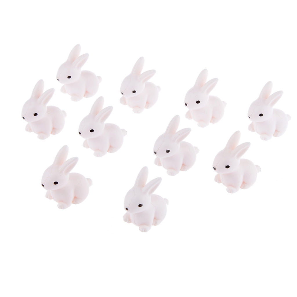 10pcs Mini White Resin Rabbit Dollhouse Bonsai Fairy Garden Landscape Decors