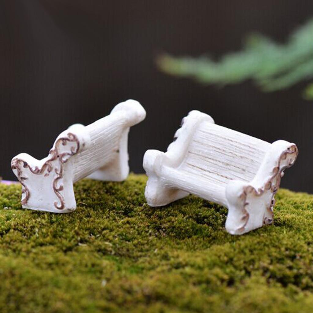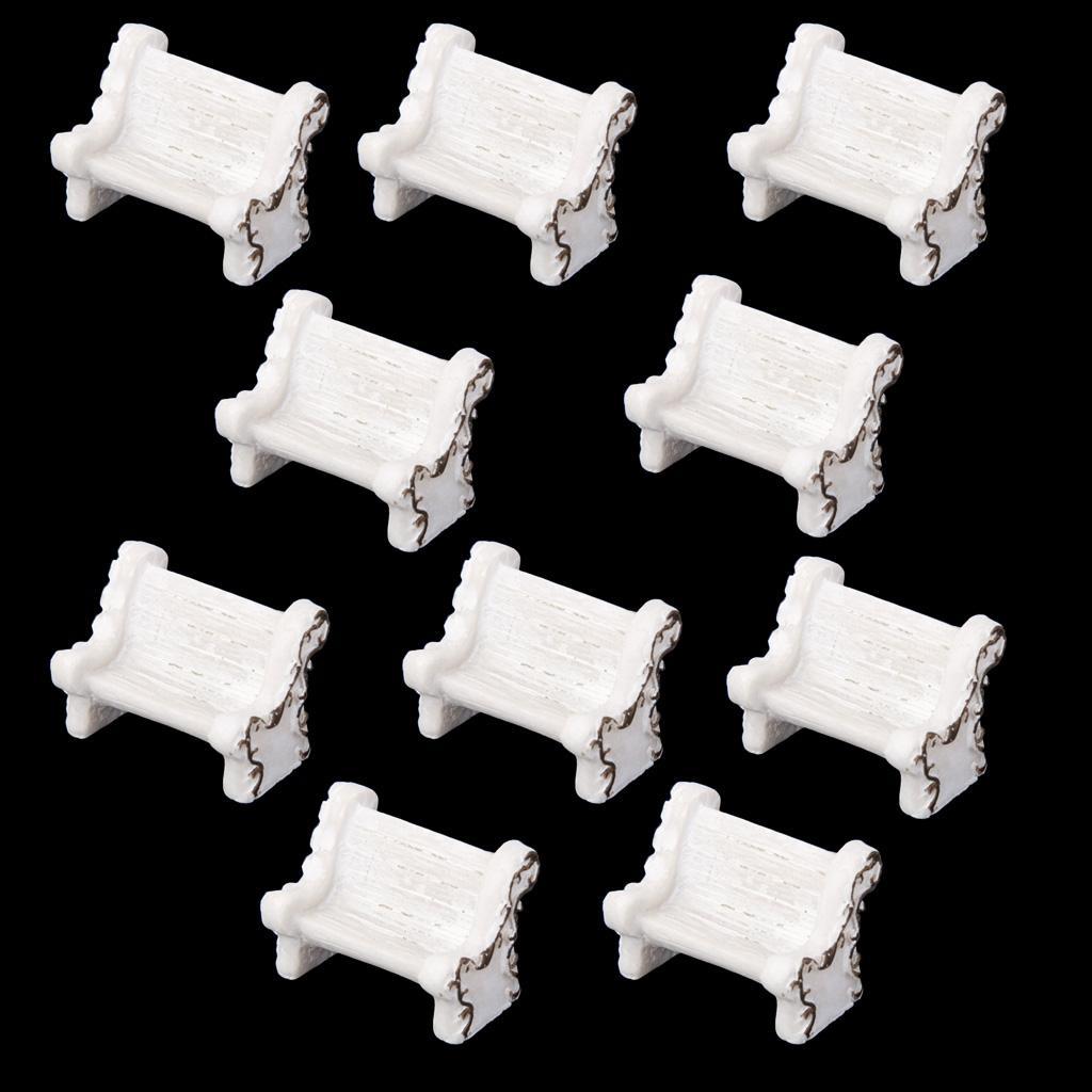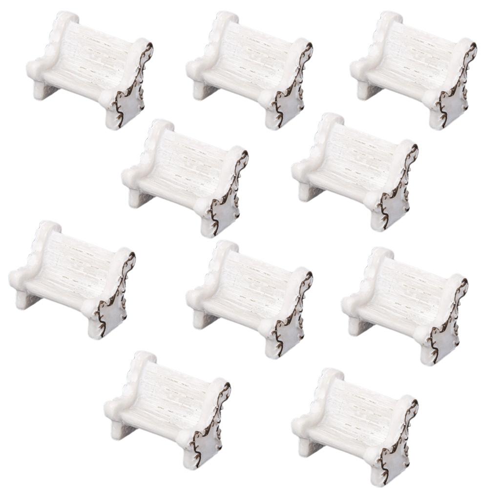 10pcs Miniature Dollhouse Fairy Garden Landscape White Floral Bench Decor