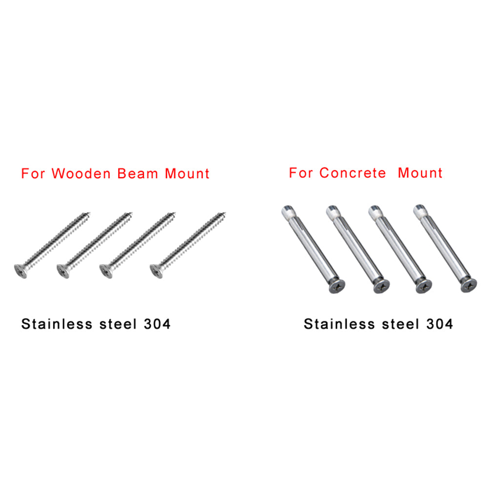 Including 4 shield anchors M6*60 for concrete ceiling, 4 screws M5*60 for wooden beam