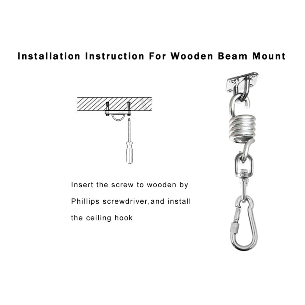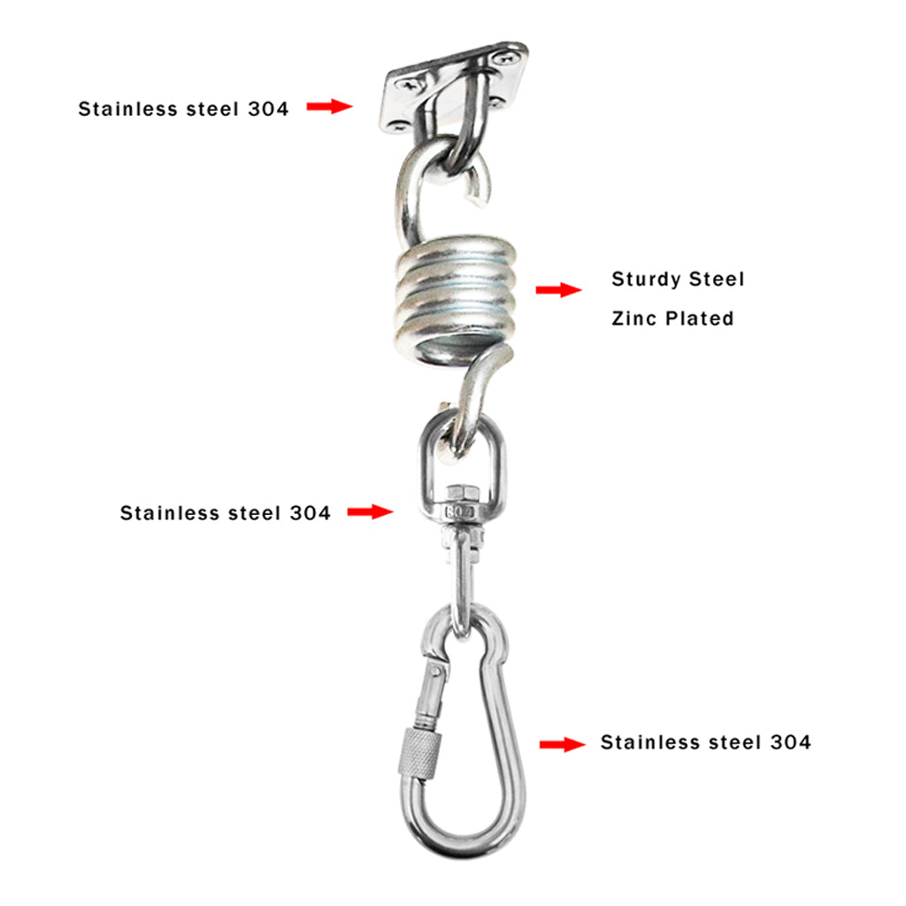 Heavy duty hook mount plate, spring, snap hook, and swivel hook for mounting hammock chairs and other hanging accessories like punching bags, hanging plants and so on