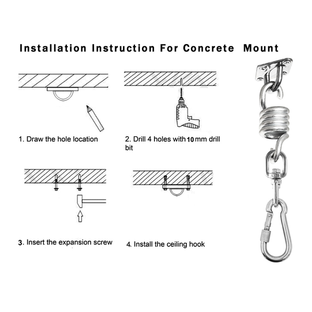 Great accessories for hammock chairs, porch swings, swinging chairs, punching bags, or hanging any other heavy object from an overhead mount